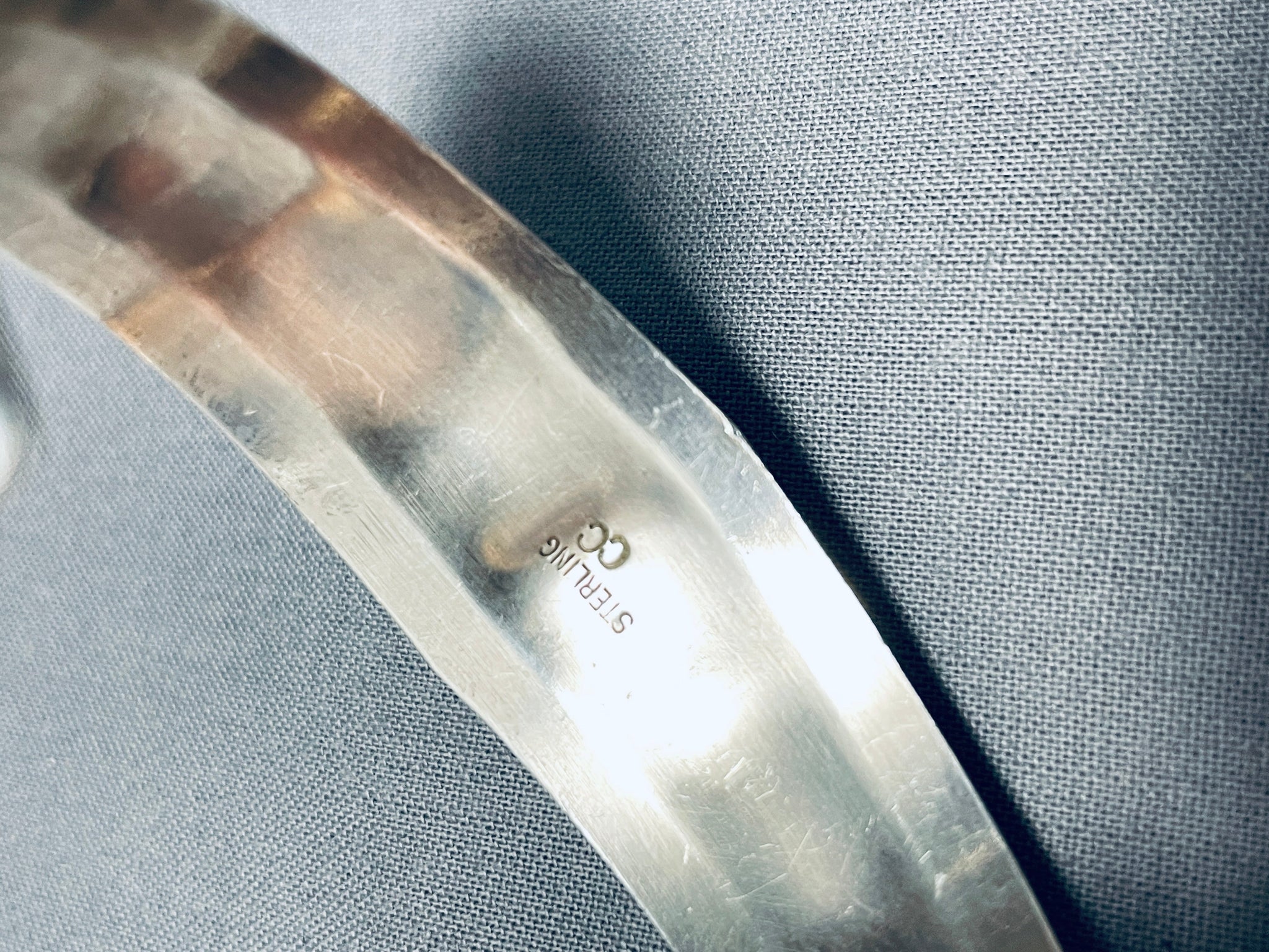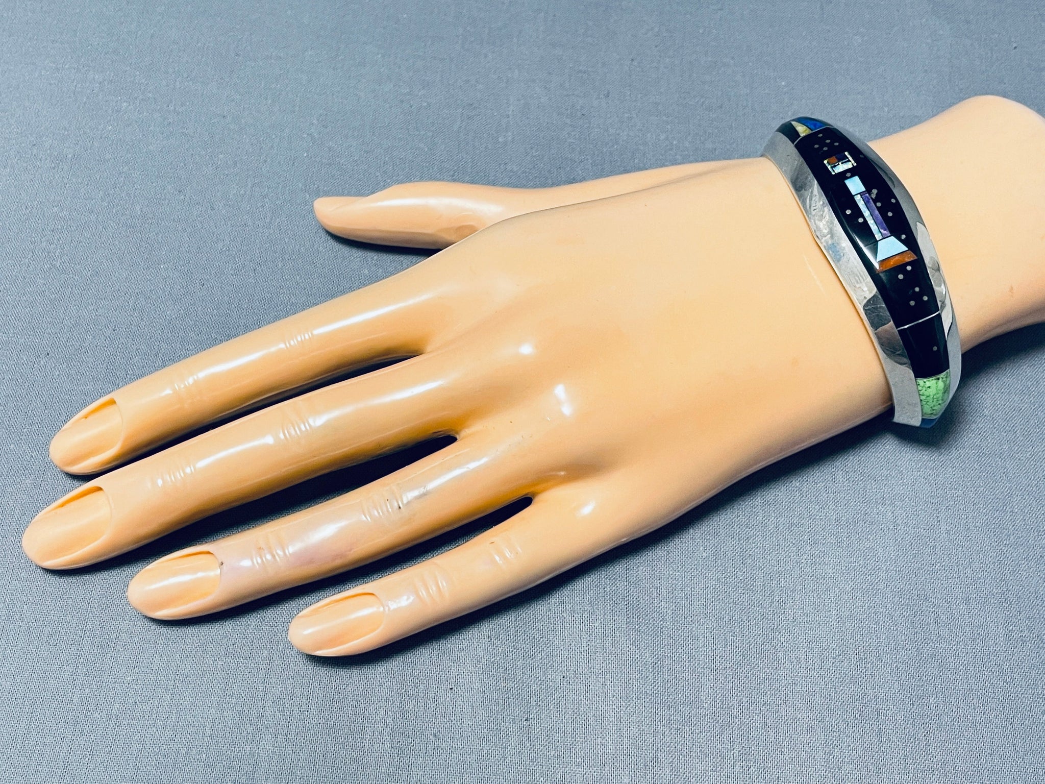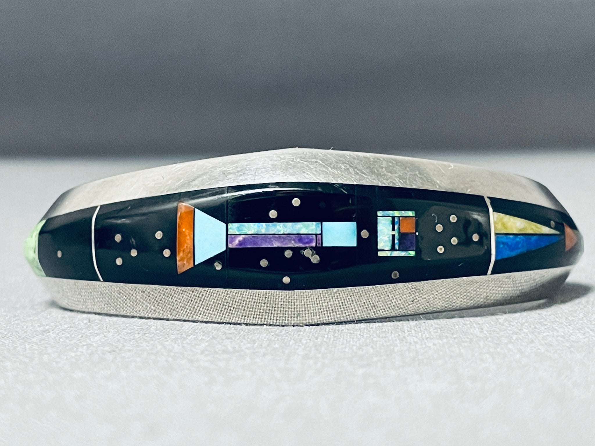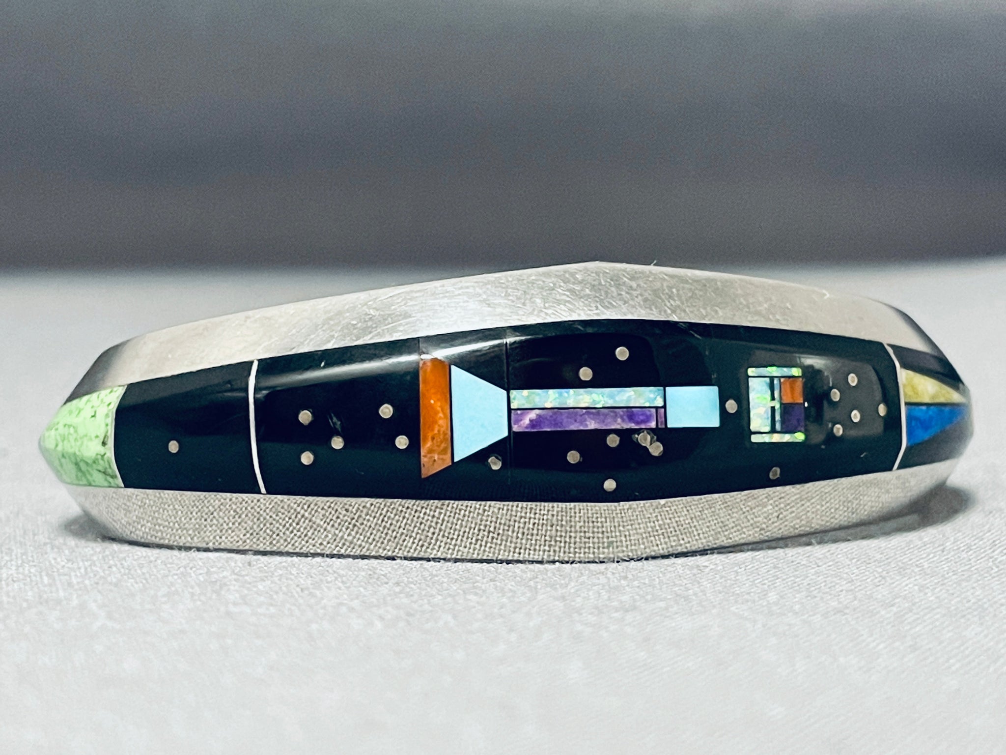 Intricate Space Kachina Turquoise Native American Navajo Sterling Silver Bracelet