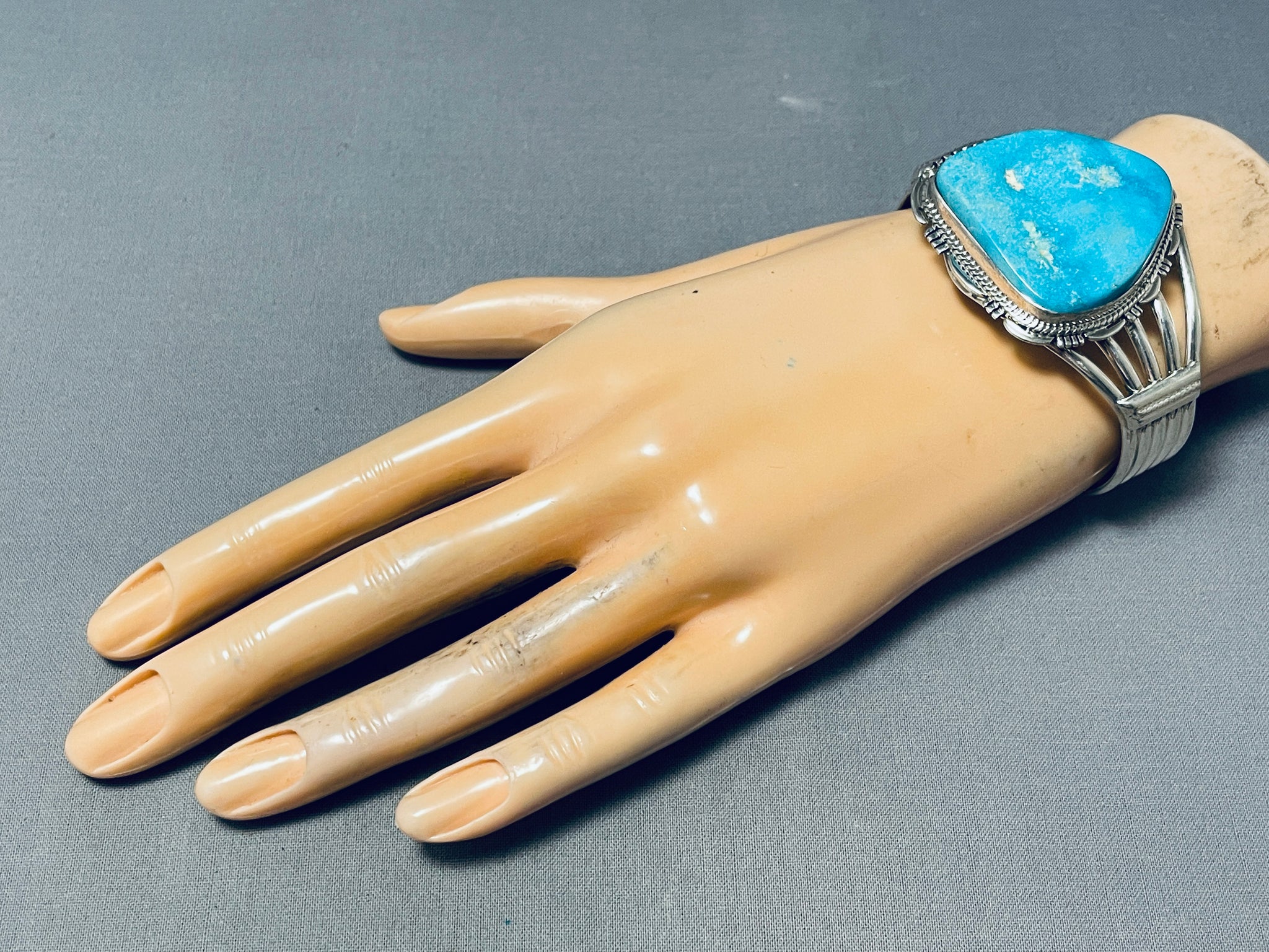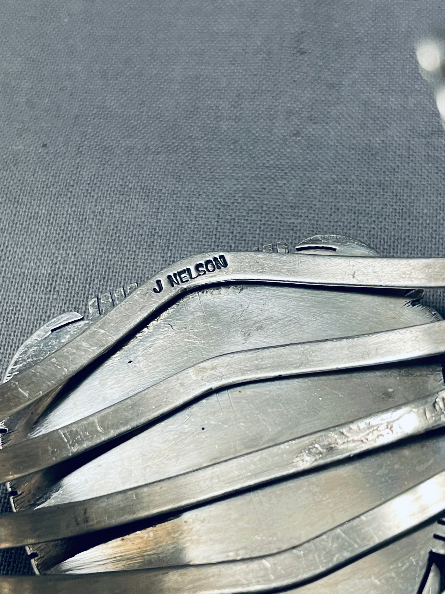 Jerr Nelson Native American Navajo Turquoise Sterling Silver Bracelet Signed Jerry Nelson