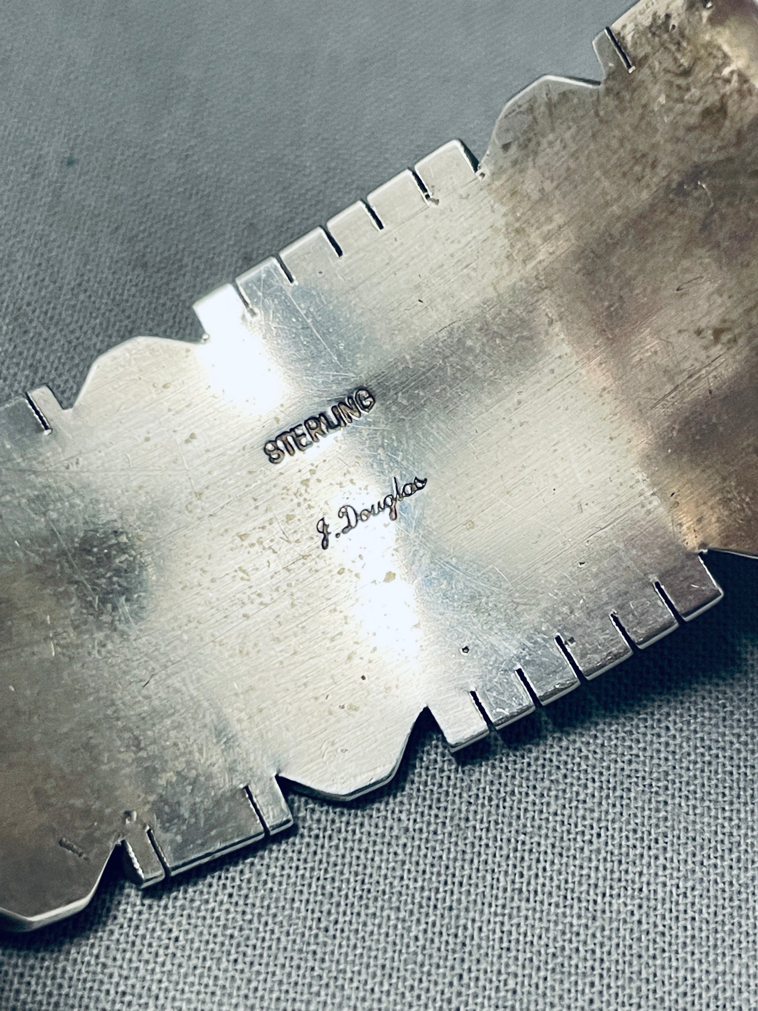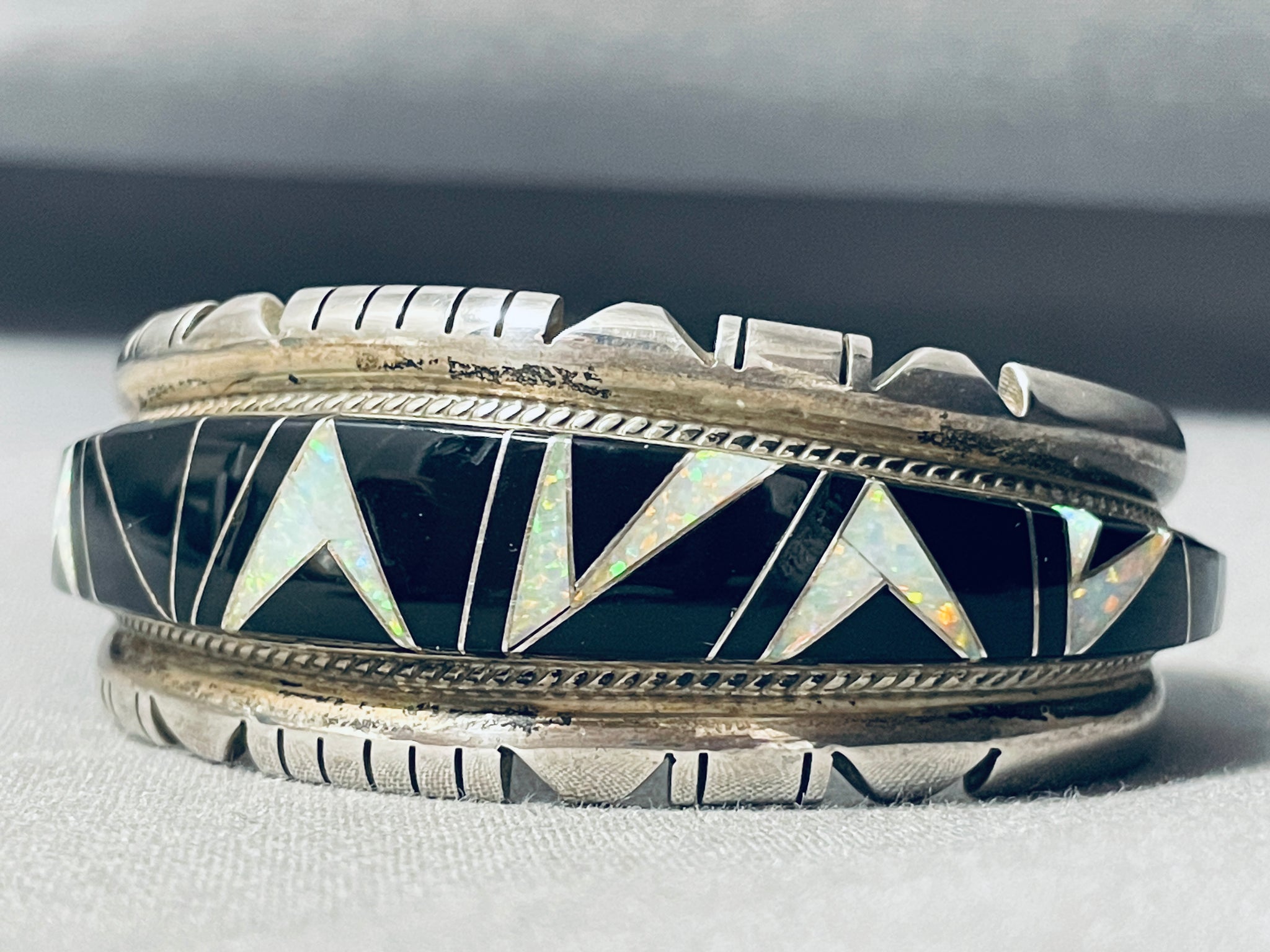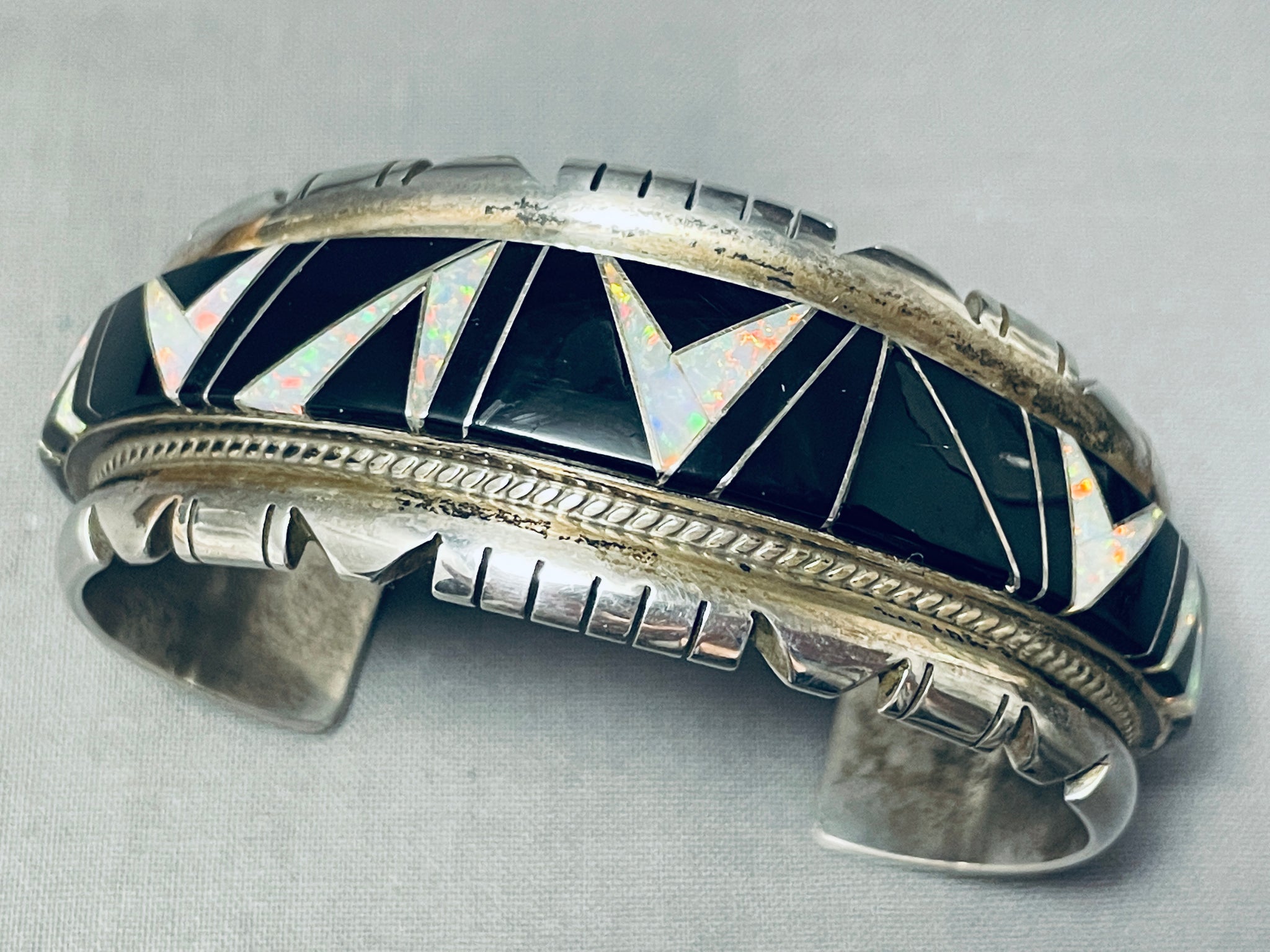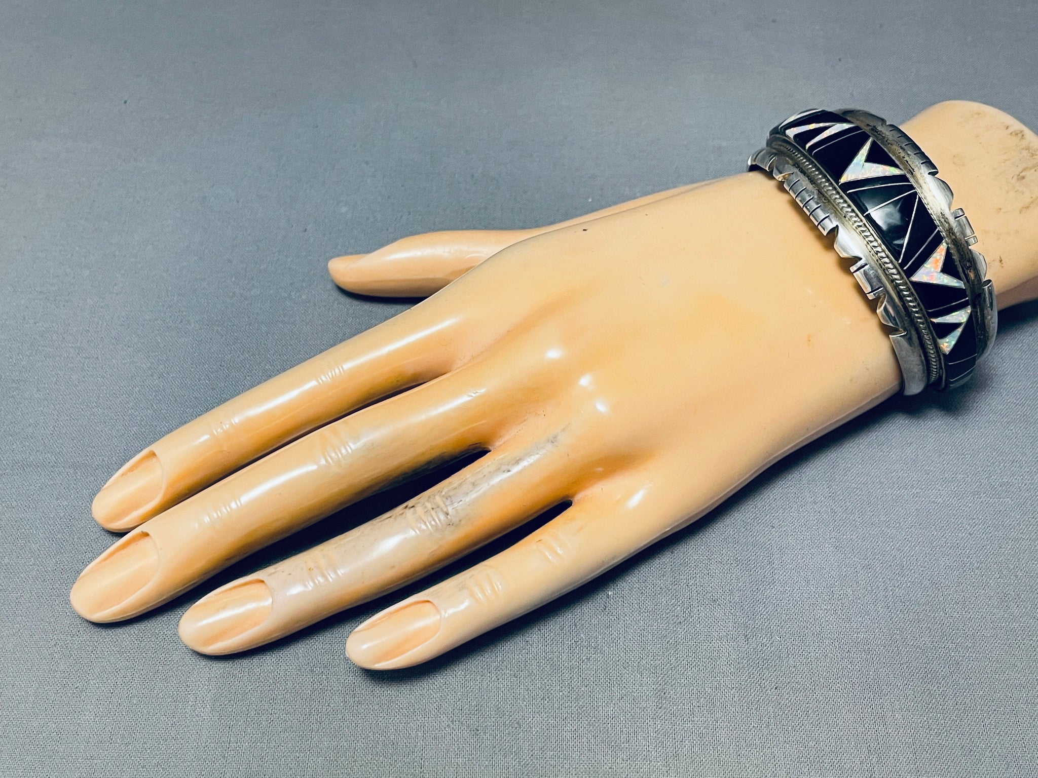 Joan Douglas 6-1/2 Inch Wrist Jet Opal Sterling Silver Bracelet