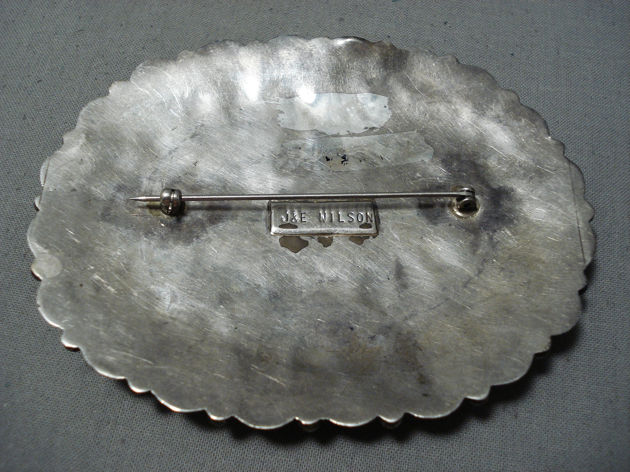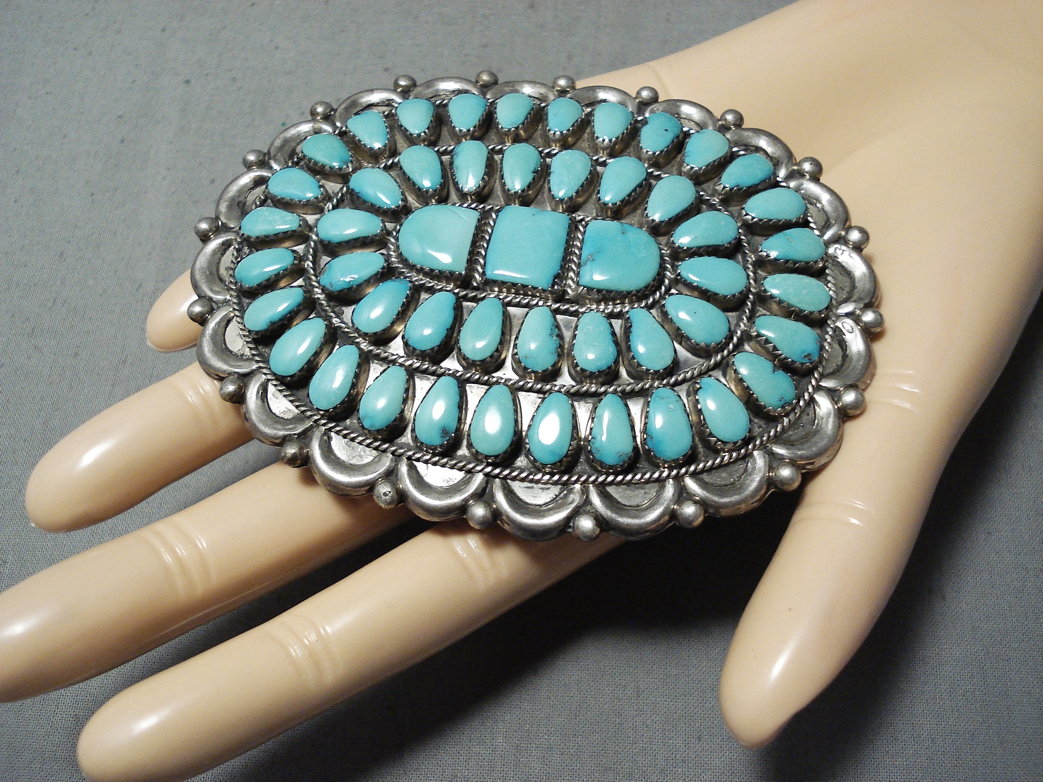 Joey Wilson Vintage Native American Navajo Turquoise Cluster Sterling Silver Pin Huge
