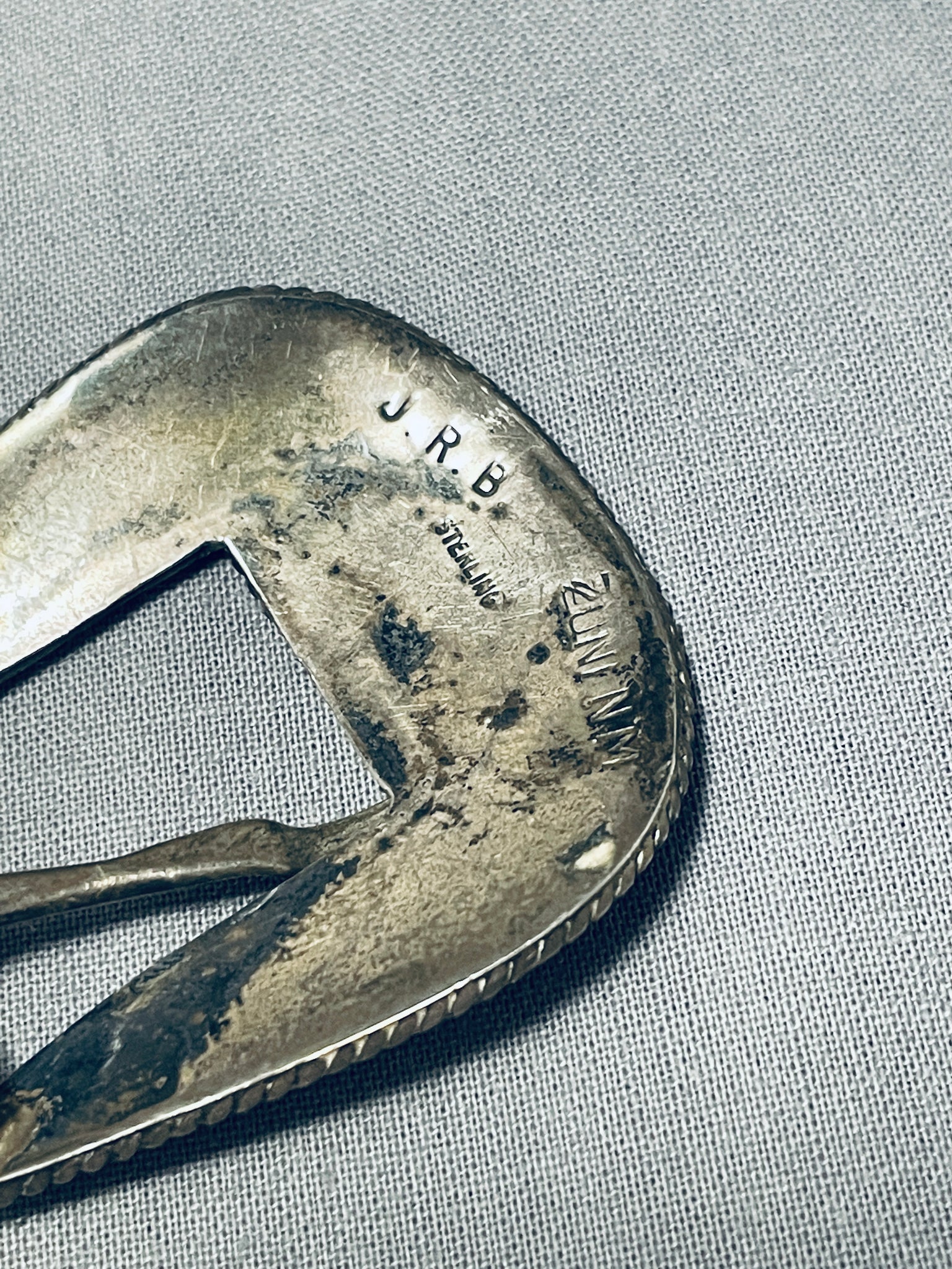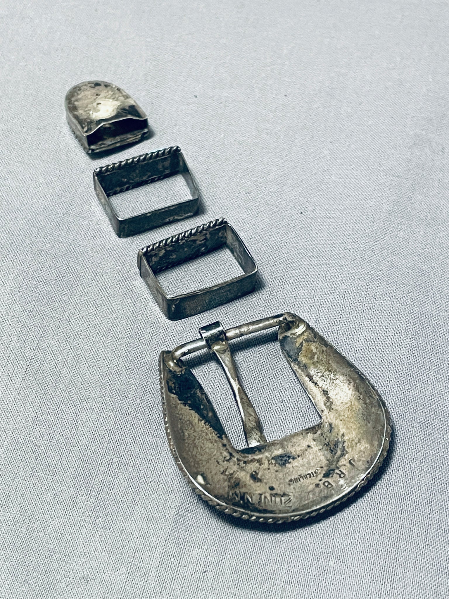 John And Roberta Vintage Native American Zuni Turquoise Sterling Silver Ranger Buckle Set
