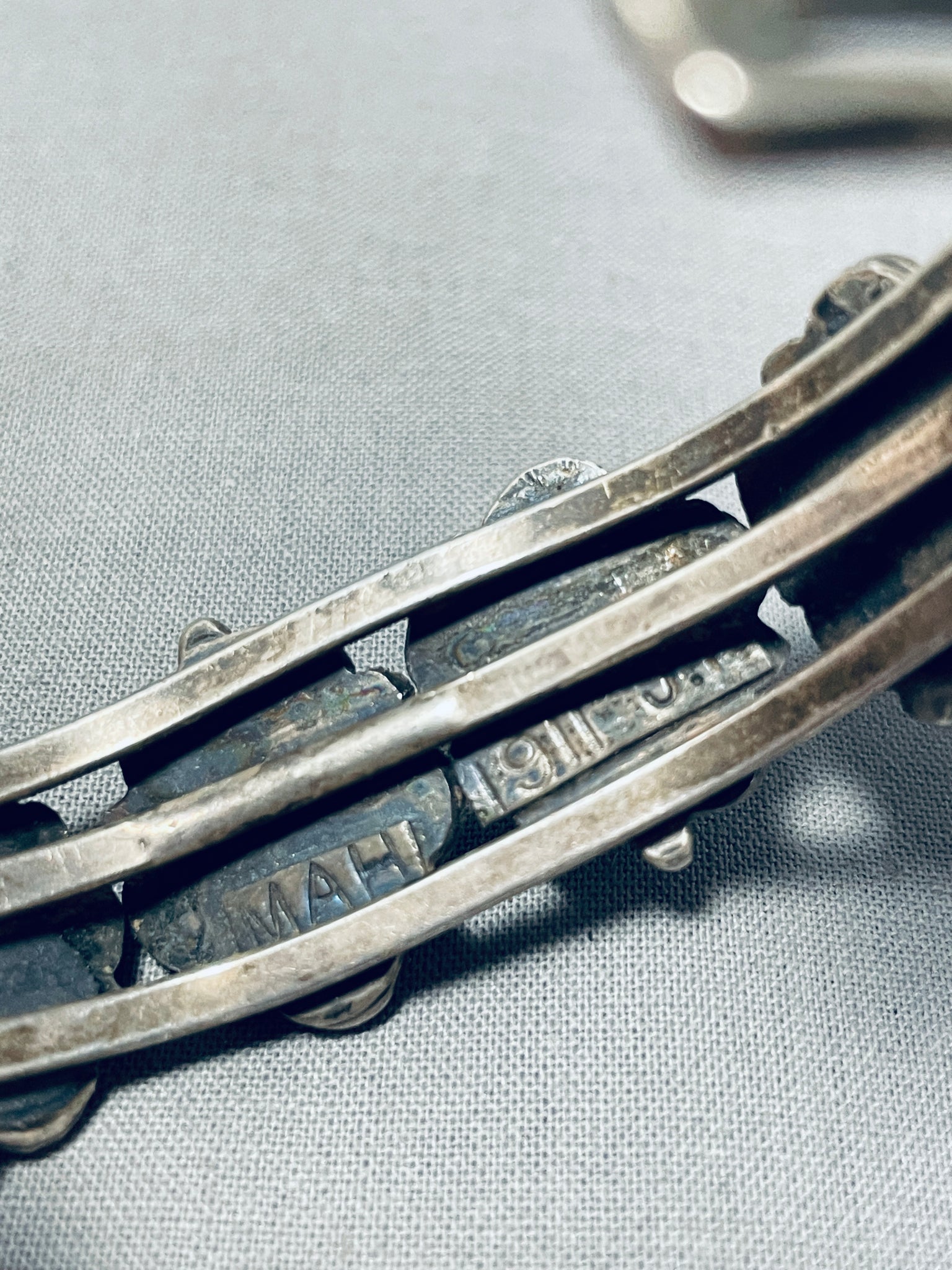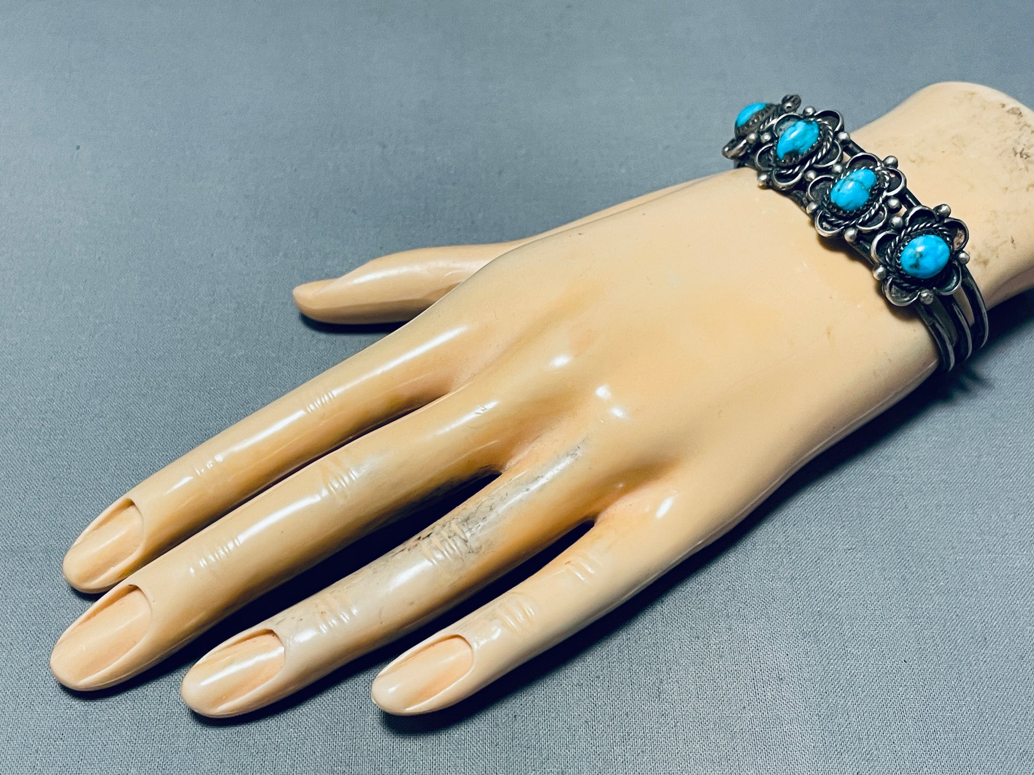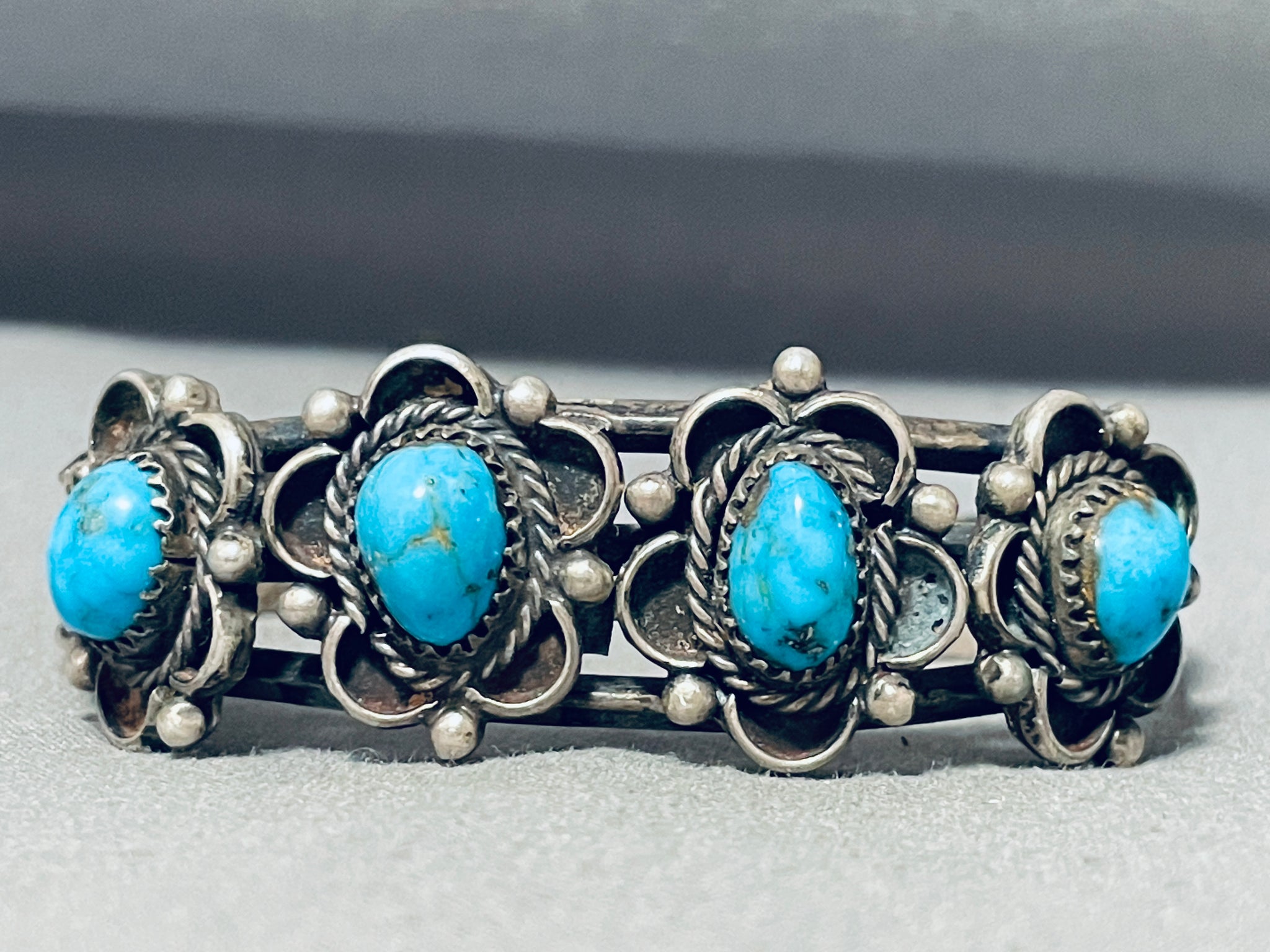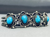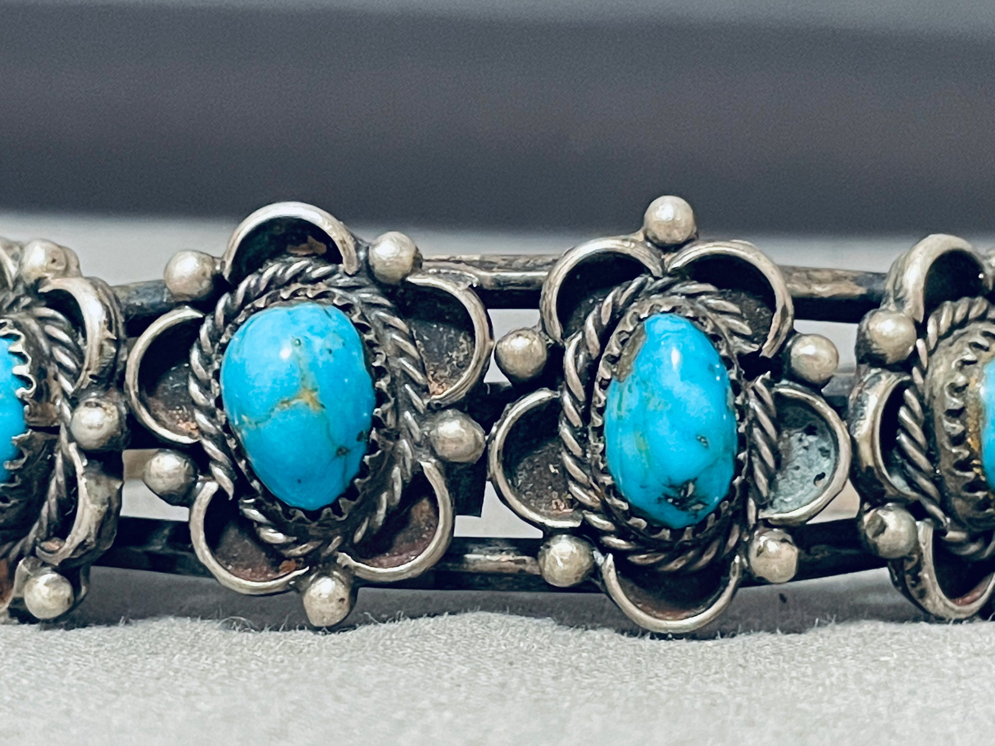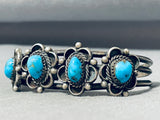 Johnny Frank Vintage Native American Navajo Blue Gem Turquoise Sterling Silver Bracelet