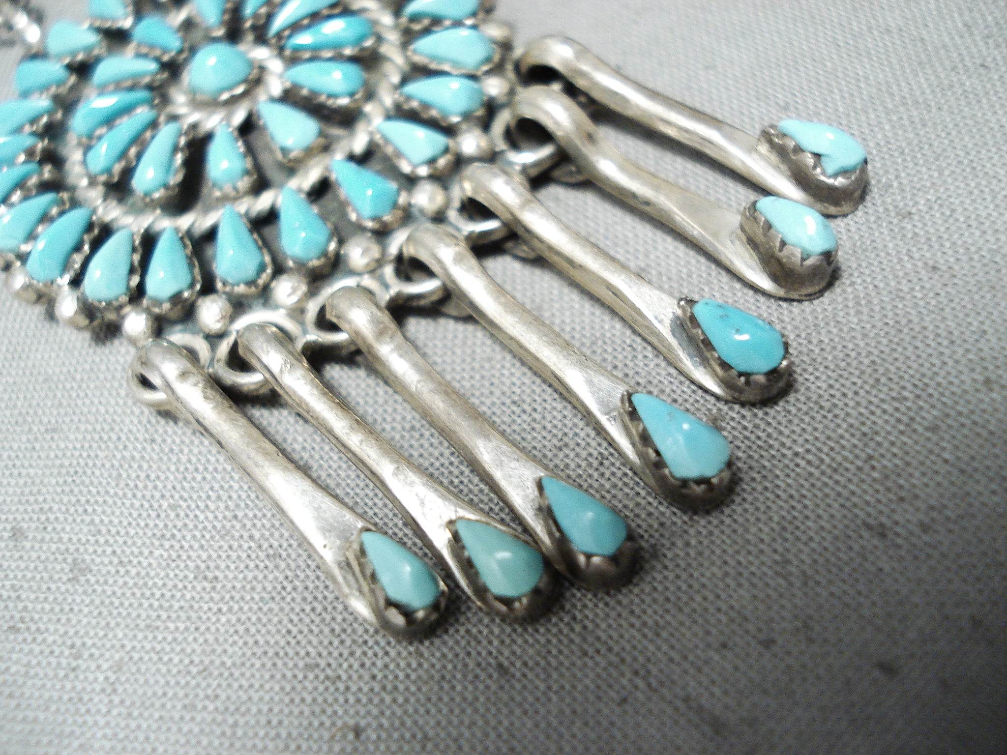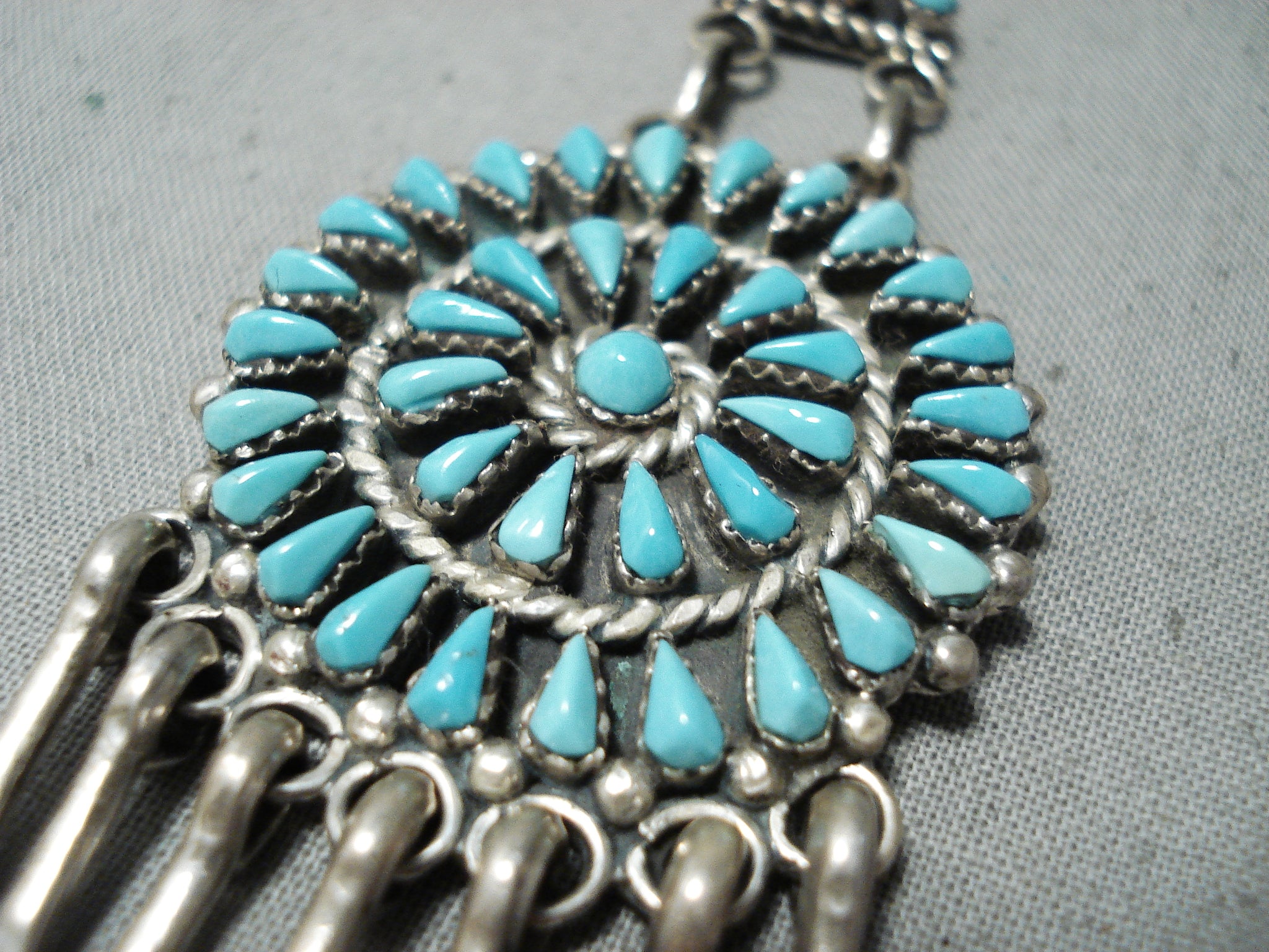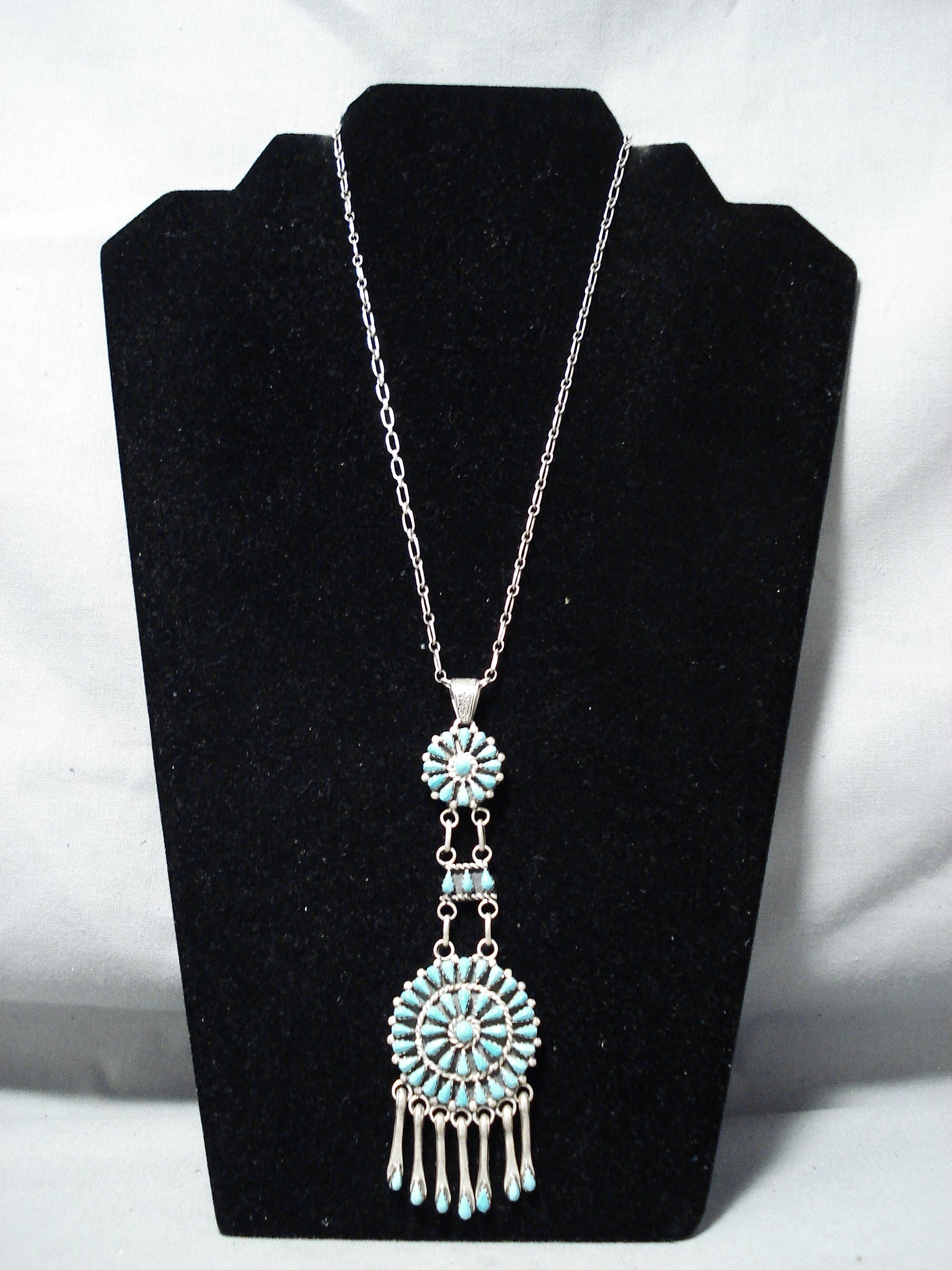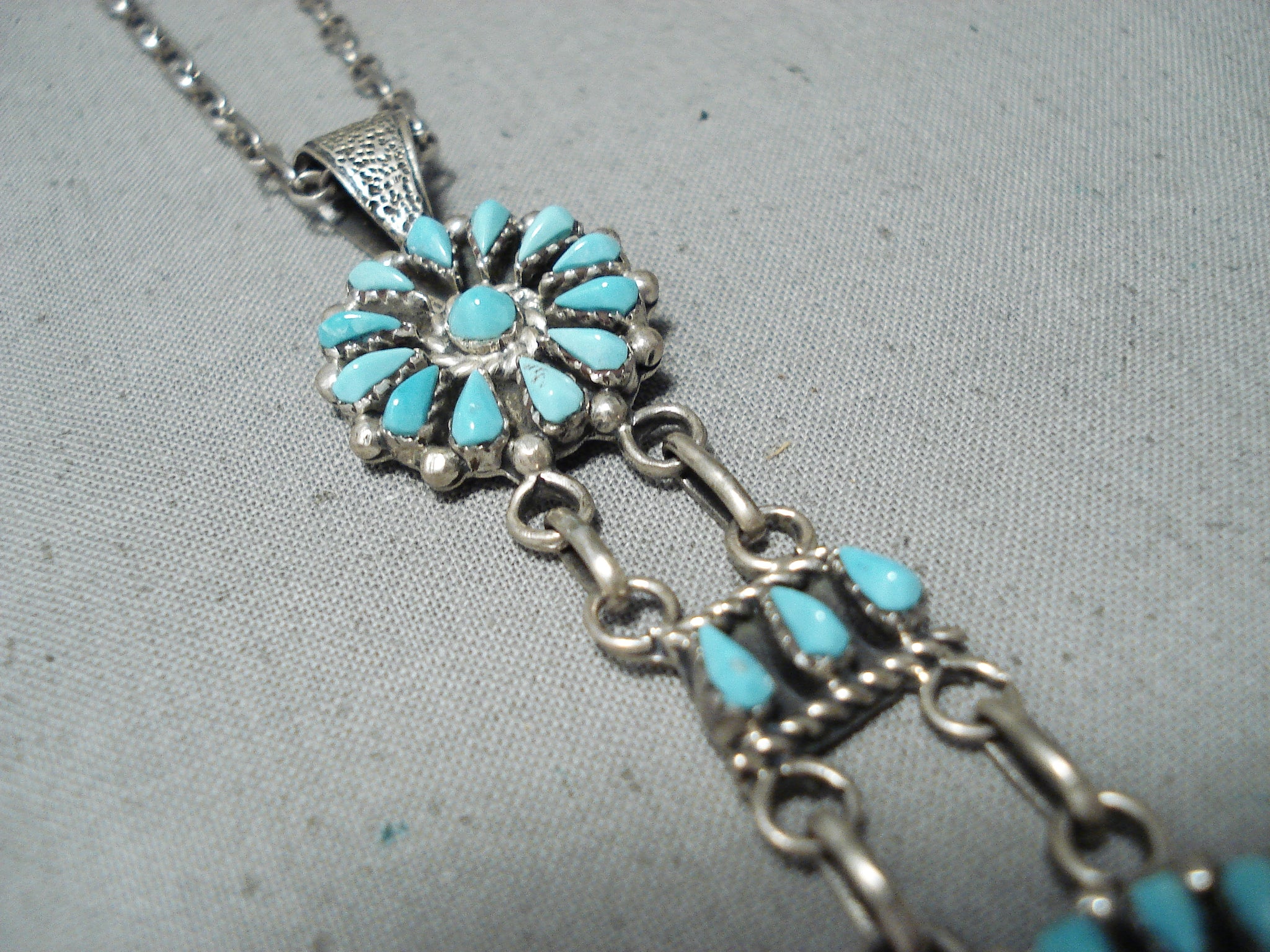 Juan Martinez Vintage Native American Zuni Sleeping Turquoise Sterling Silver Necklace Old
