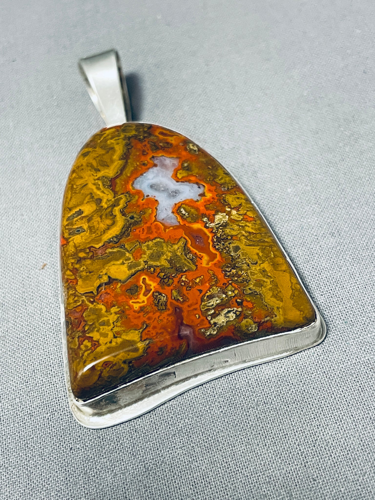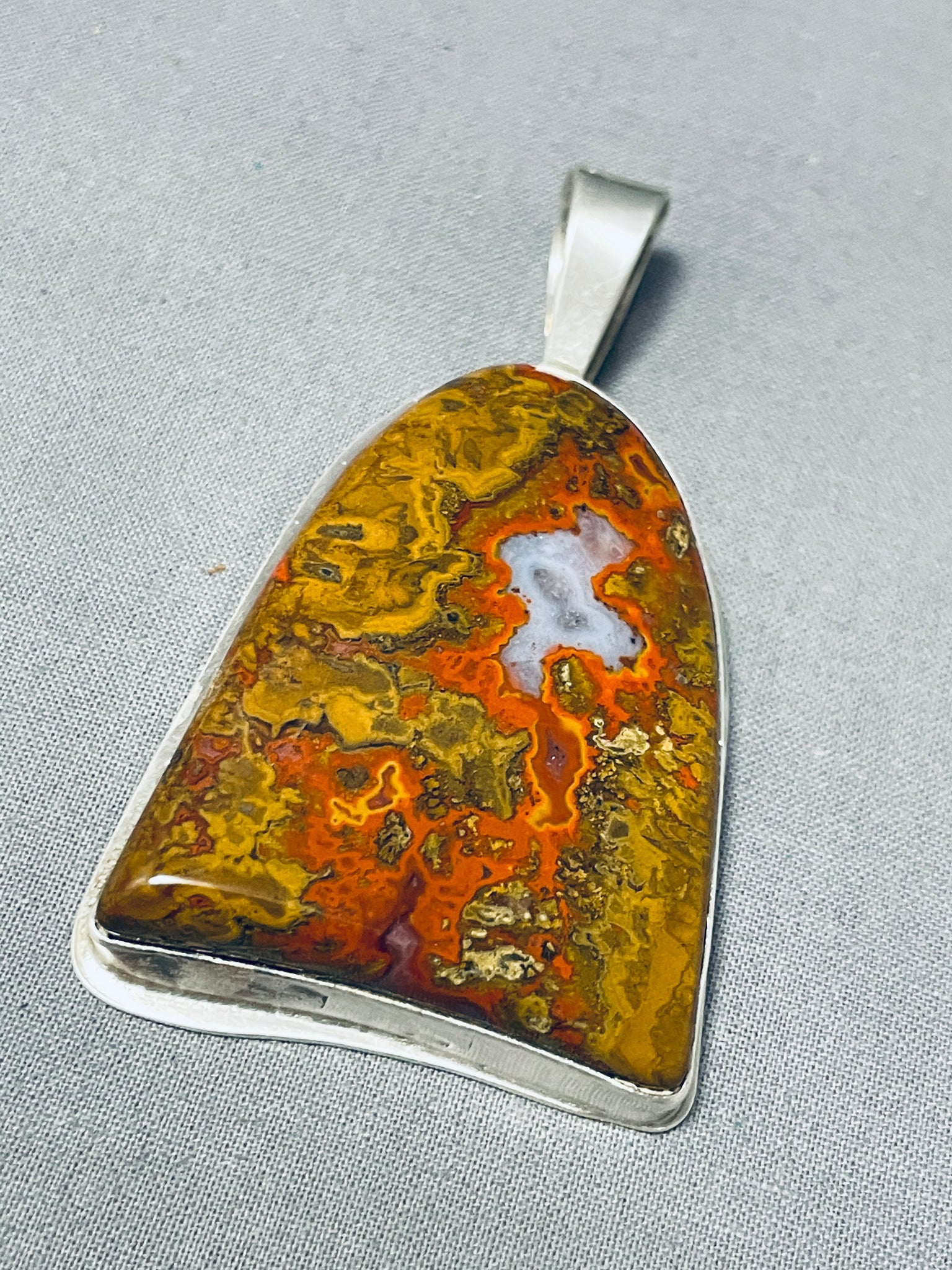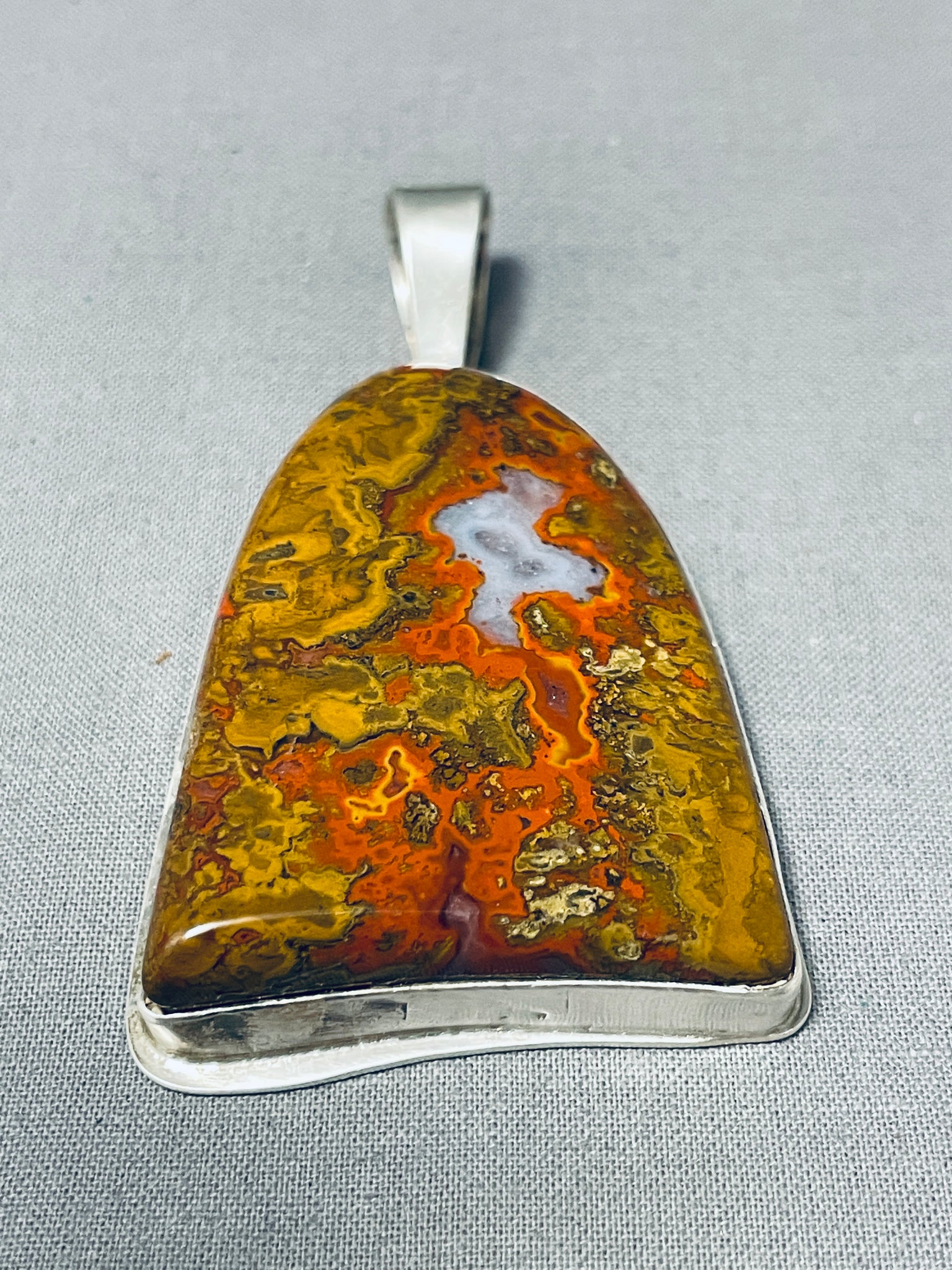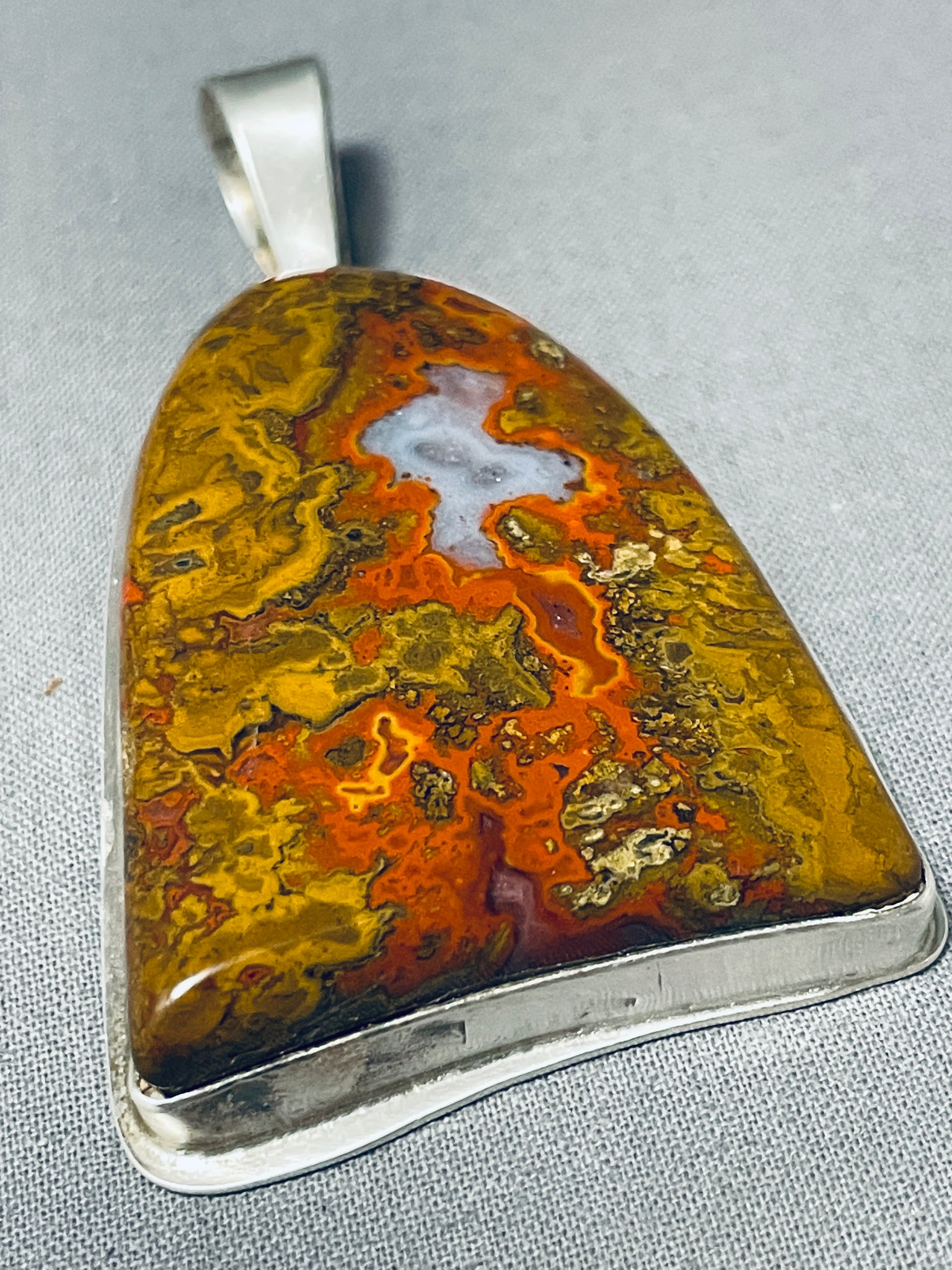 Lava Flow Agate Very Rare Native American Navajo Sterling Silver Huge Pendant