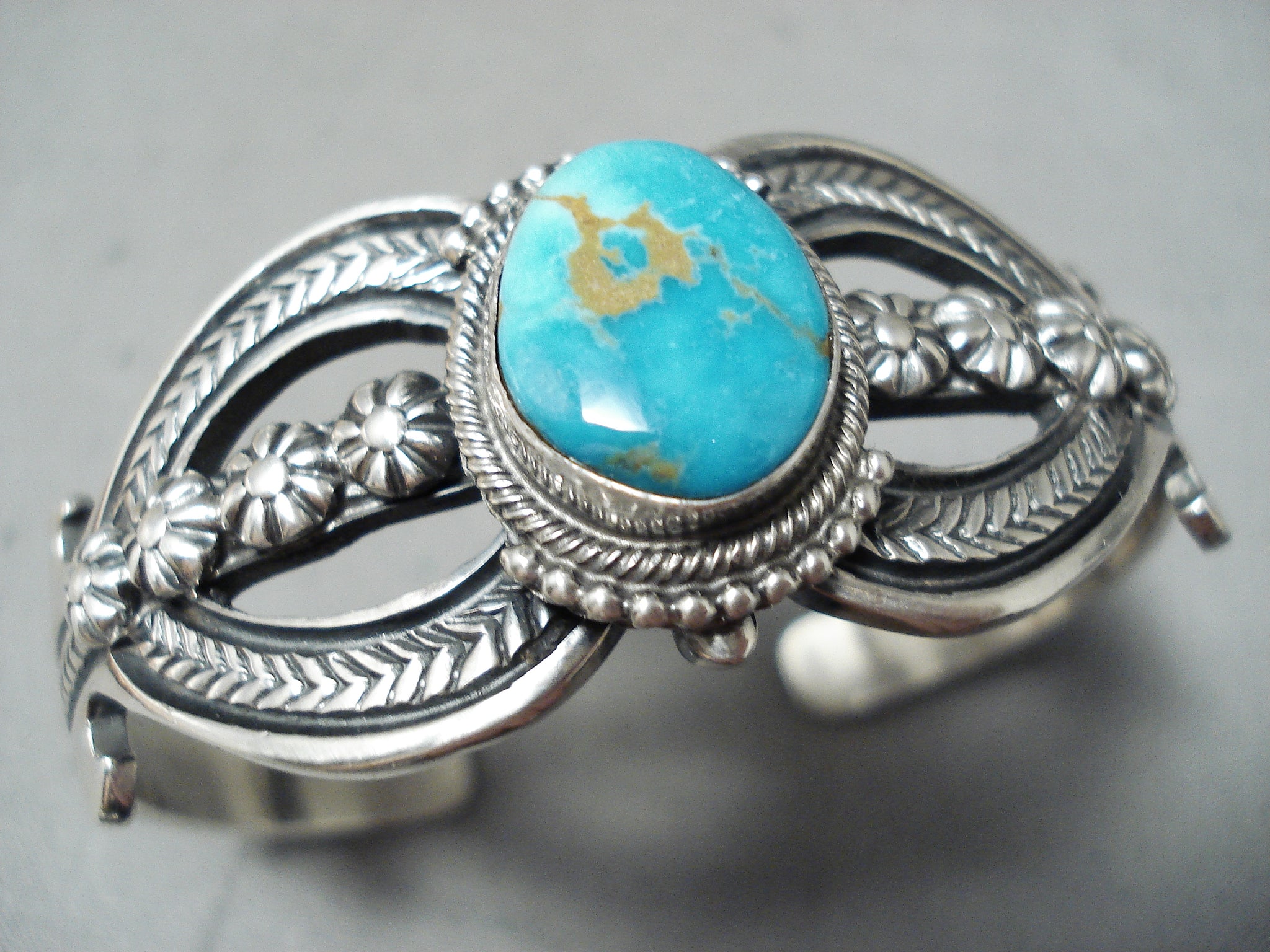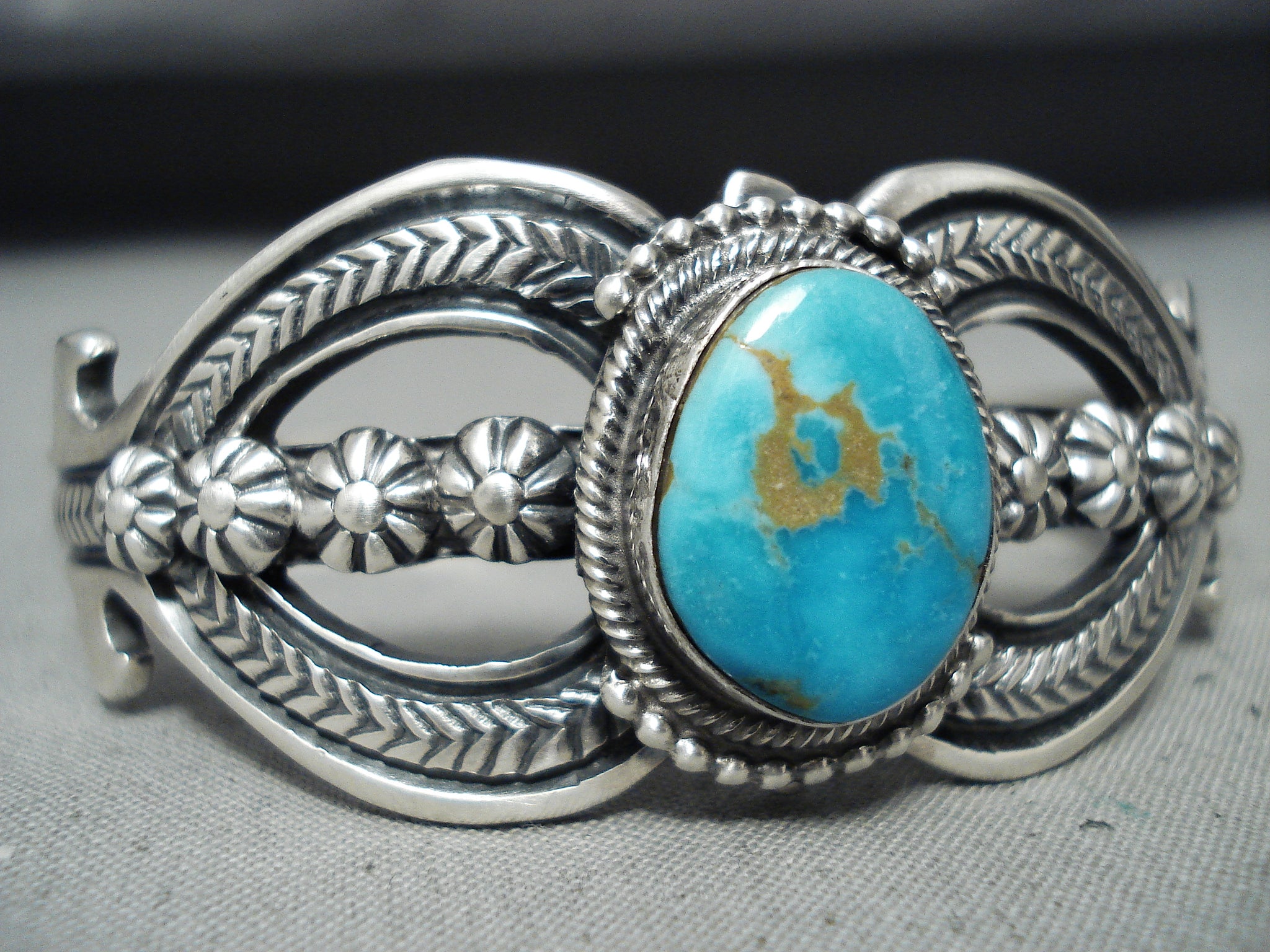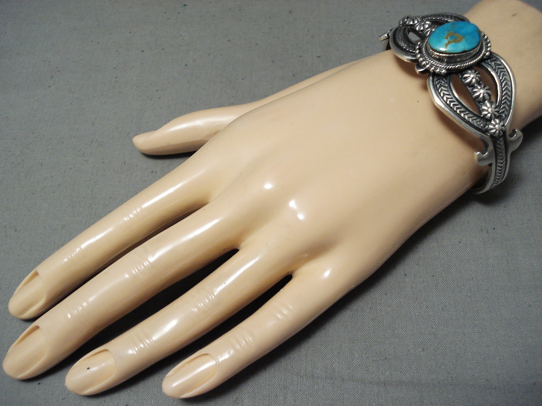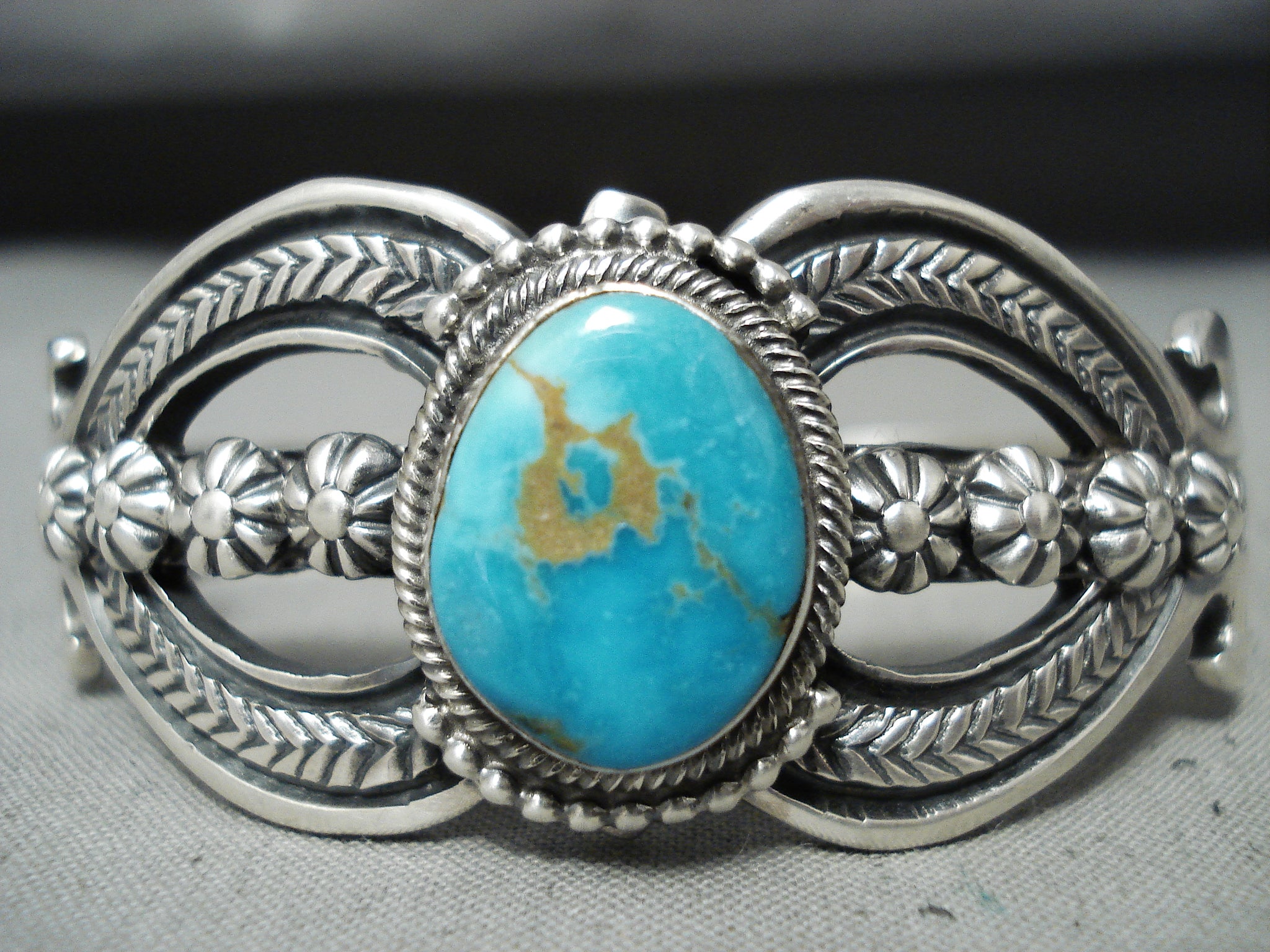Leon Martinez Vintage Native American Navajo Candelaria Turquoise Sterling Silver Bracelet