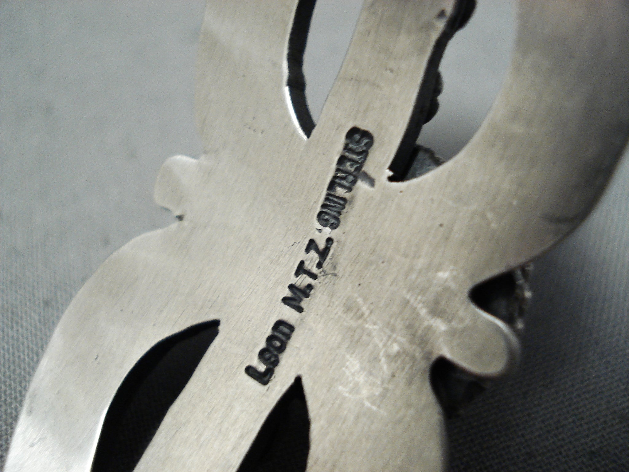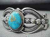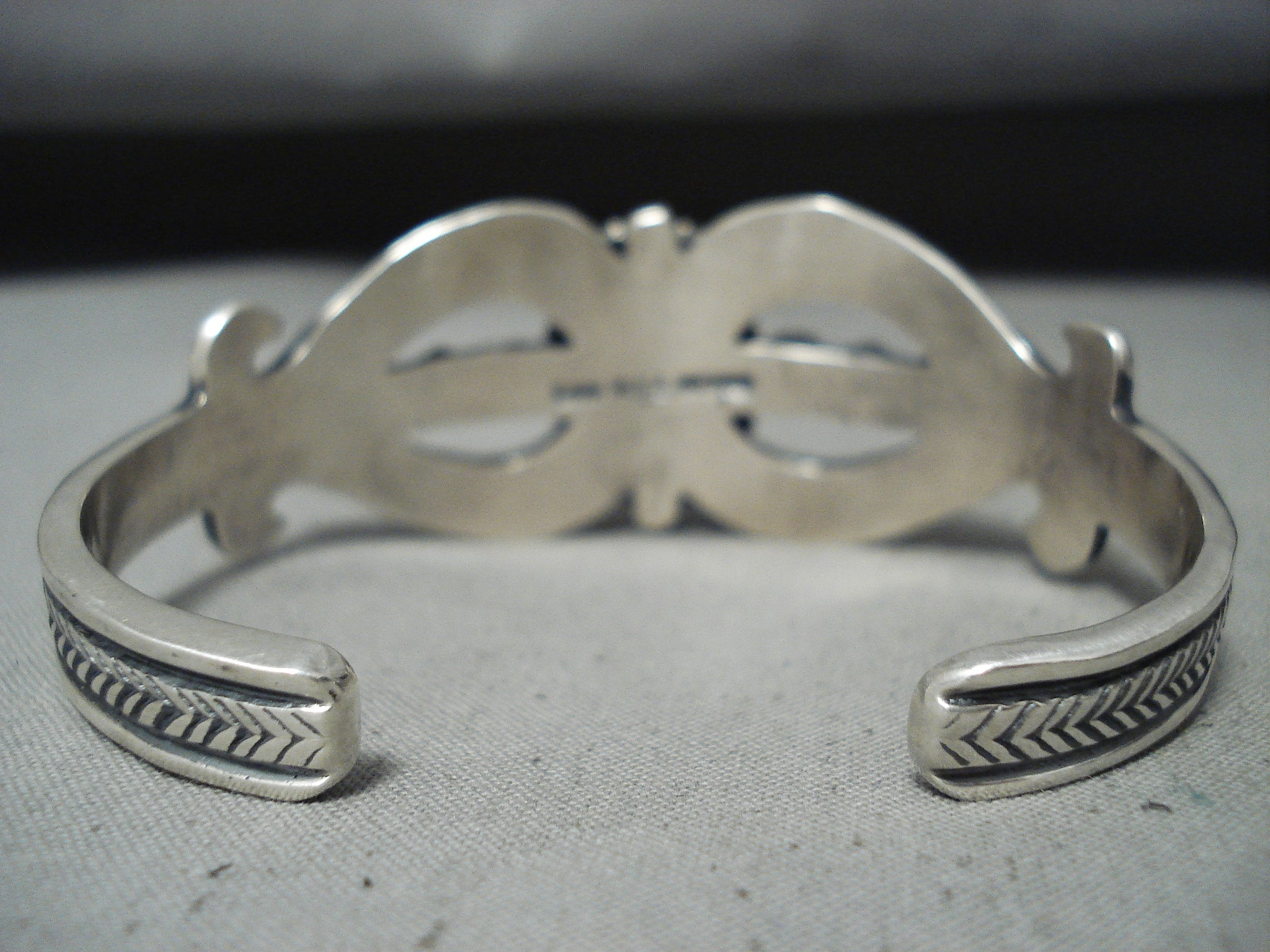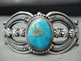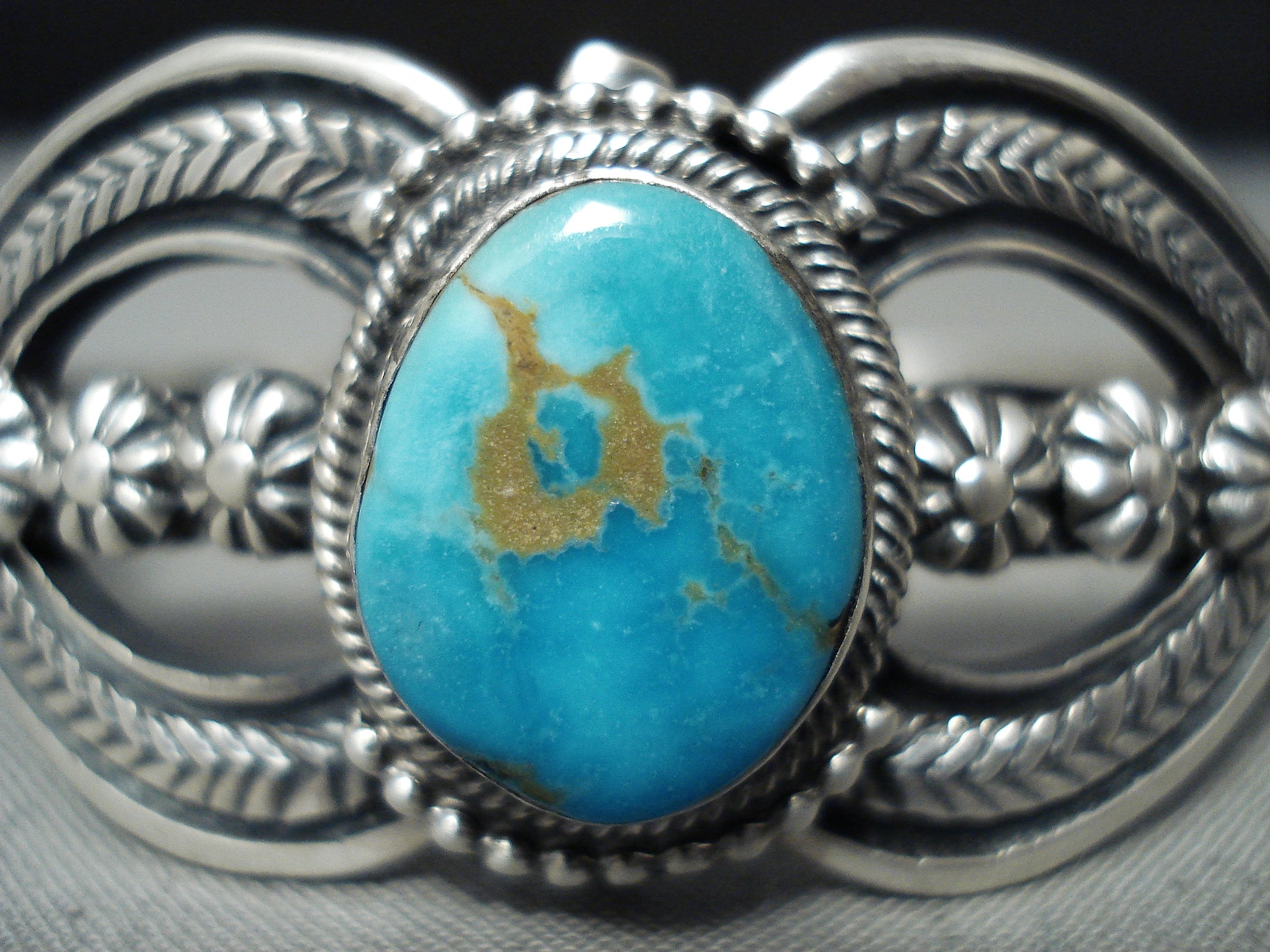 Leon Martinez Vintage Native American Navajo Candelaria Turquoise Sterling Silver Bracelet