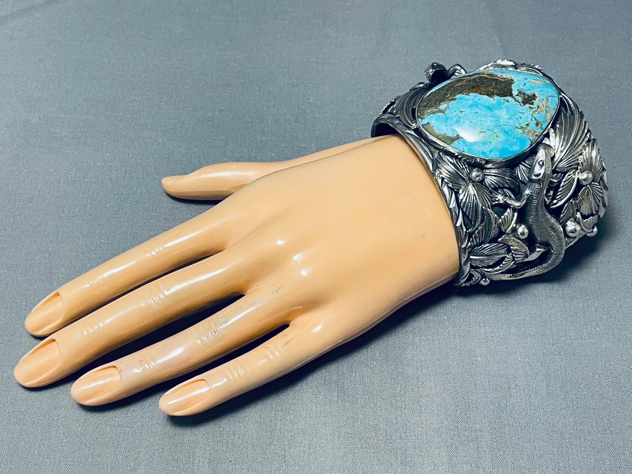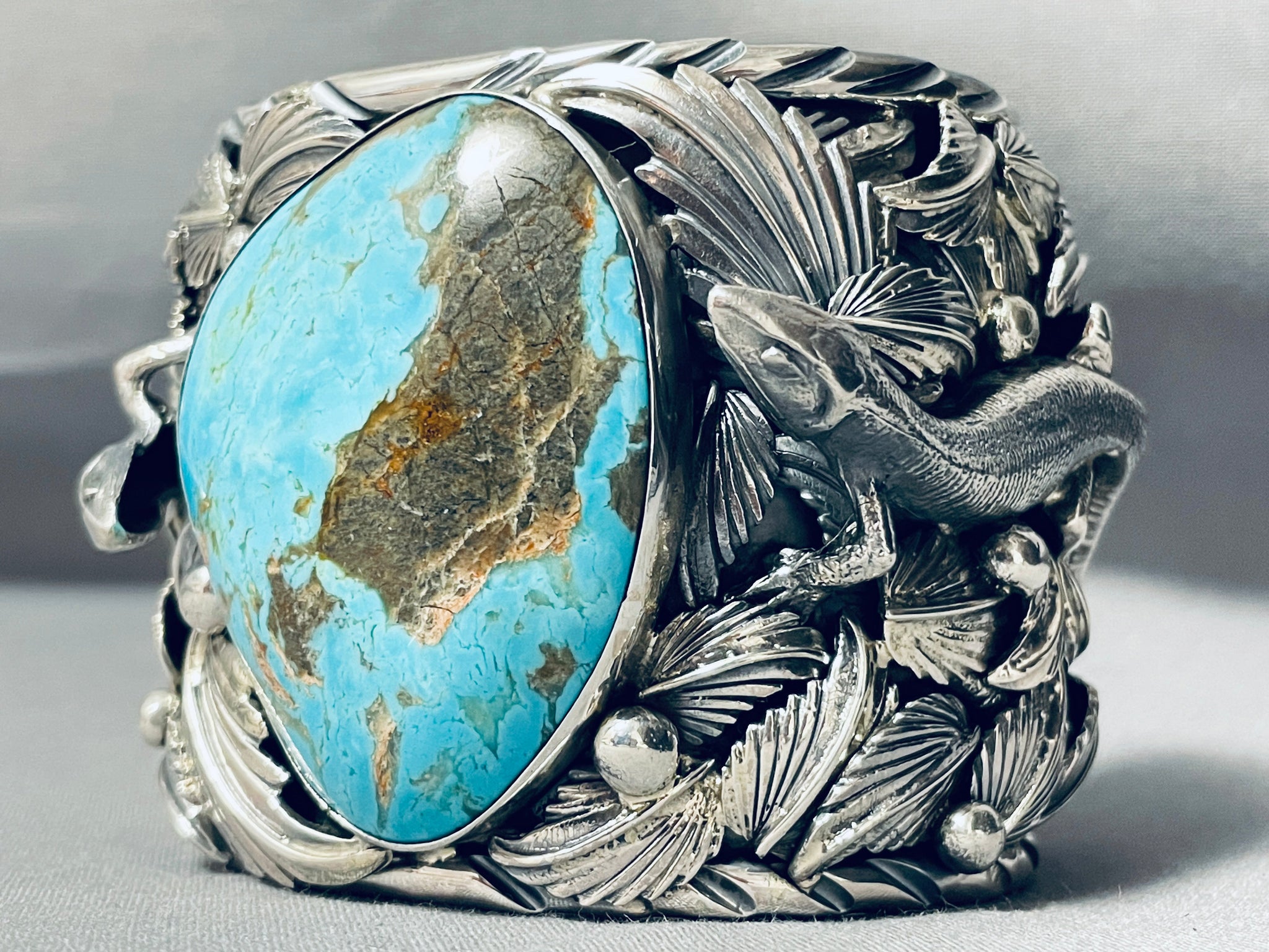 Lizard 230 Gram Native American Turquoise Sterling Silver Bracelet