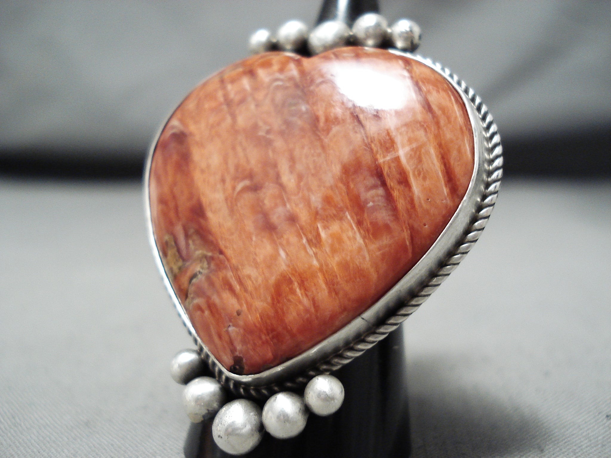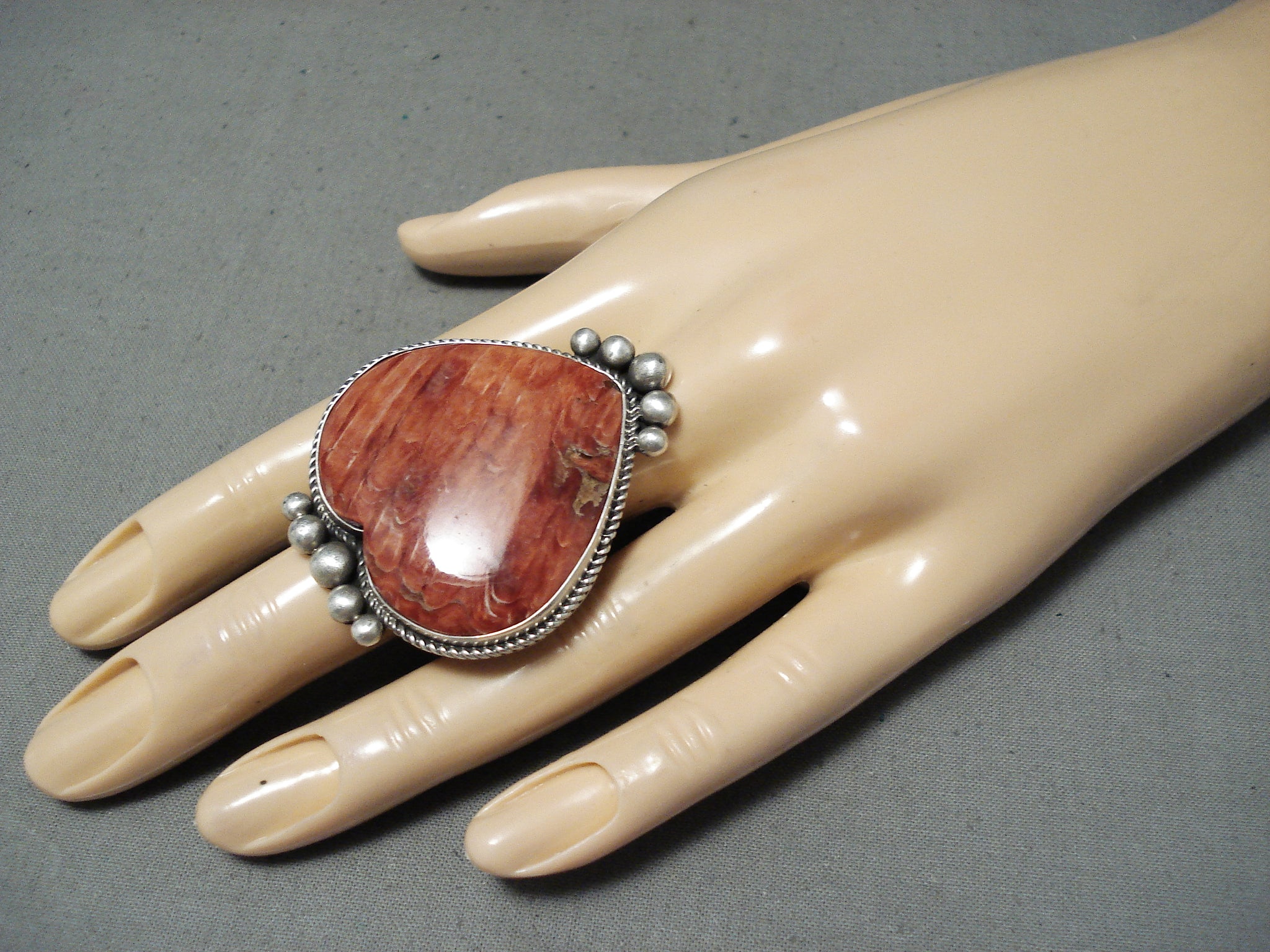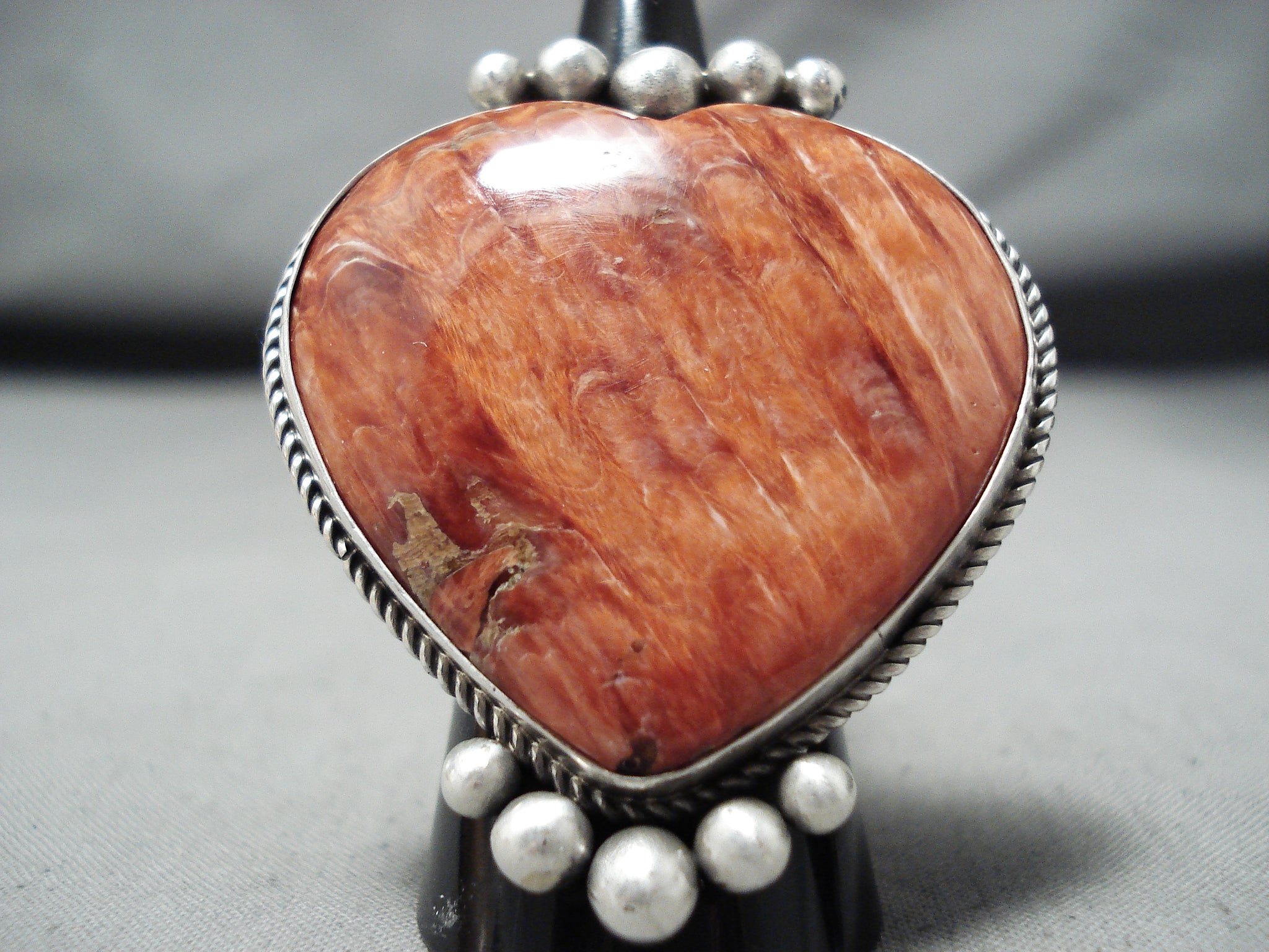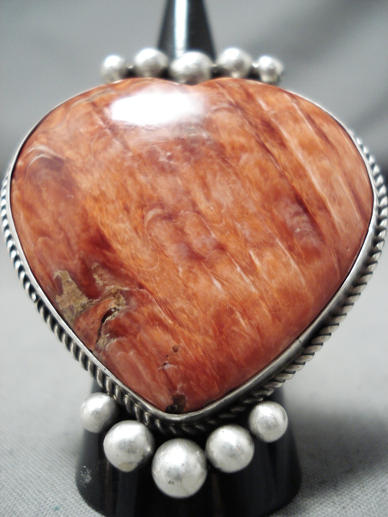 Lyle Cadman Native American Navajo Spiny Oyster Sterling Silver Heart Ring