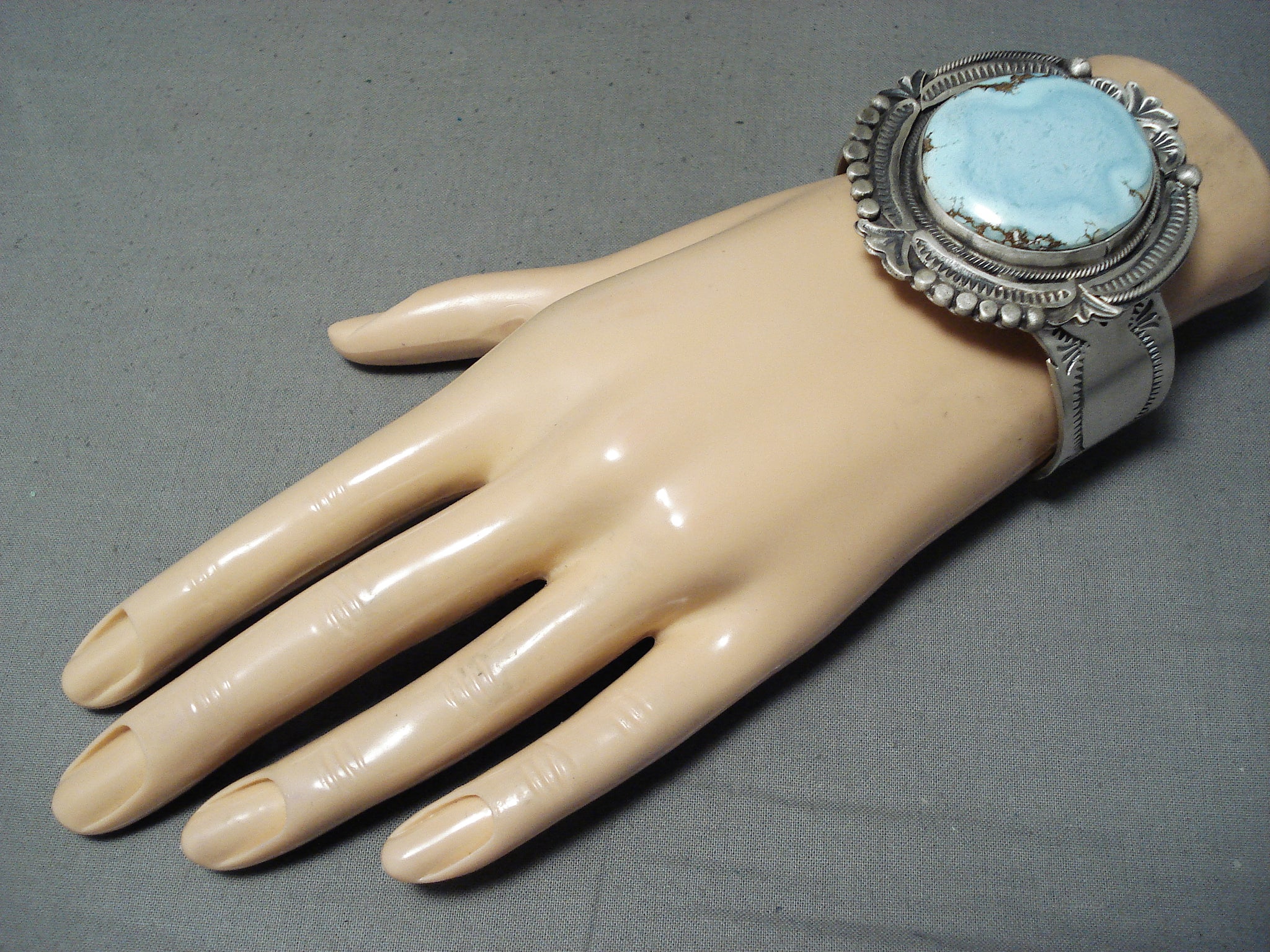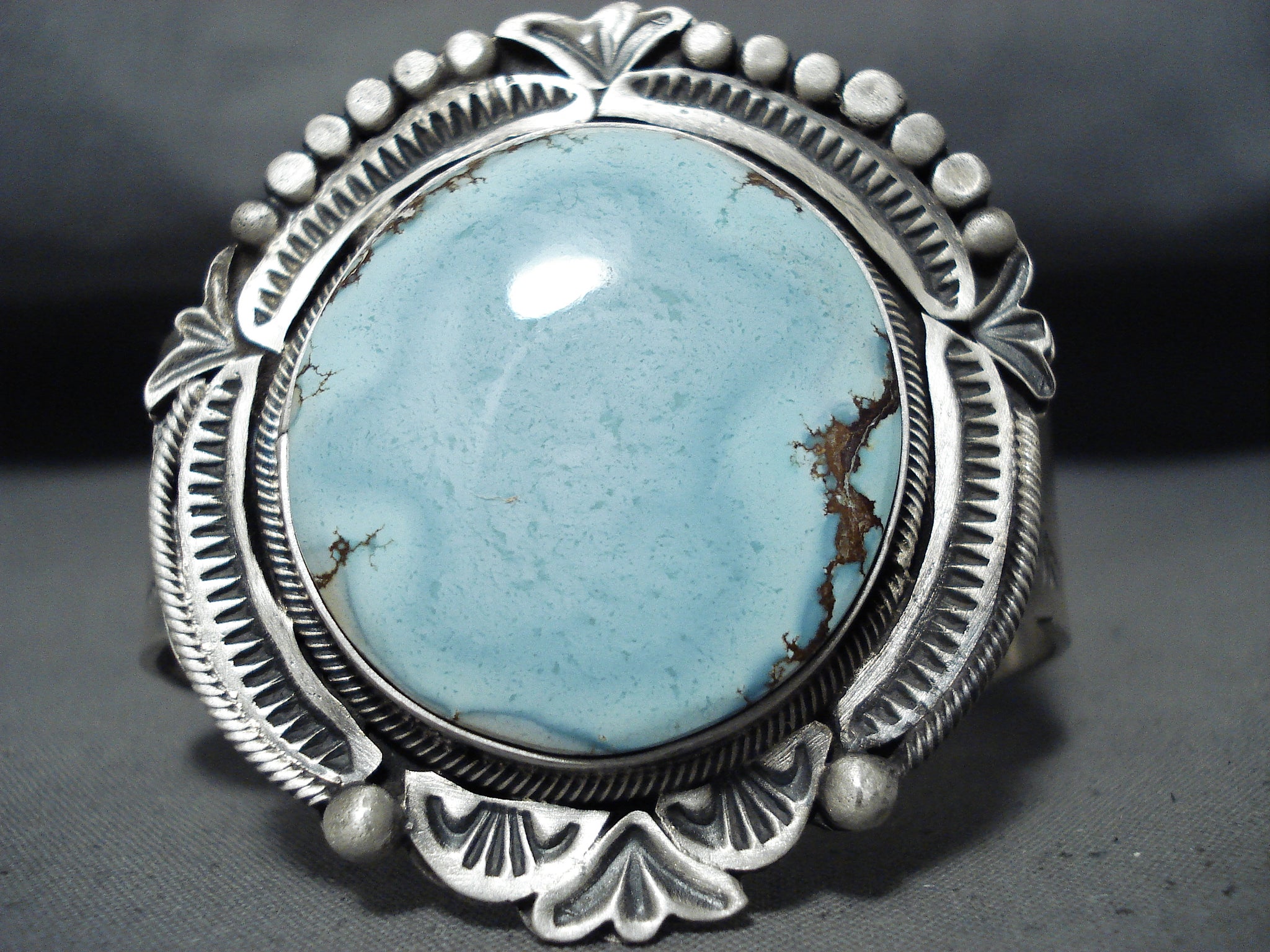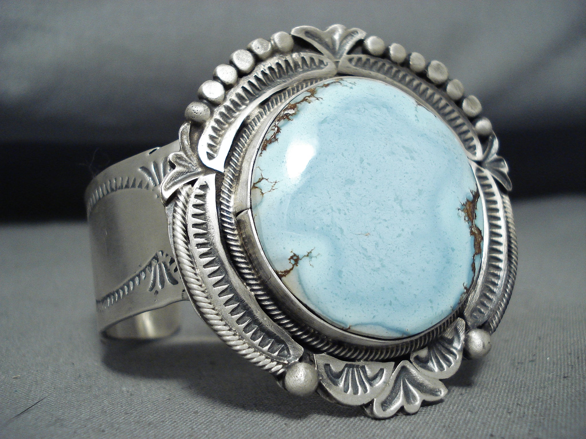 Magnificent Native American Navajo Golden Hill Turquoise Sterling Silver Bracelet Signed