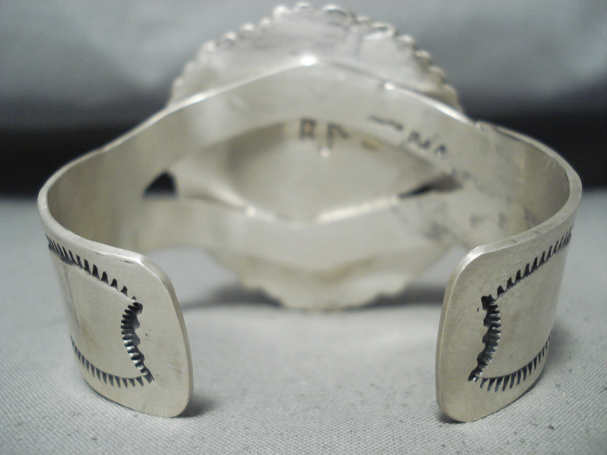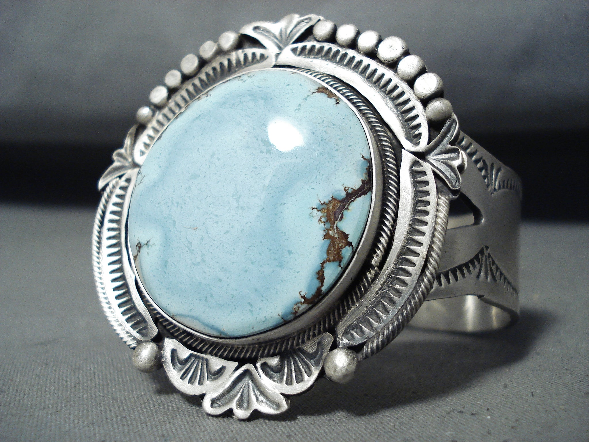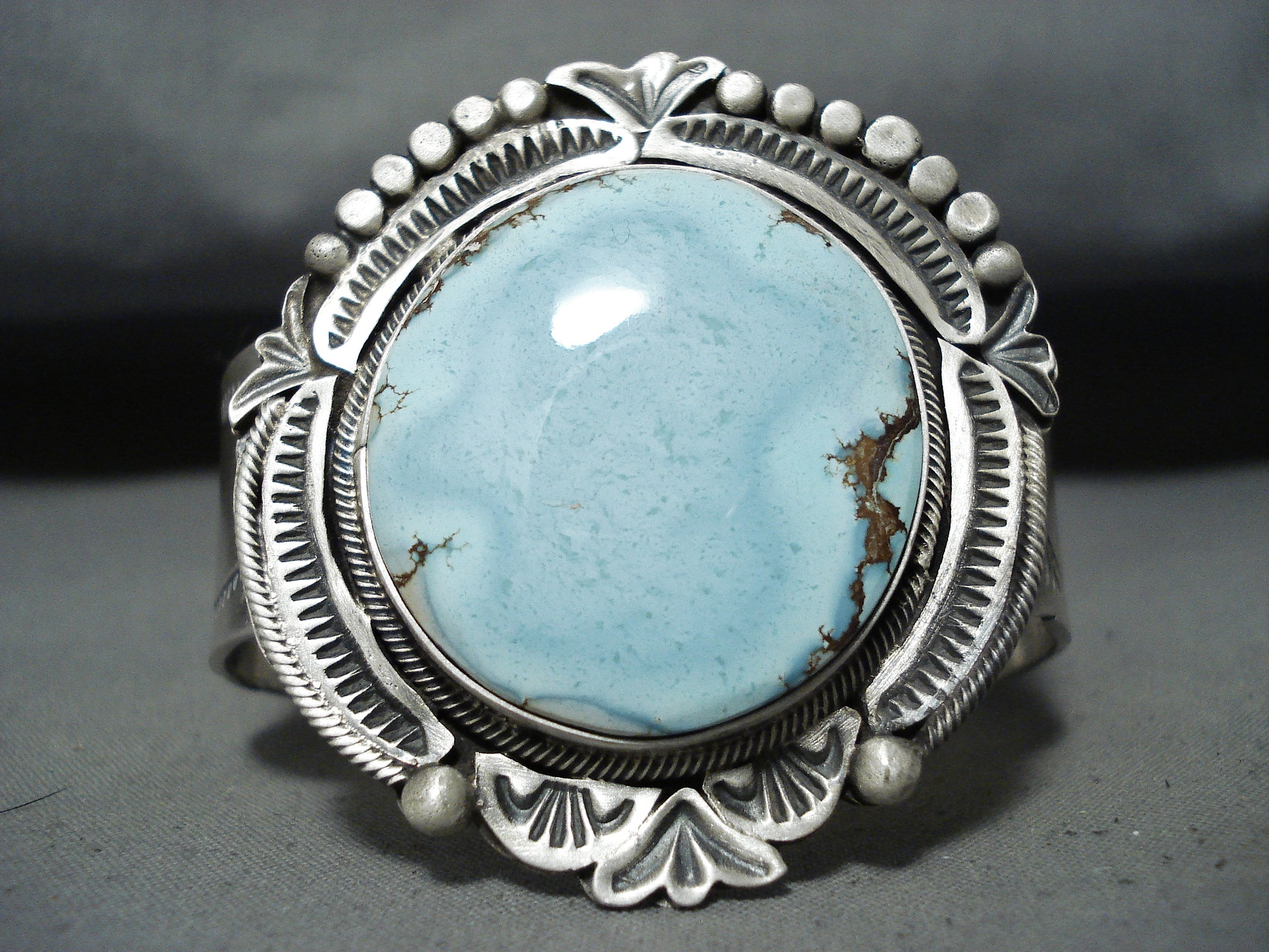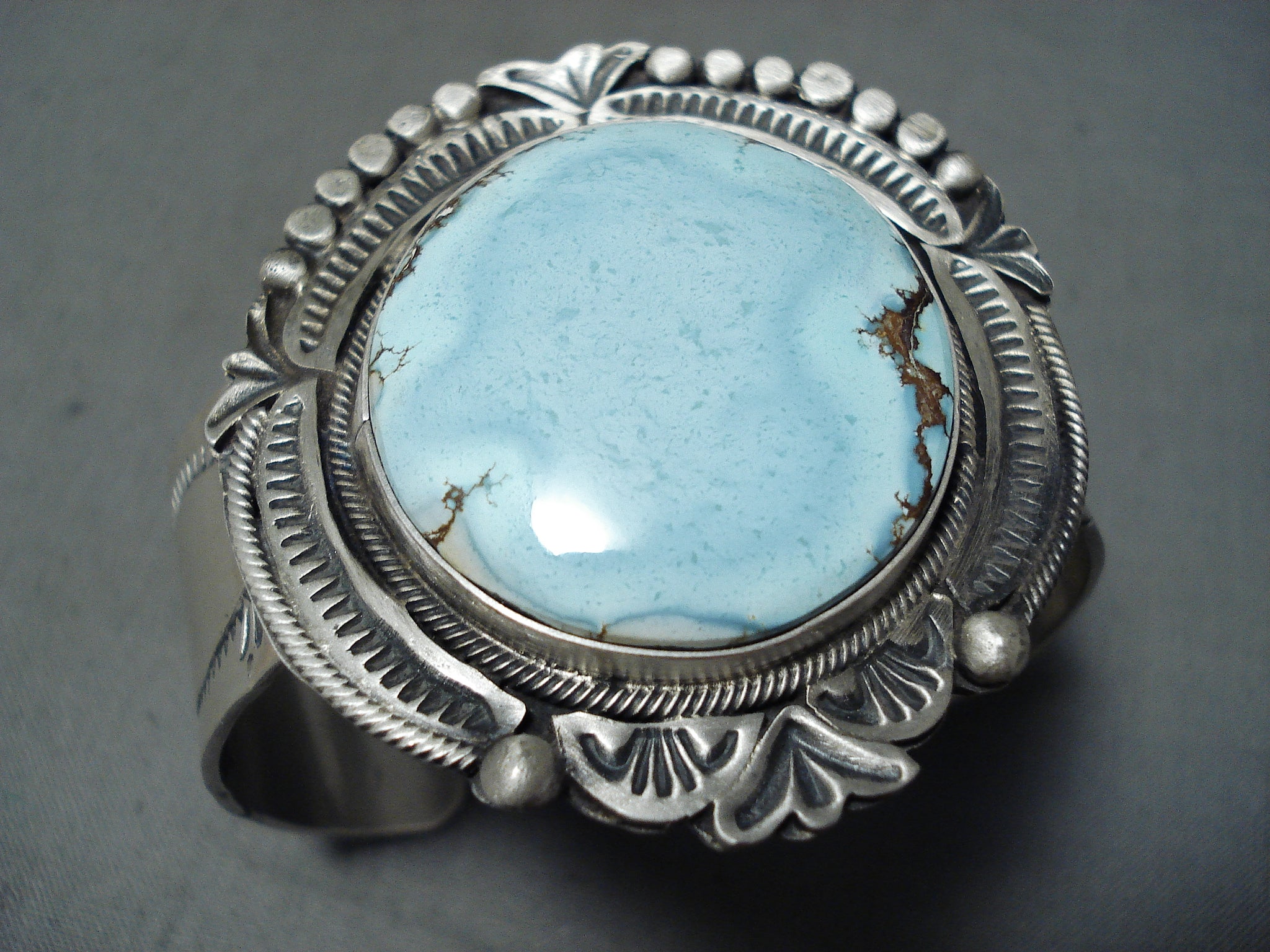 Magnificent Native American Navajo Golden Hill Turquoise Sterling Silver Bracelet Signed