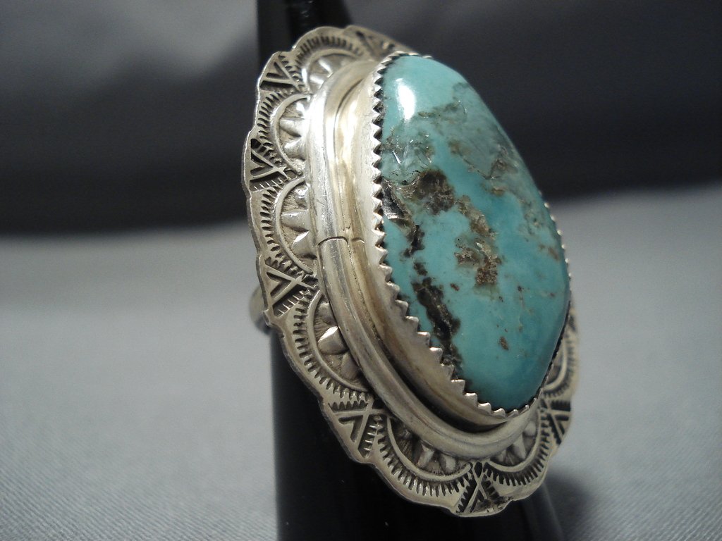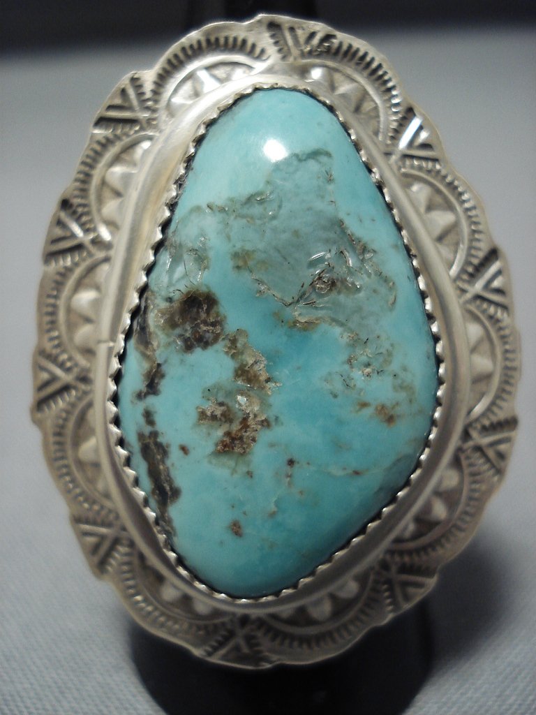 Magnificent Native American Jewelry Navajo Green Turquoise Tso Sterling Silver Ring