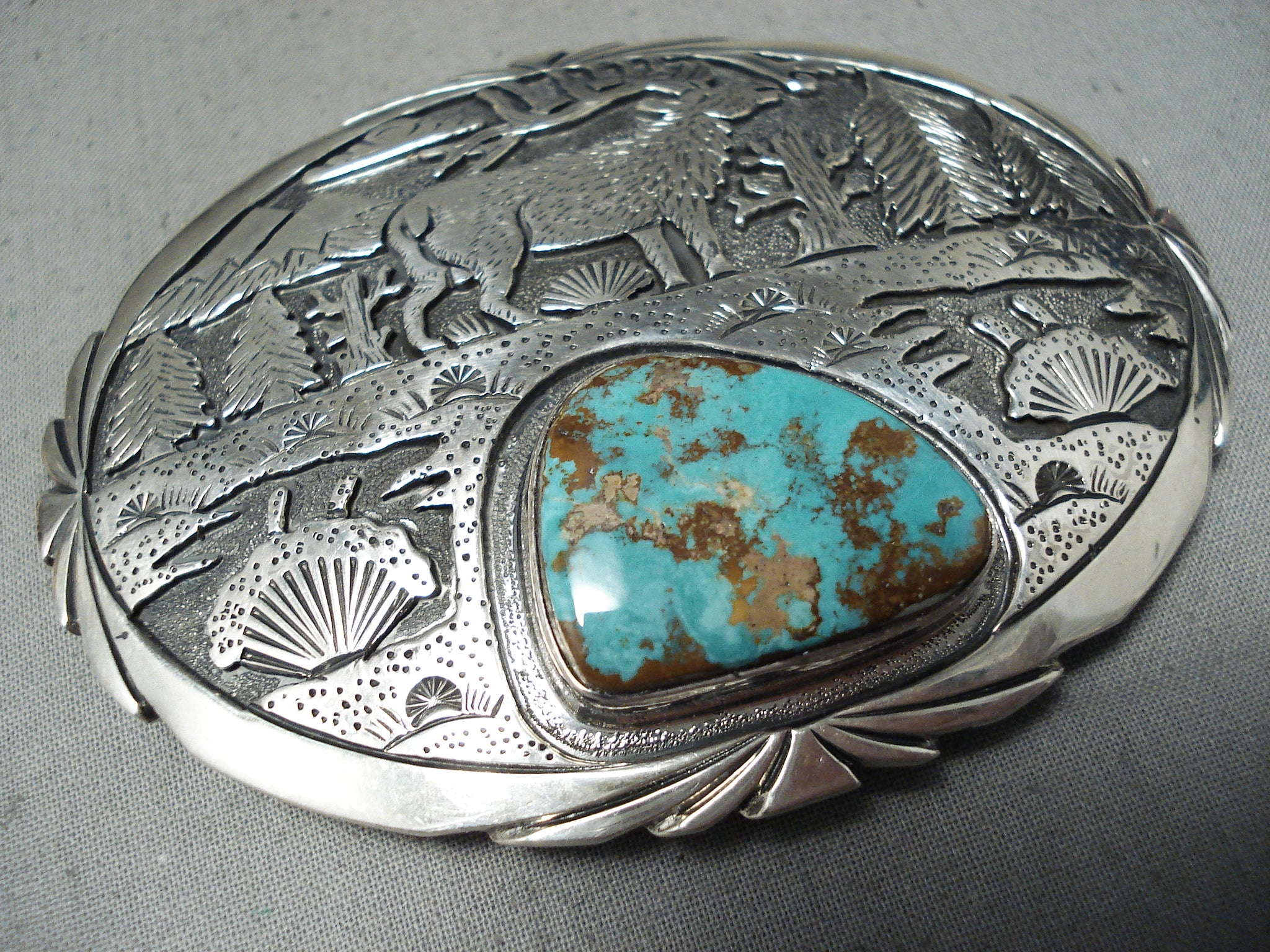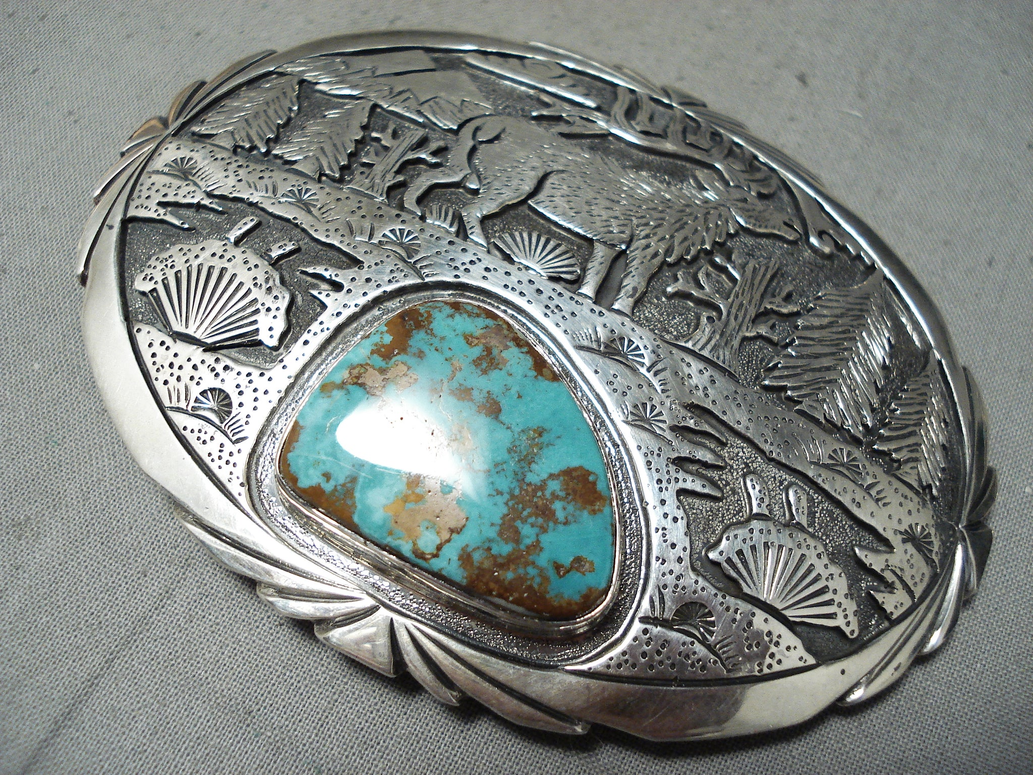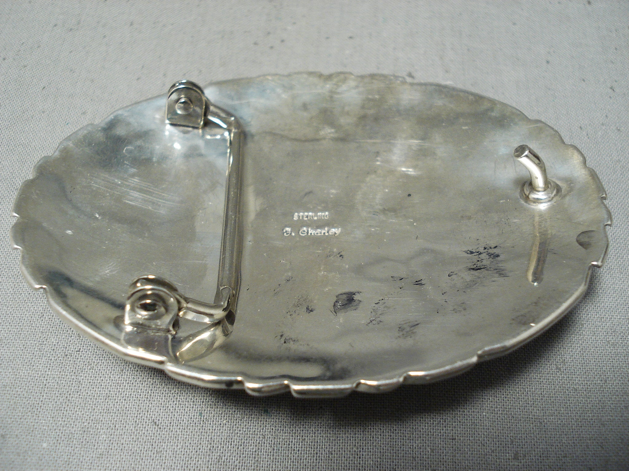 Magnificent Tom Charley Vintage Native American Navajo Royston Sterling Silver Huge Buckle