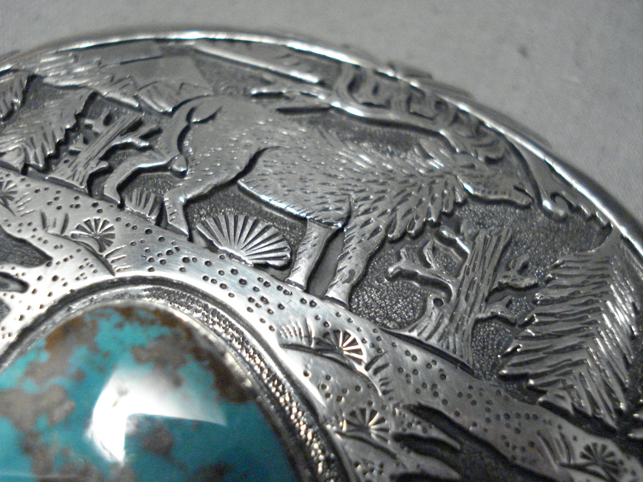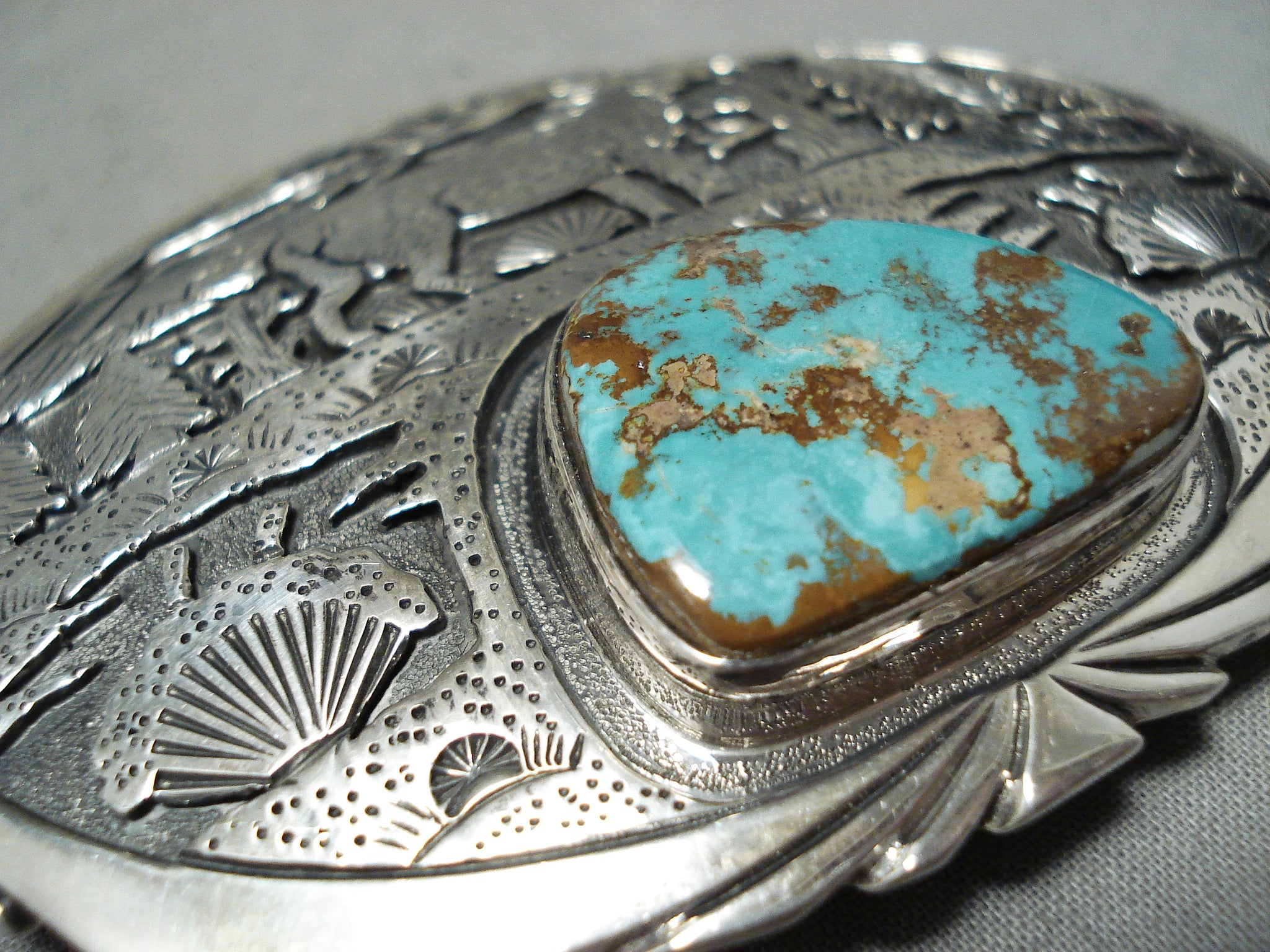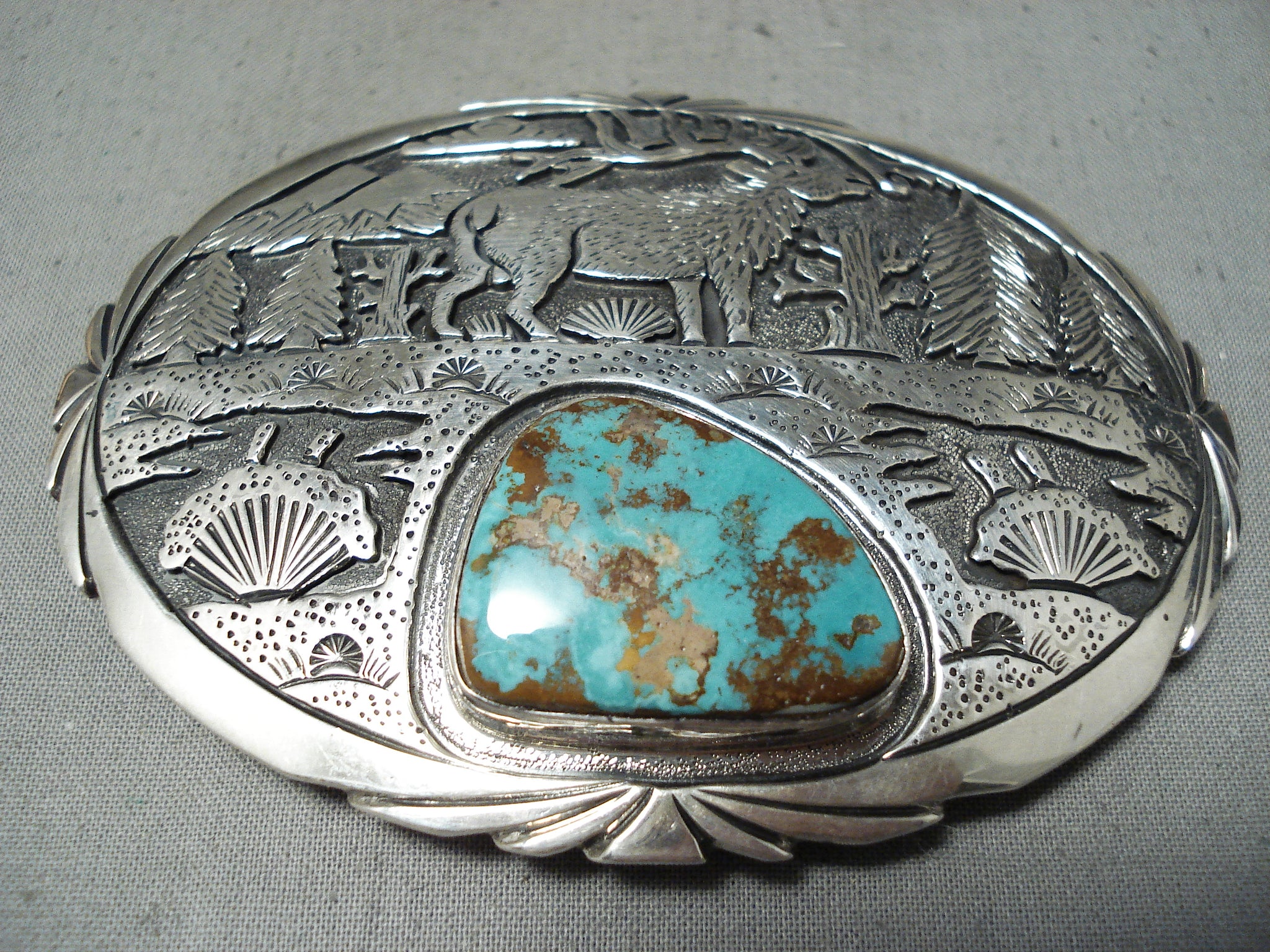 Magnificent Tom Charley Vintage Native American Navajo Royston Sterling Silver Huge Buckle