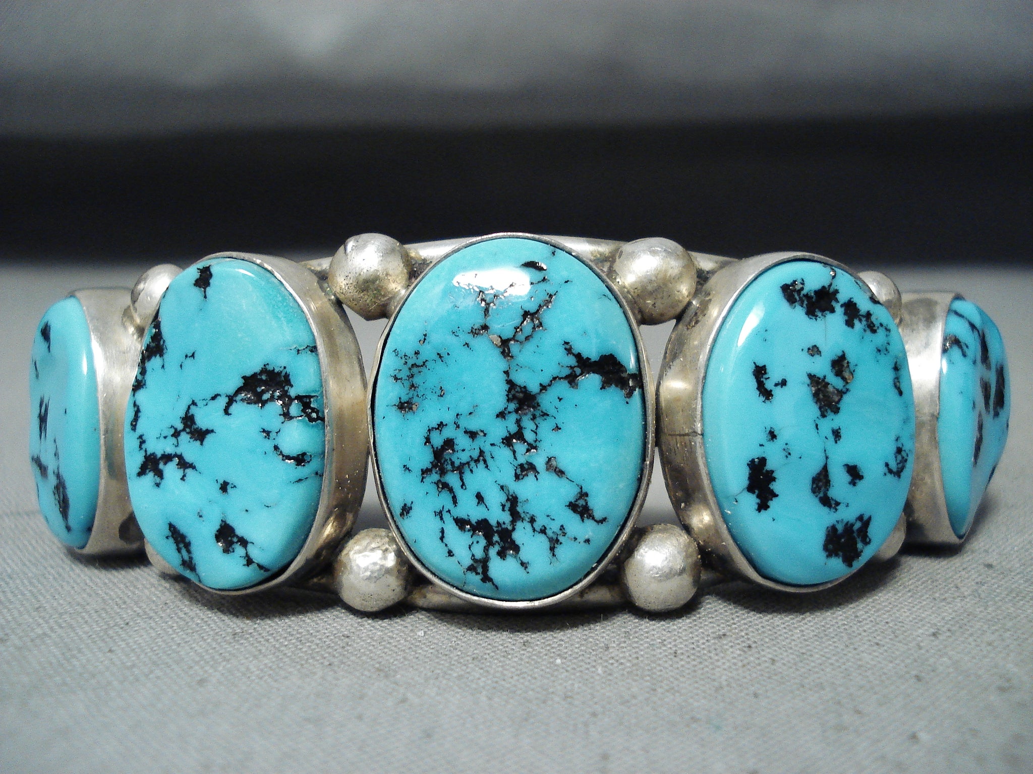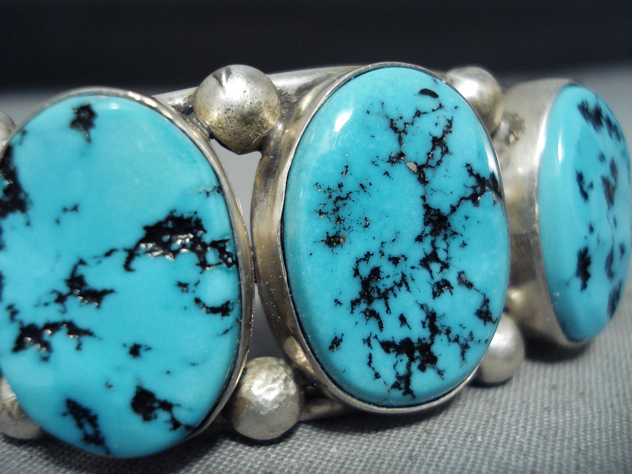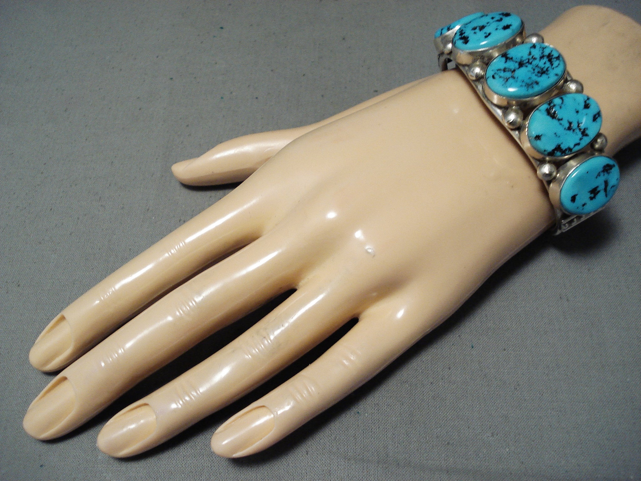 Magnificent Vintage Native American Hopi Morenci Turquoise Sterling Silver Bracelet Signed