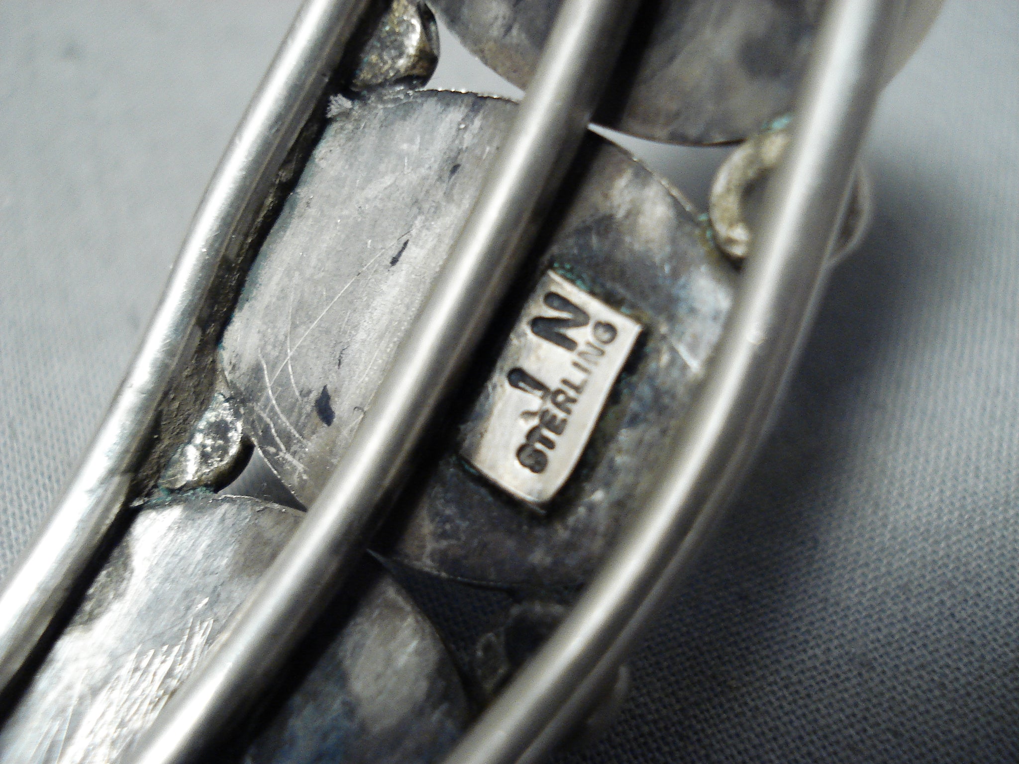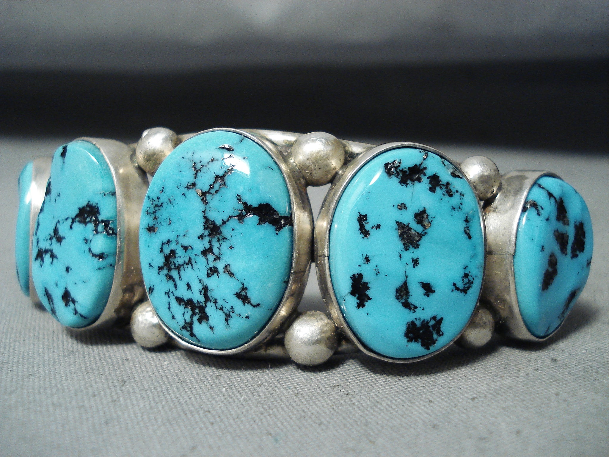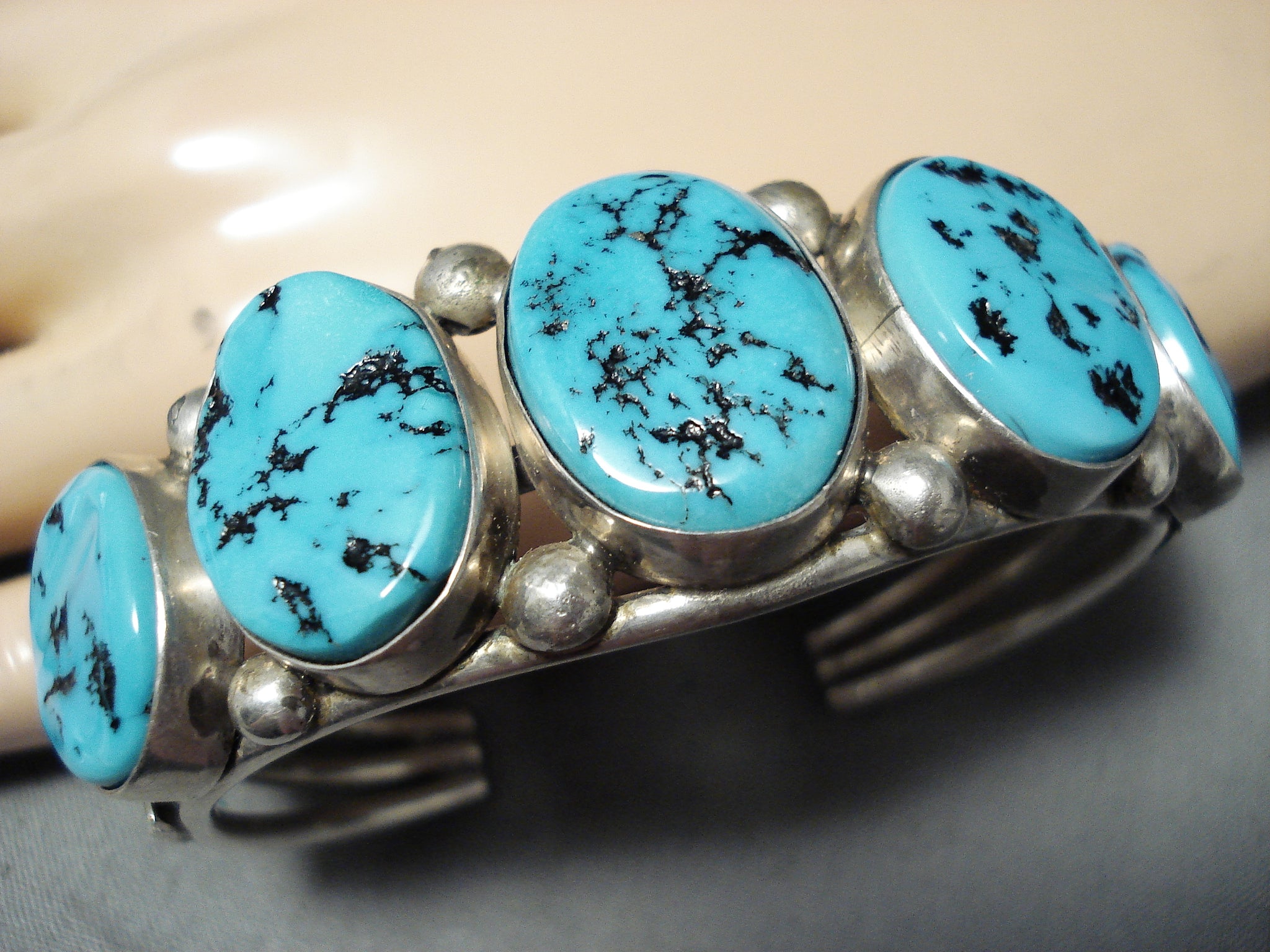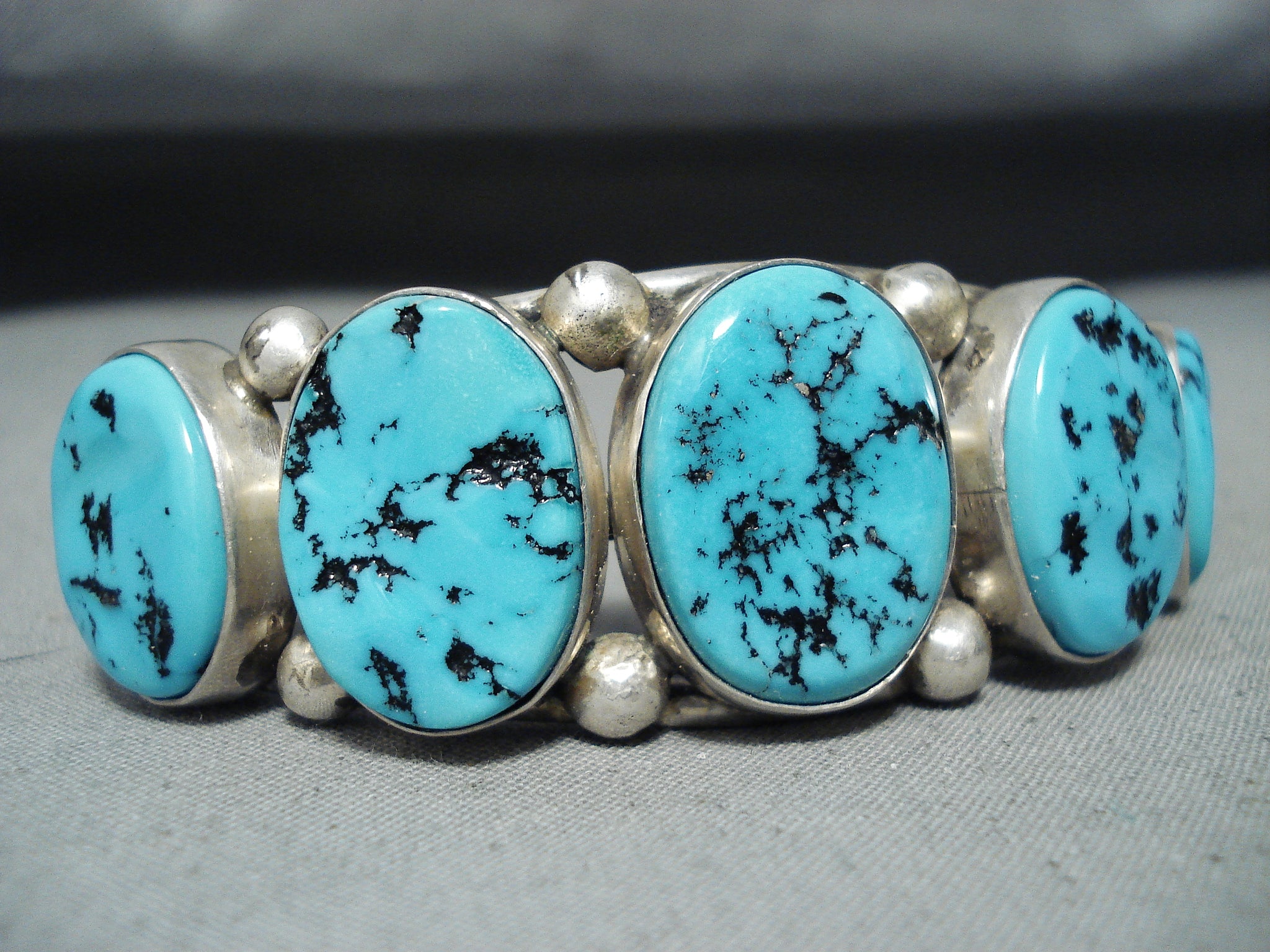 Magnificent Vintage Native American Hopi Morenci Turquoise Sterling Silver Bracelet Signed