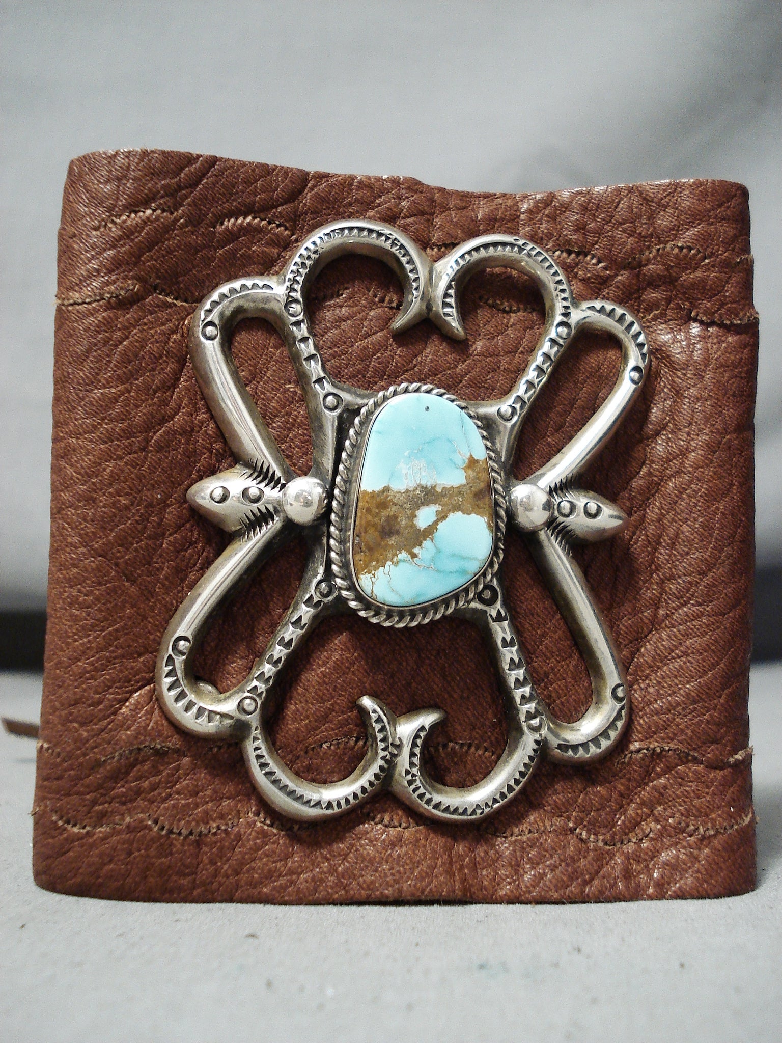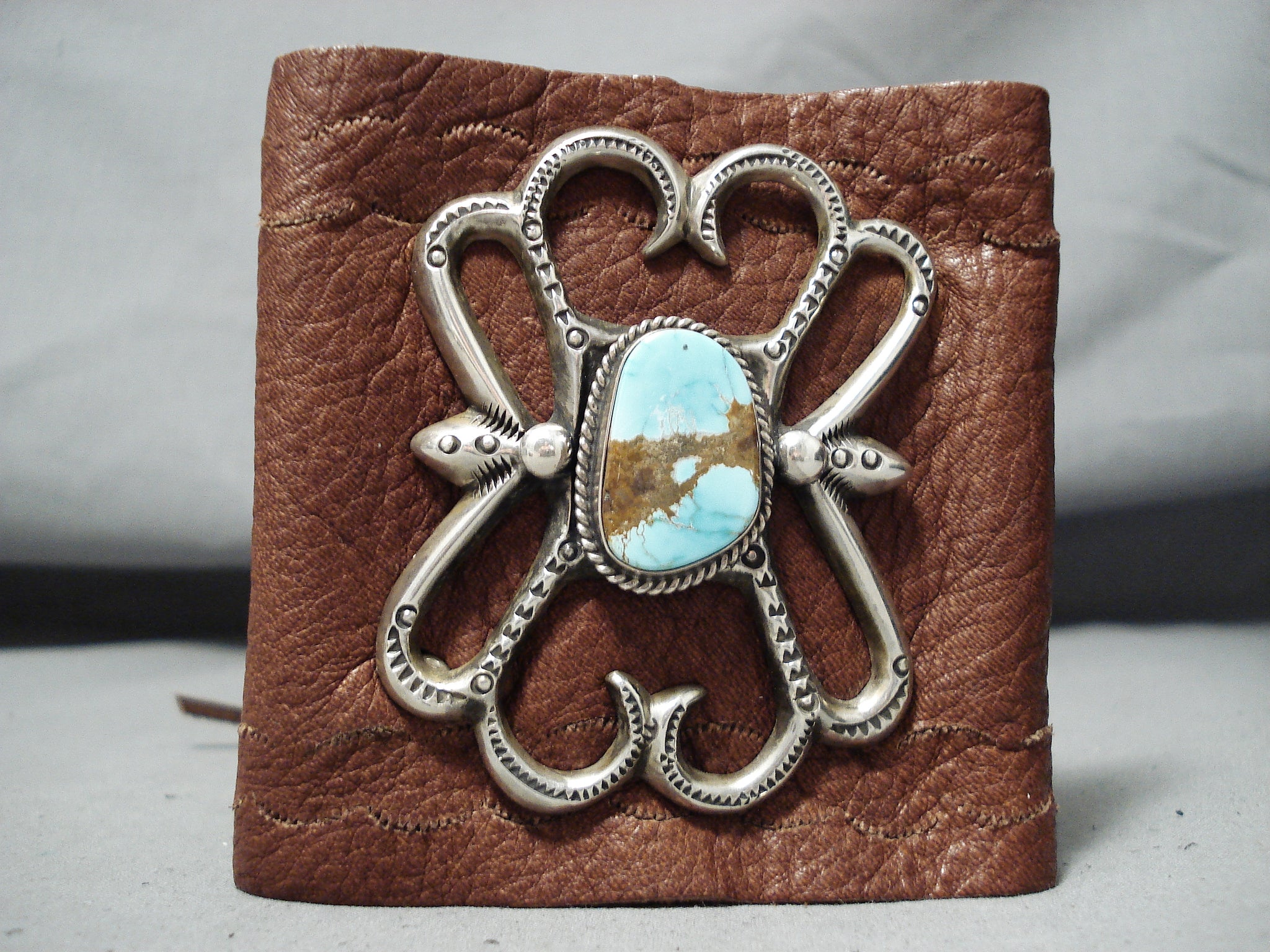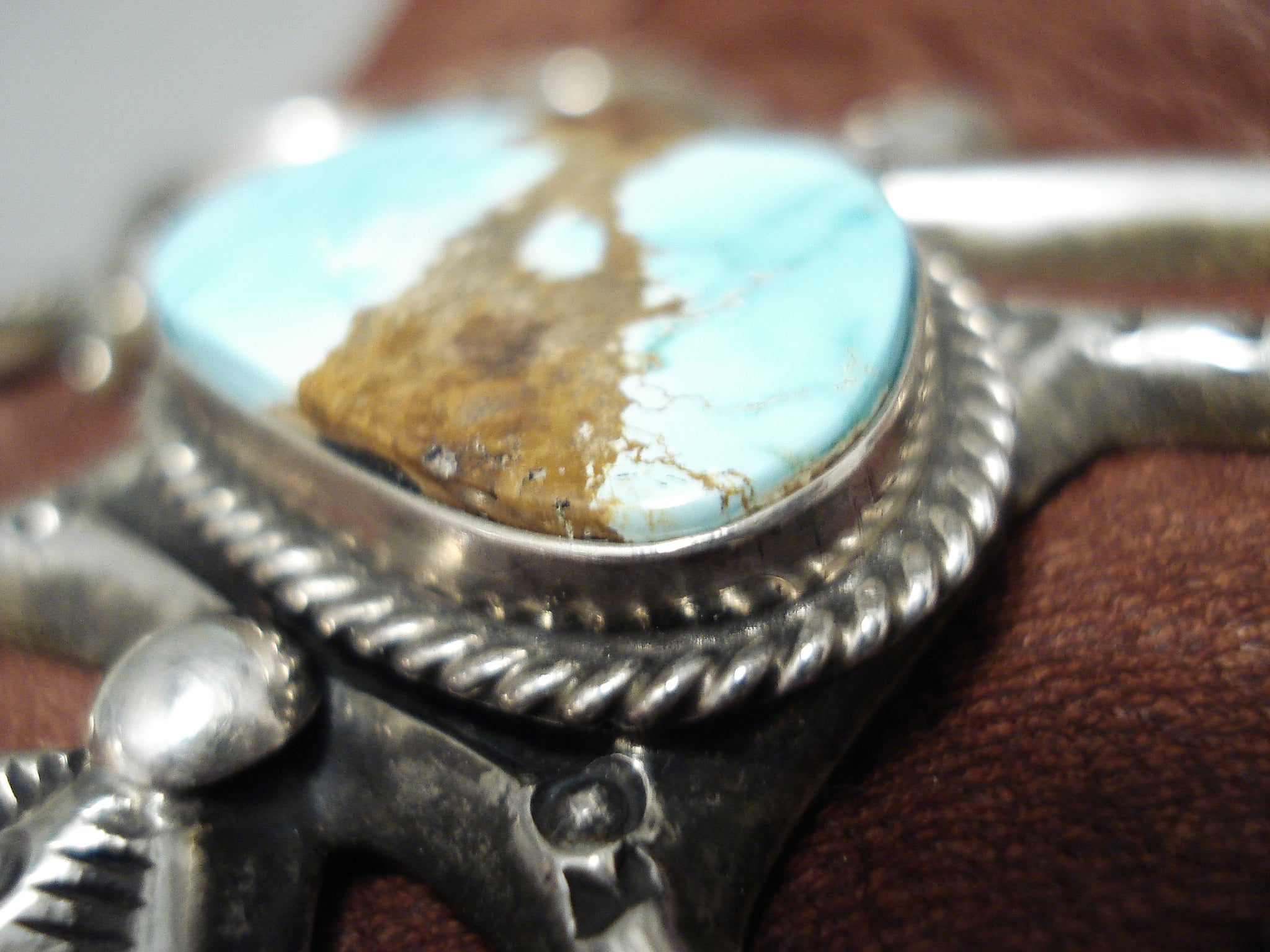 Magnificent Vintage Native American Navajo #8 Turquoise Mine Sterling Silver Bowguard