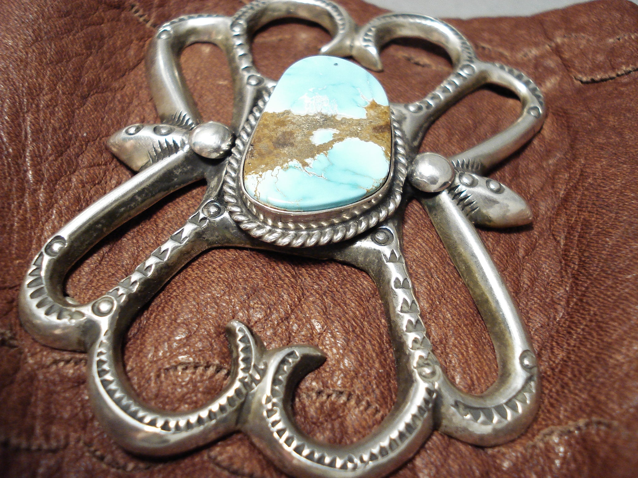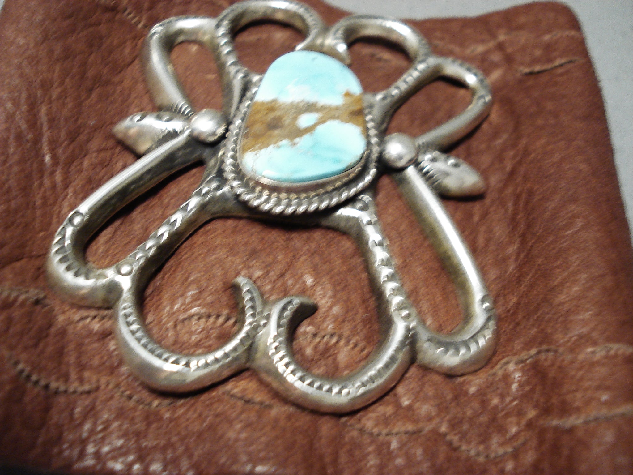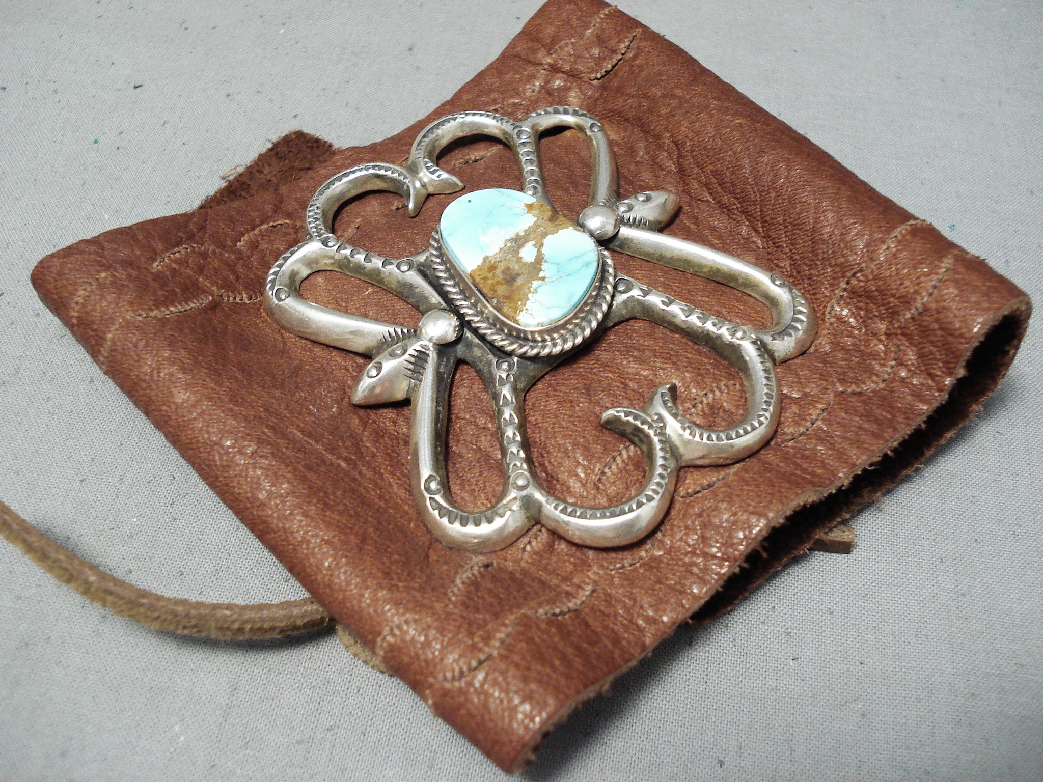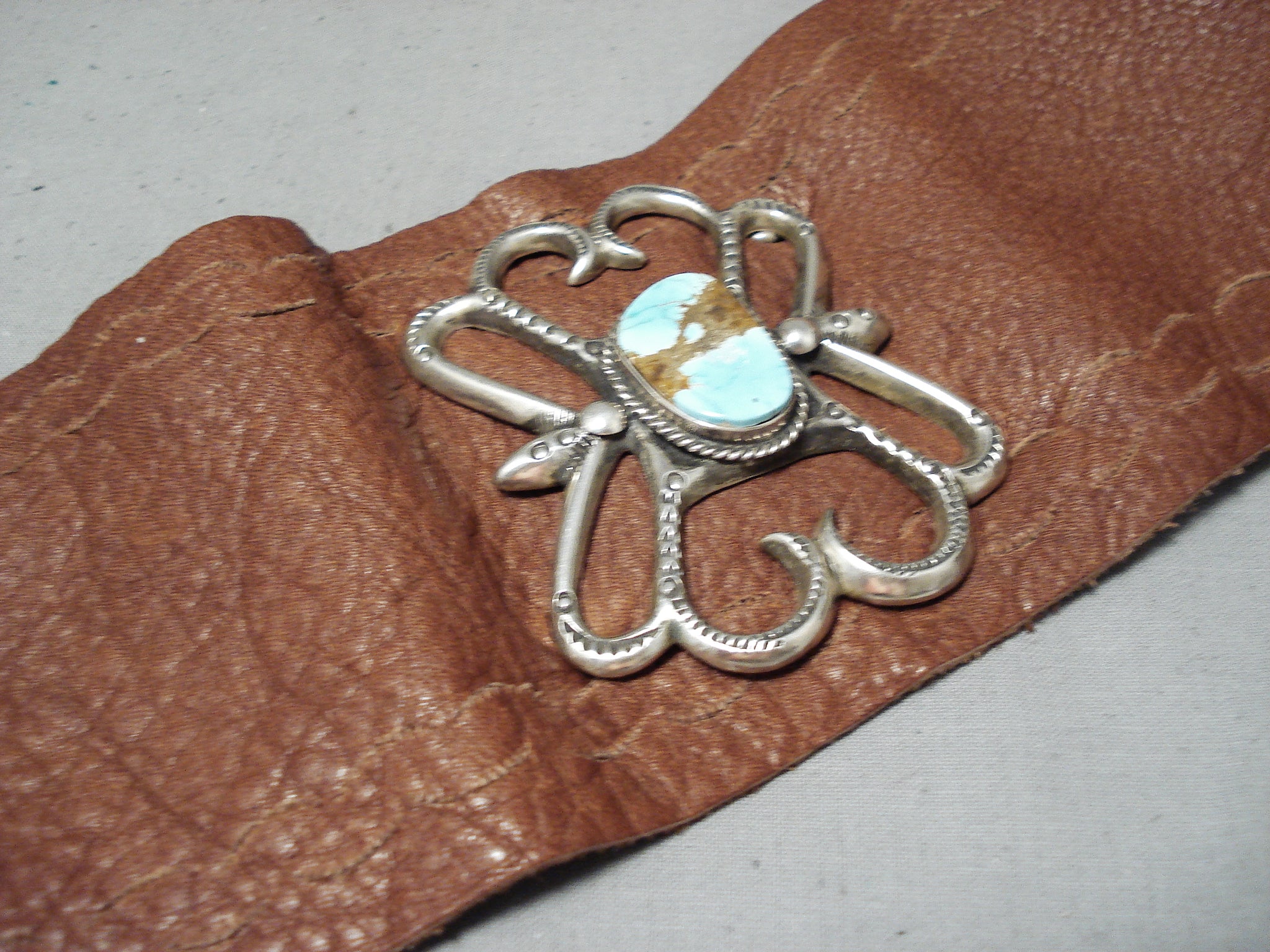 Magnificent Vintage Native American Navajo #8 Turquoise Mine Sterling Silver Bowguard