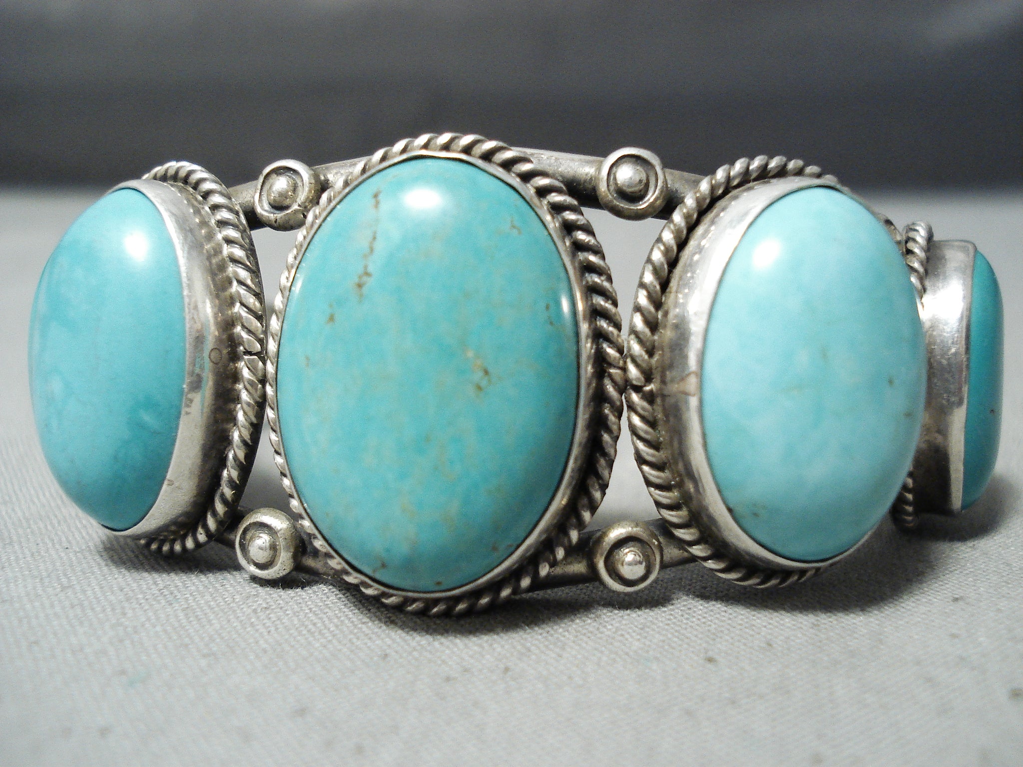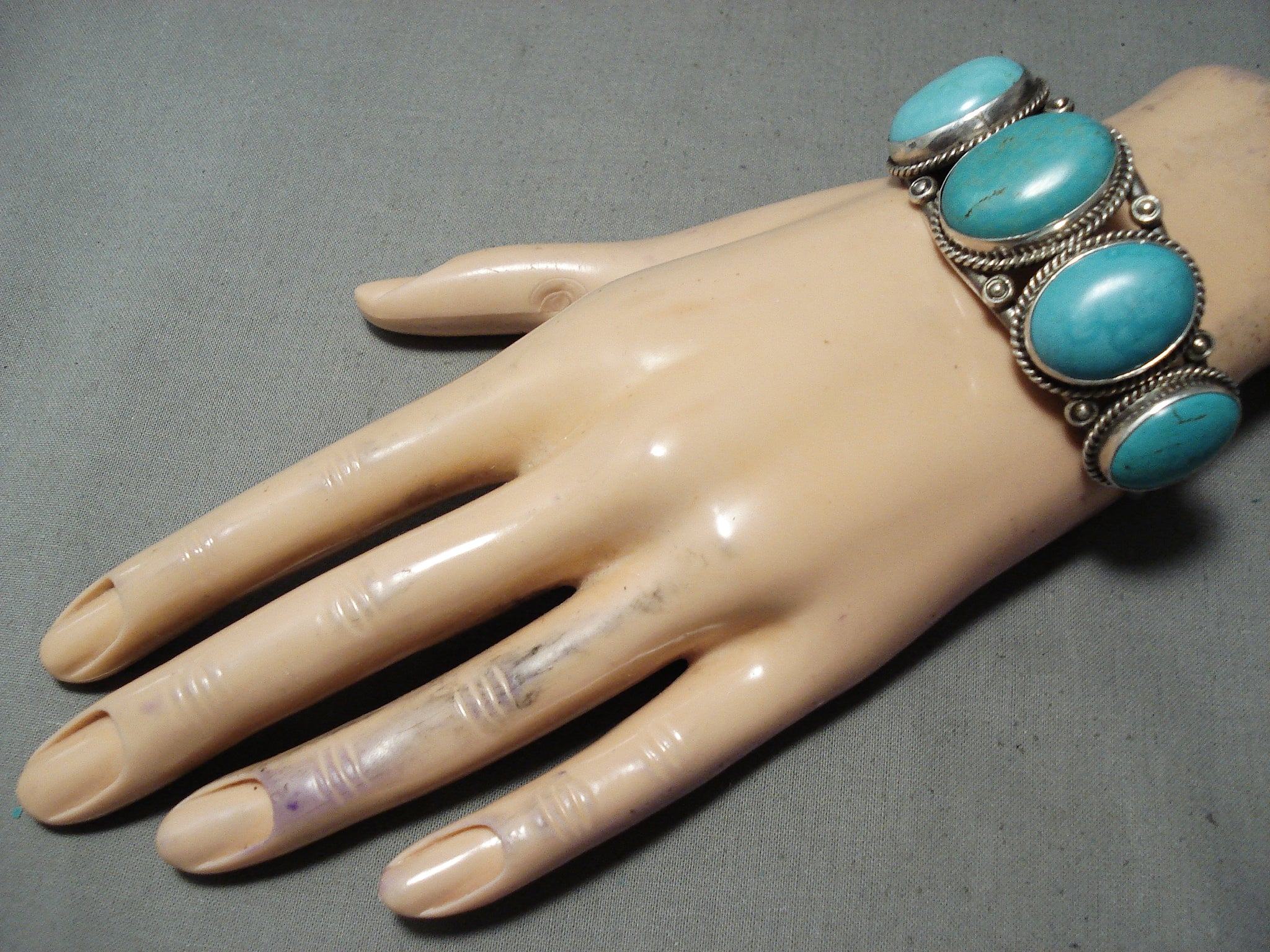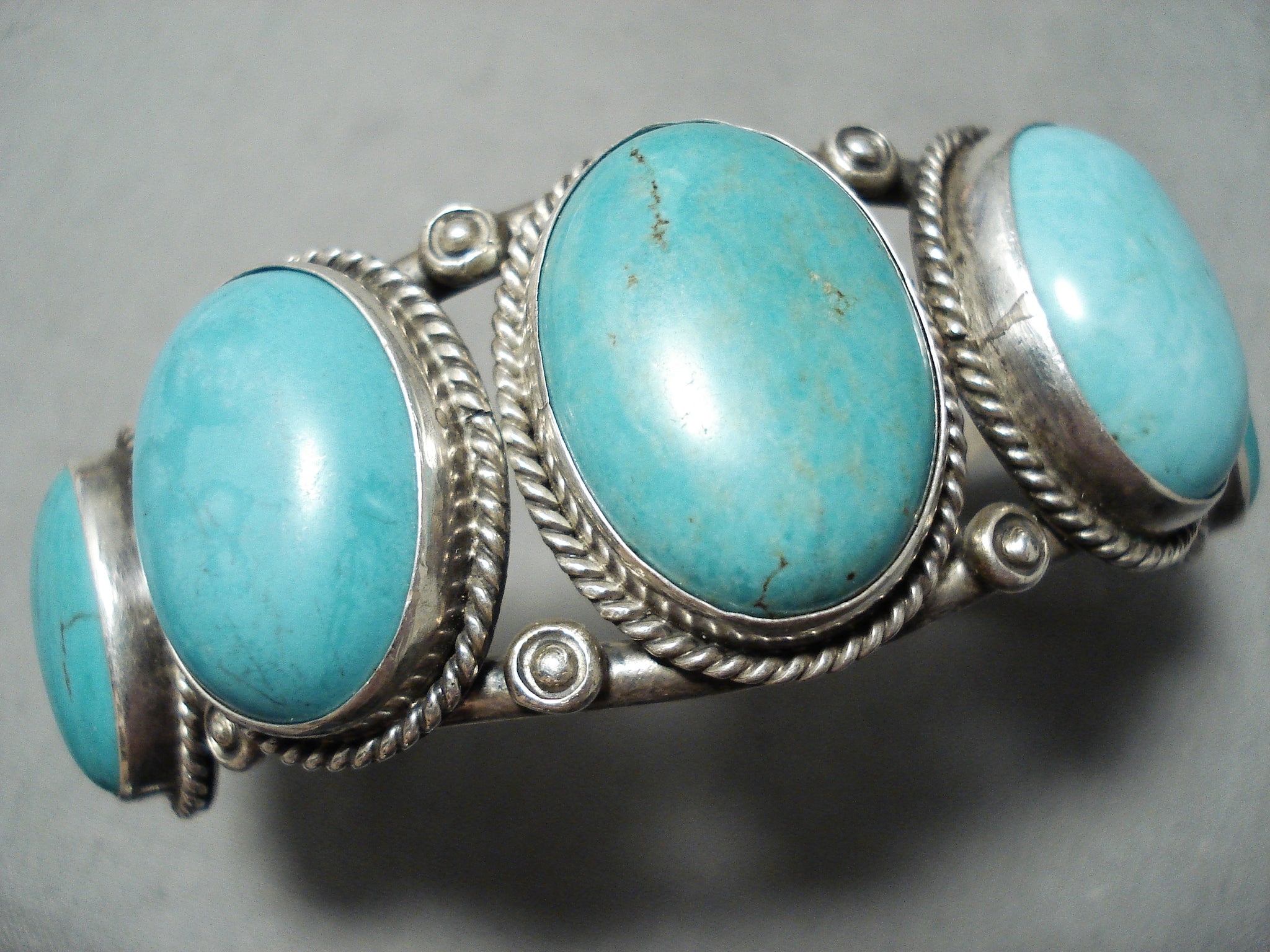 Magnificent Vintage Native American Navajo Blue Gem Turquoise Sterling Silver Bracelet