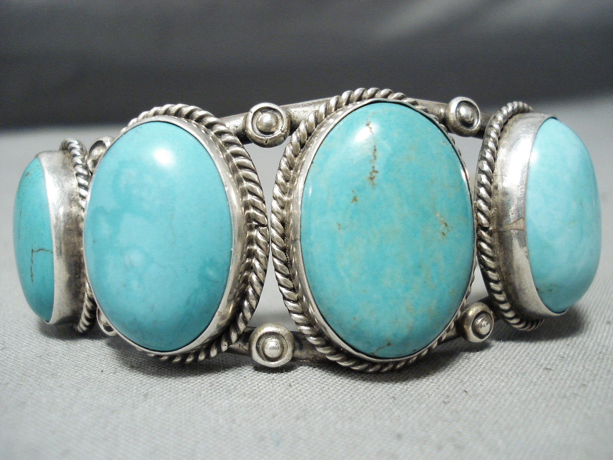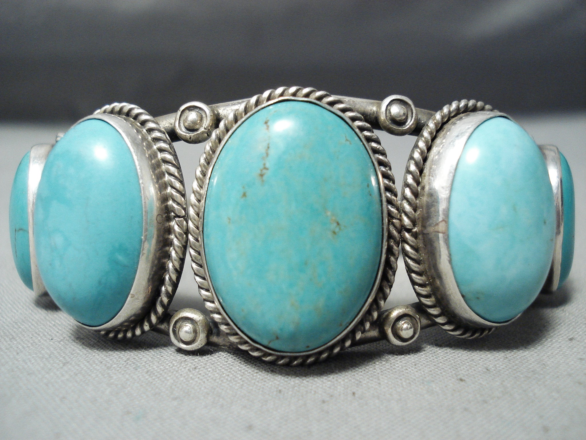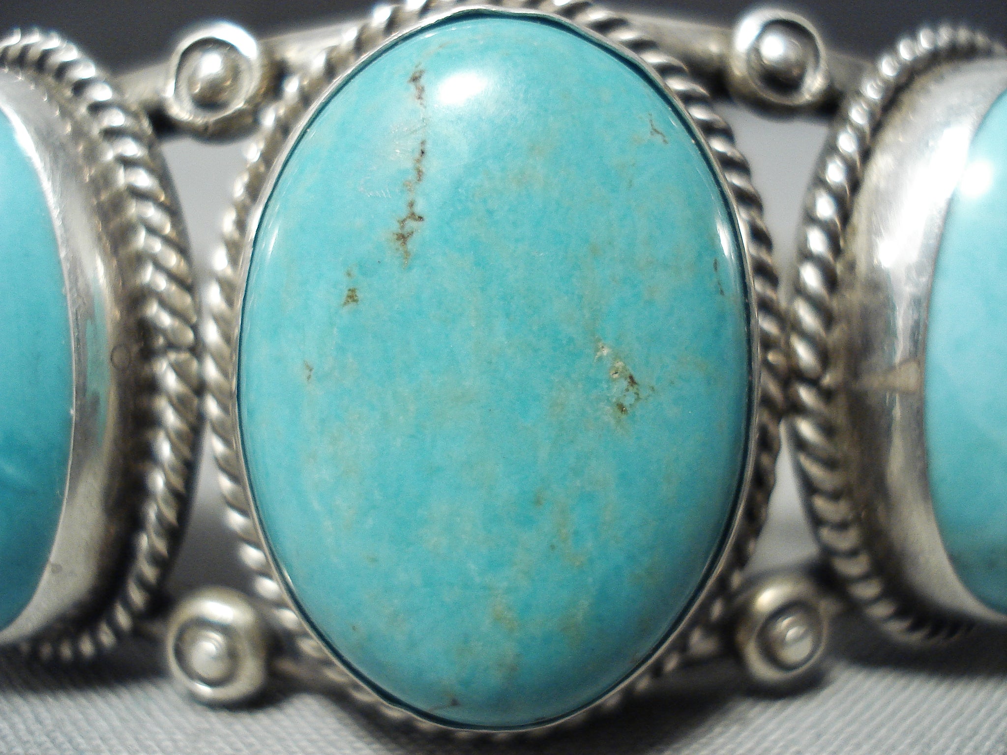 Magnificent Vintage Native American Navajo Blue Gem Turquoise Sterling Silver Bracelet