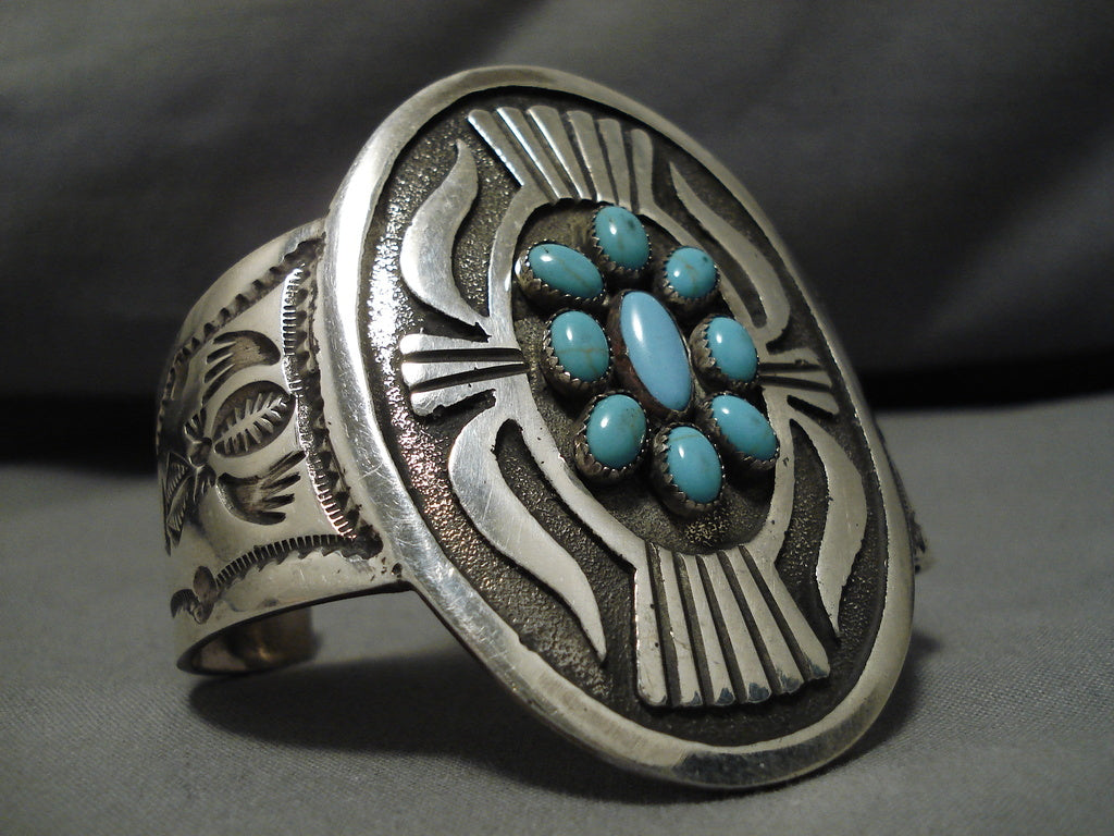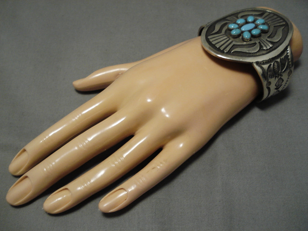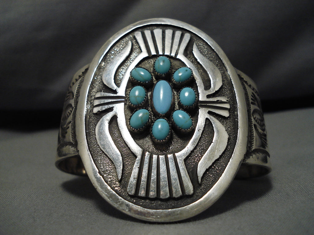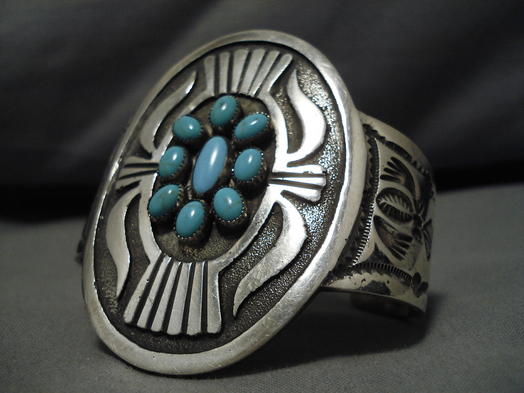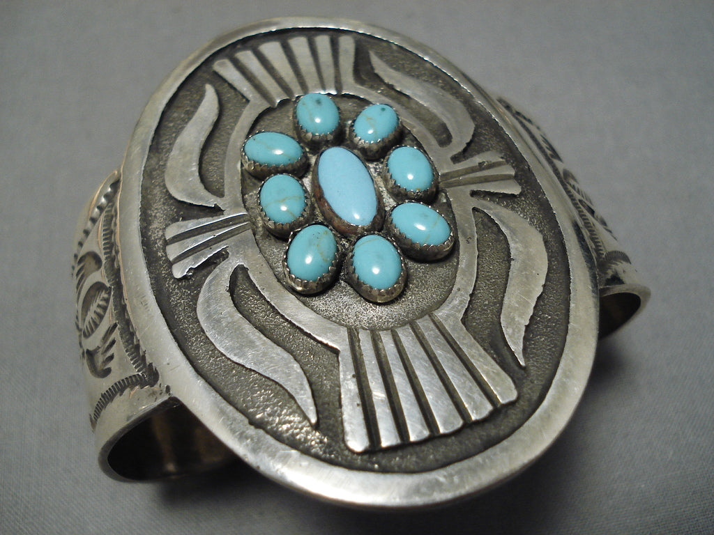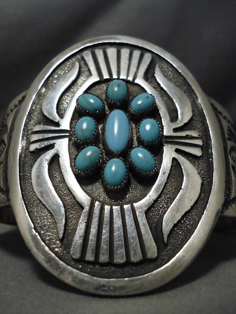 Magnificent Vintage Native American Navajo Mabe Kee Turquoise Sterling Silver Bracelet Cuff Old