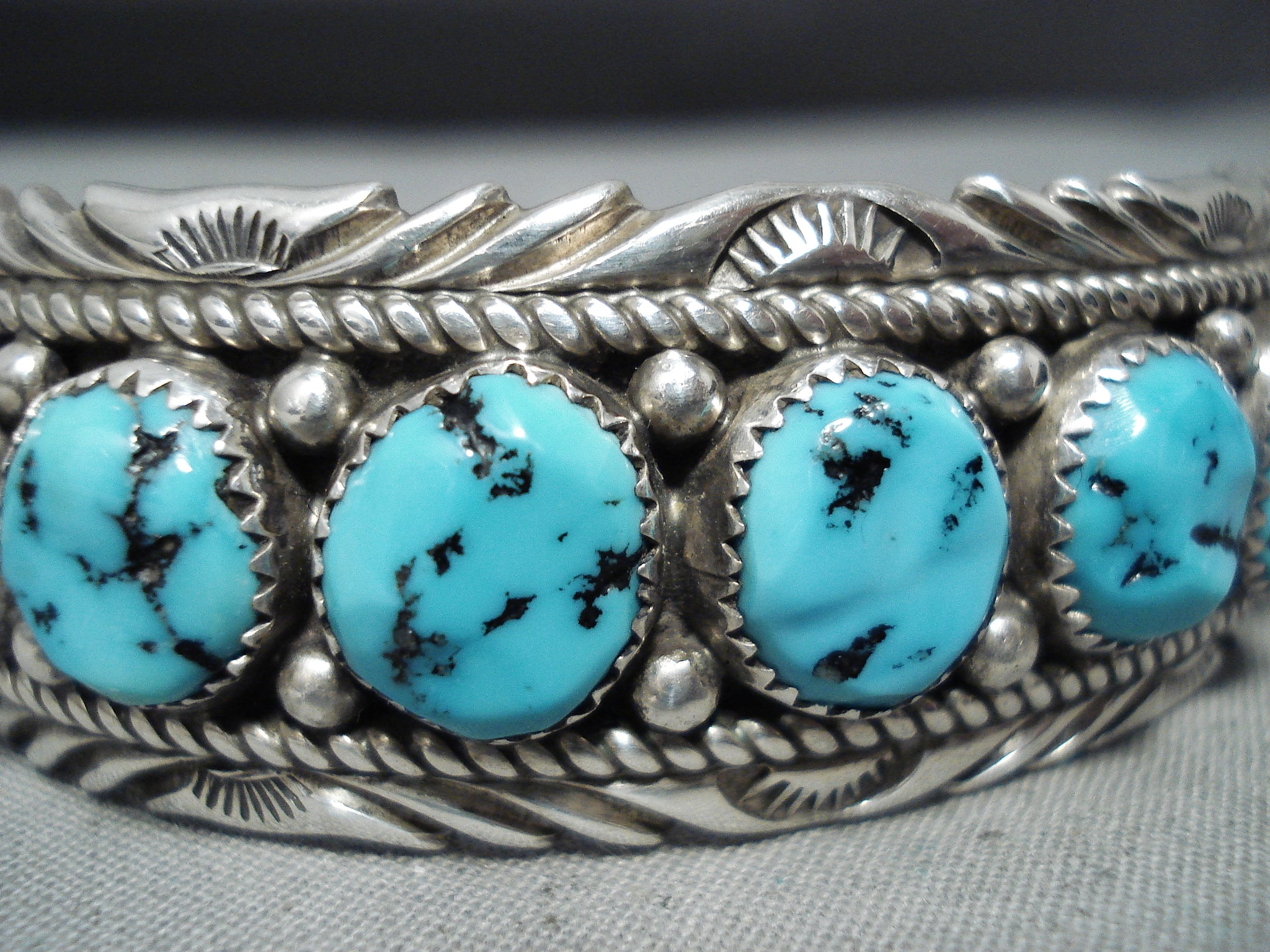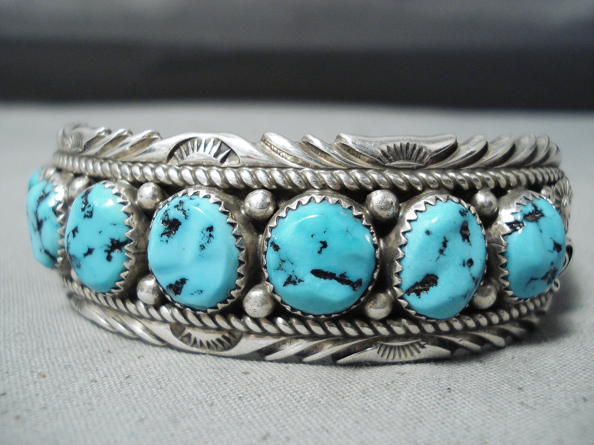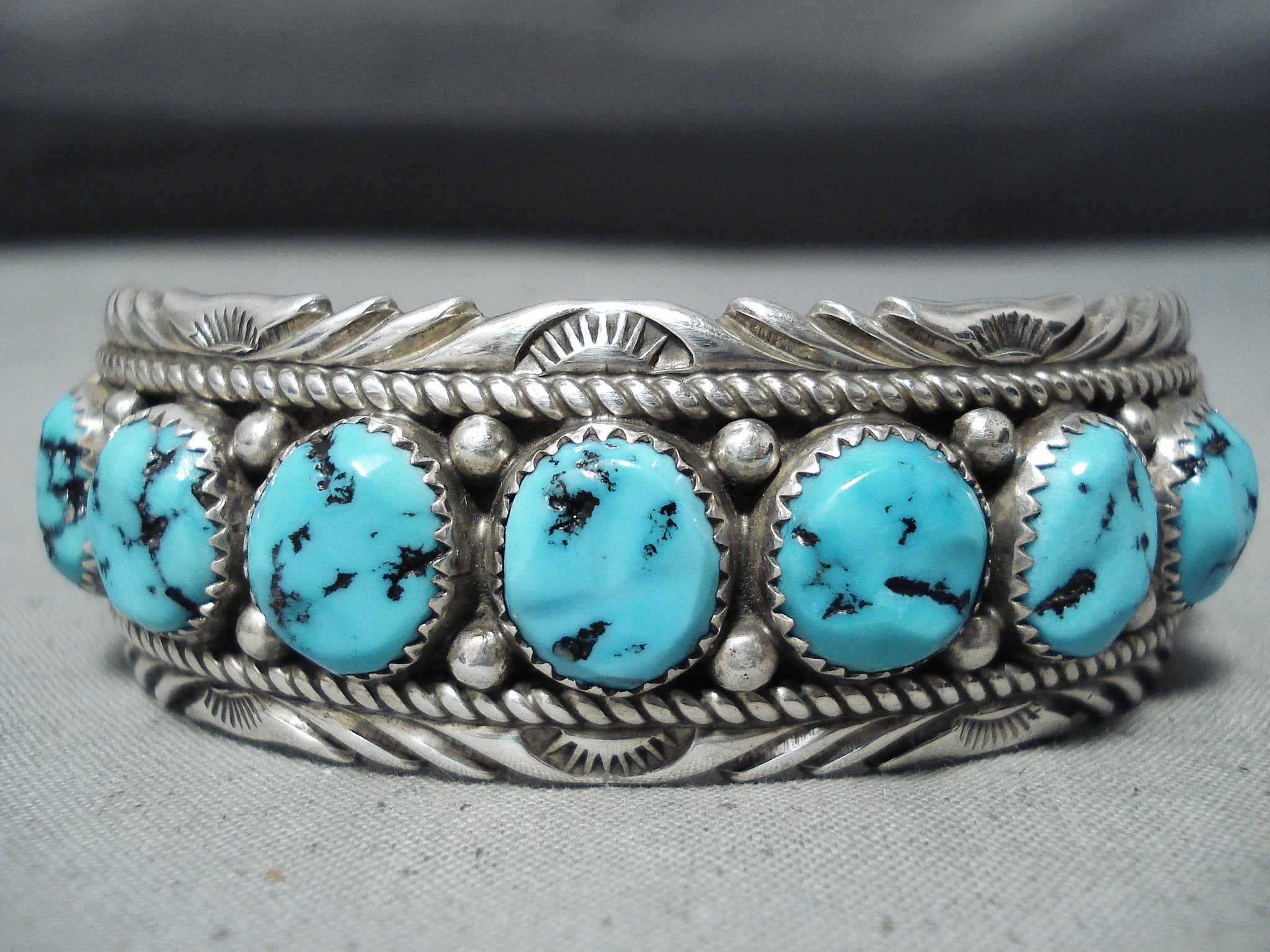 Marie Thompson Vintage Native American Navajo 7 Kingman Turquoise Sterling Silver Bracelet Old