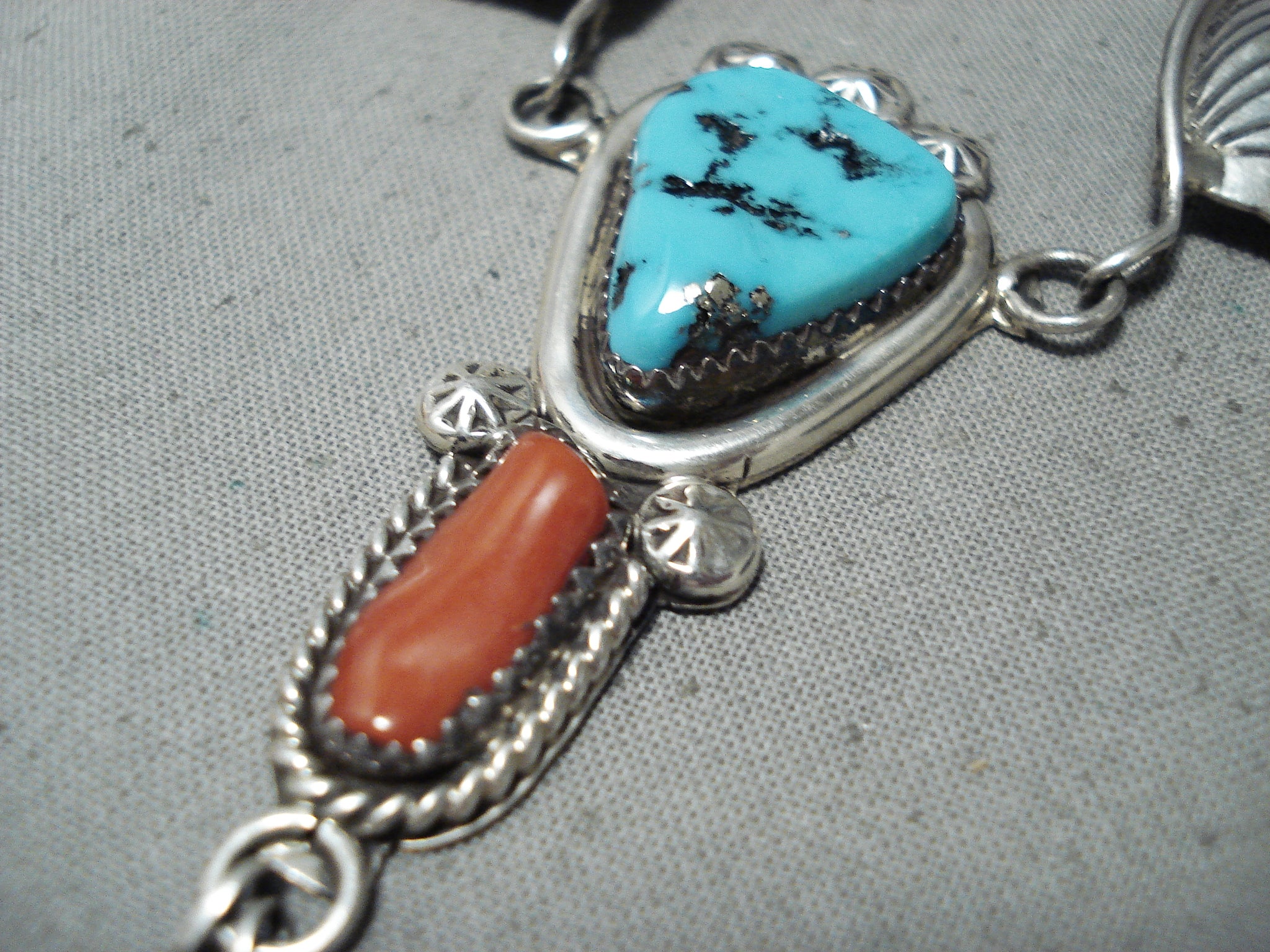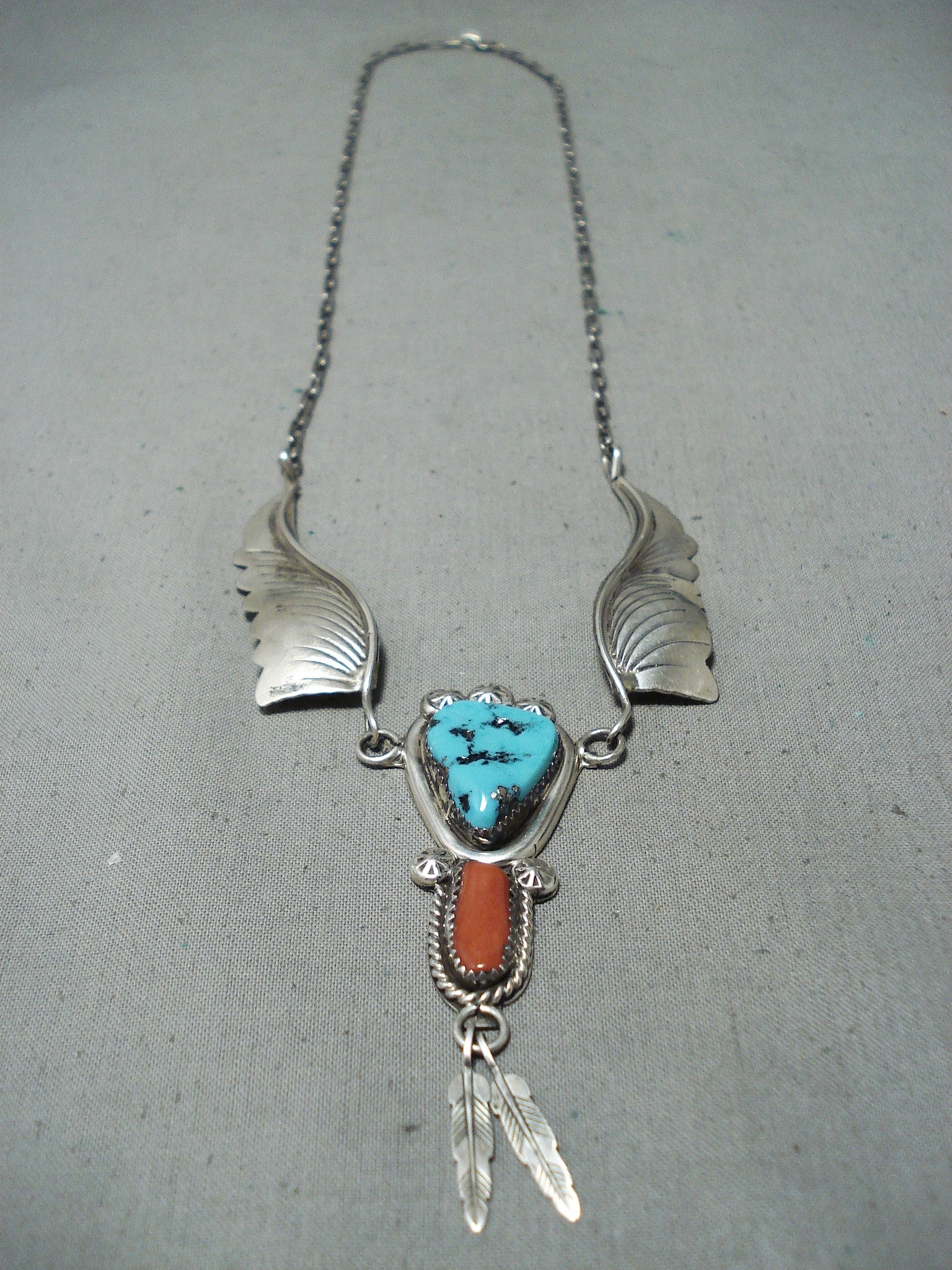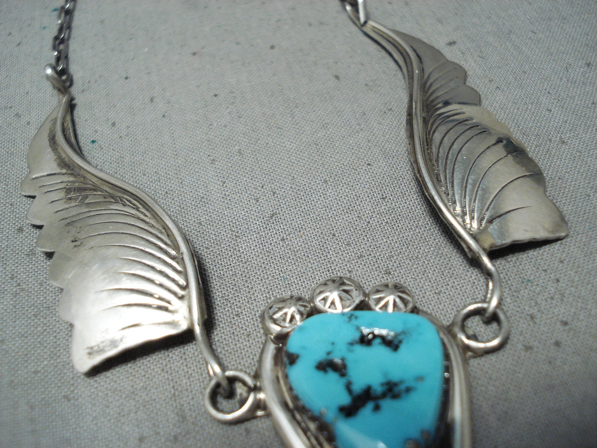 Marie Thompson Vintage Native American Navajo Sleeping Beauty Turquoise Sterling Silver Necklace
