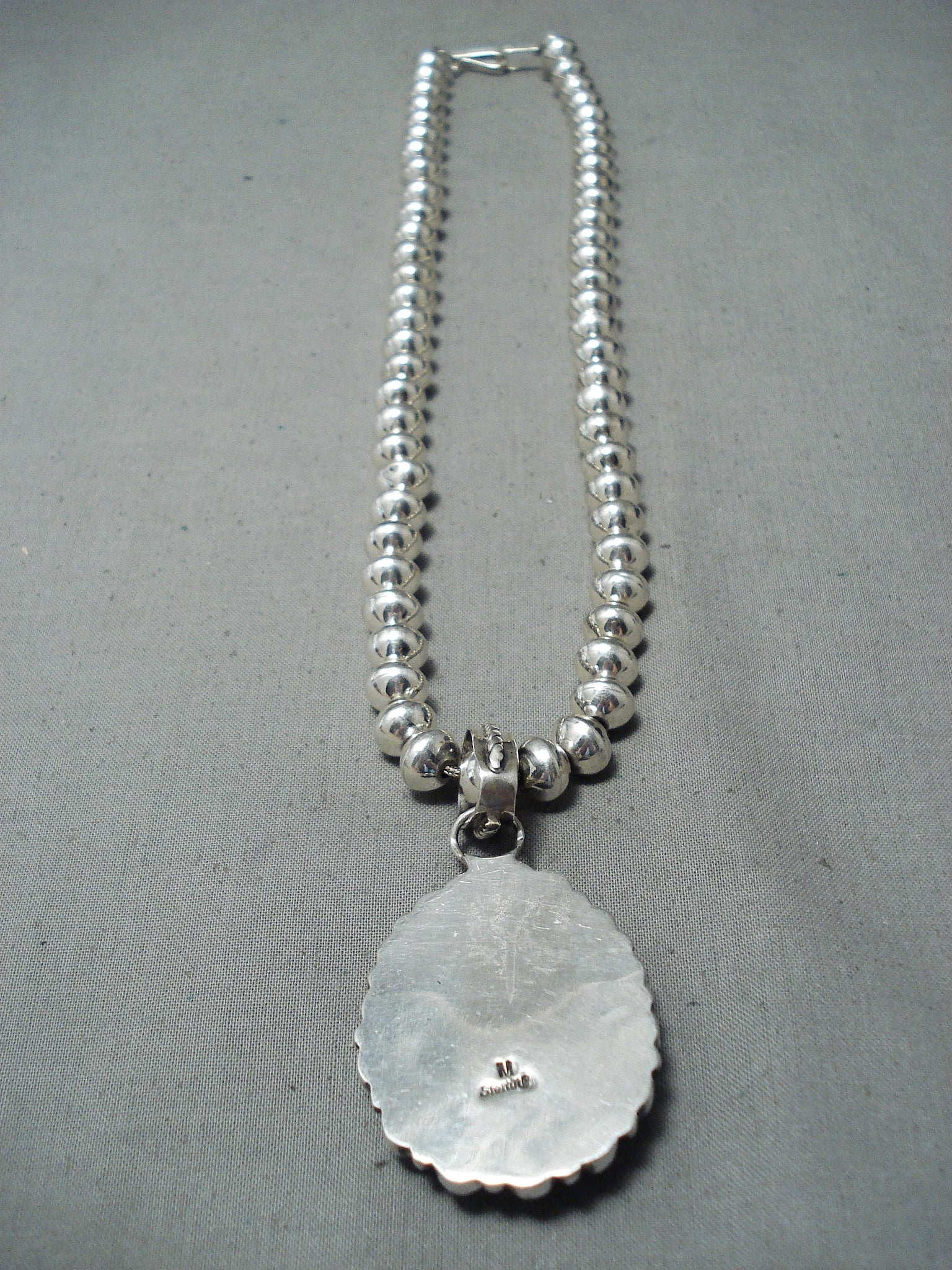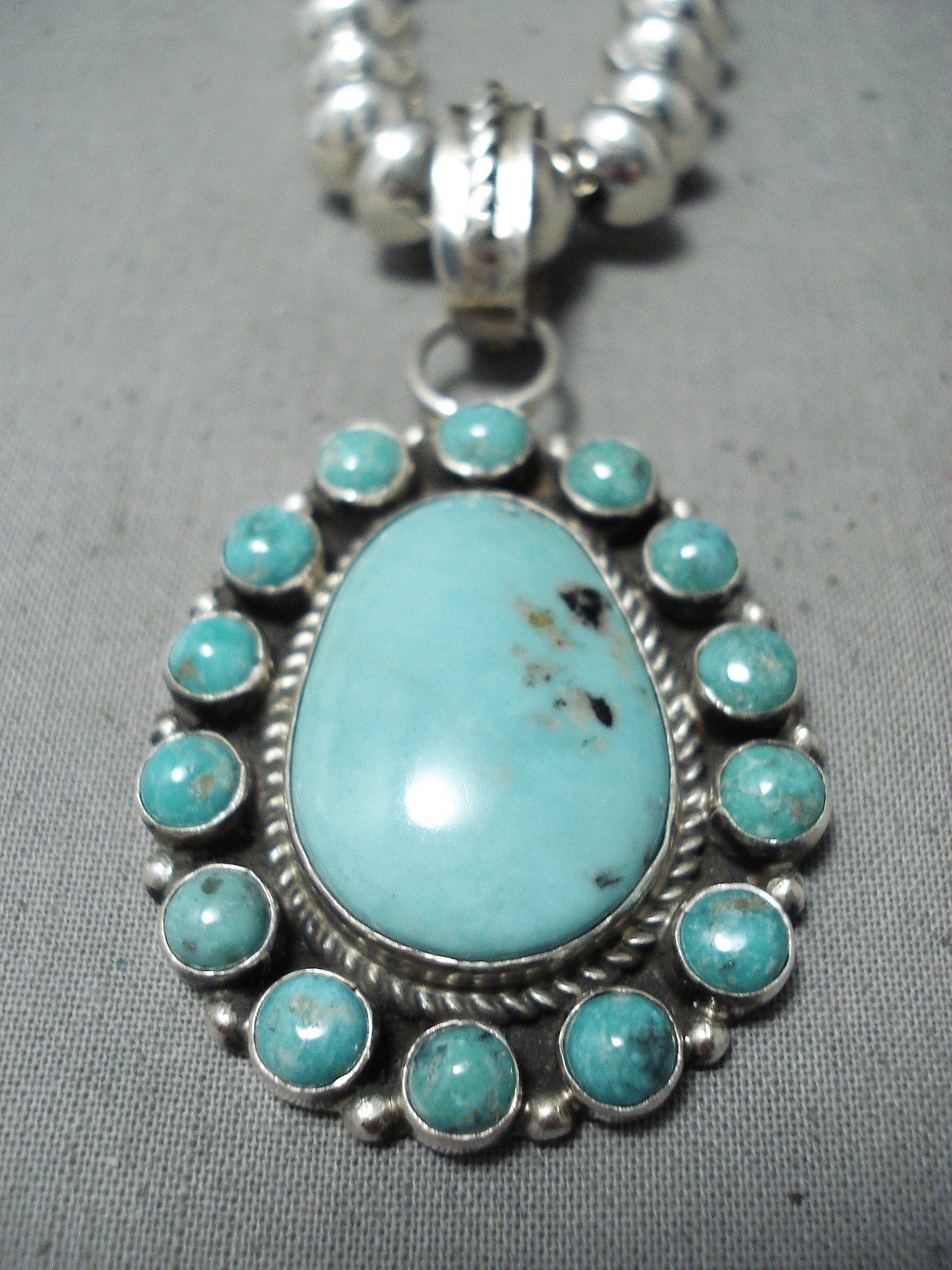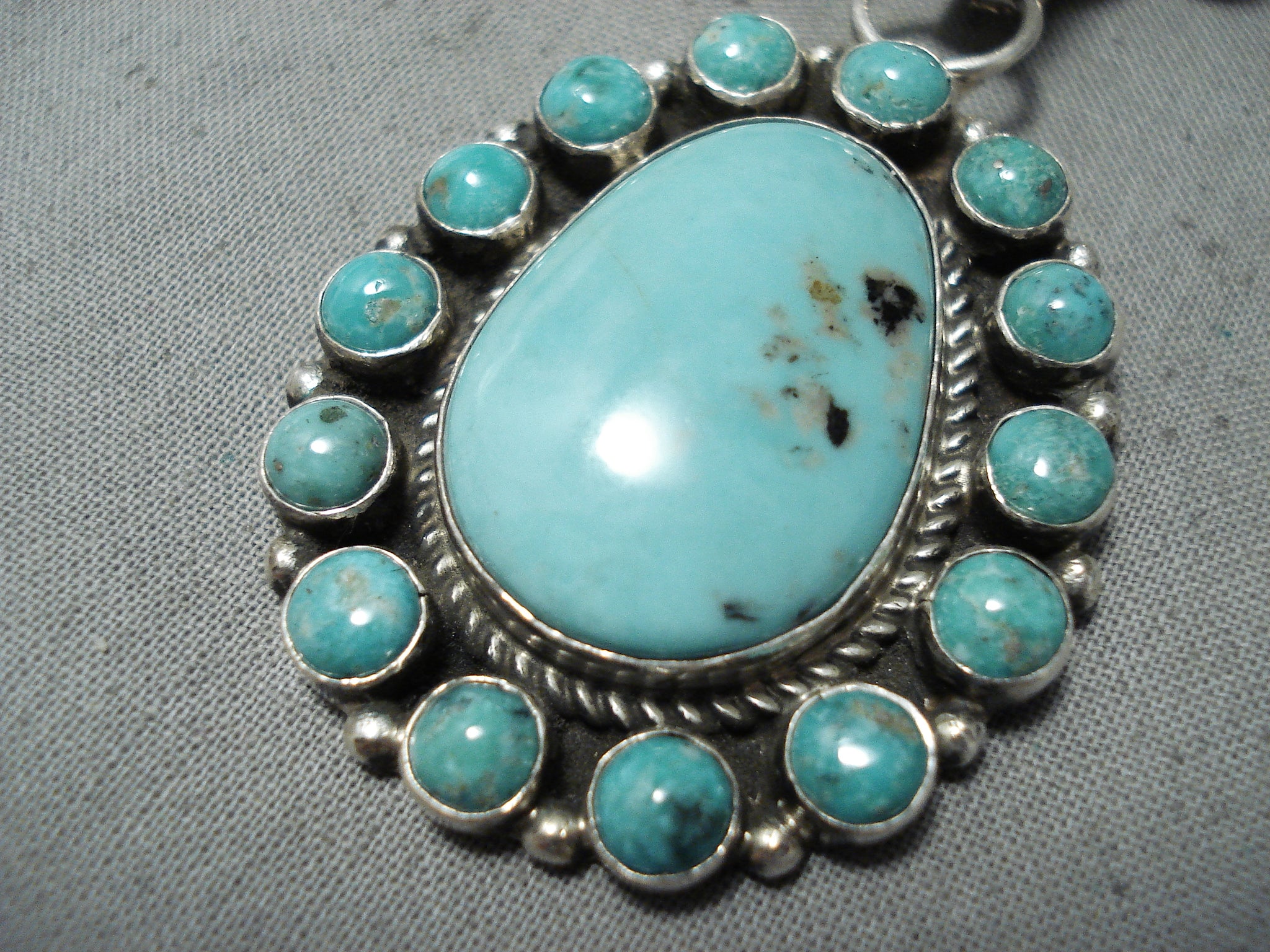 Marie Thompson Vintage Native American Navajo Turquoise Cluster Sterling Silver Necklace