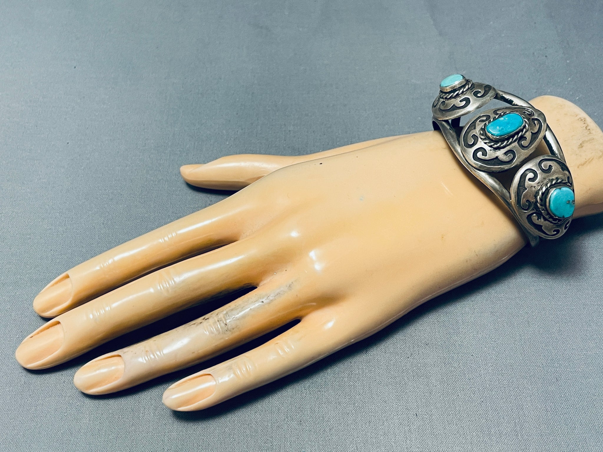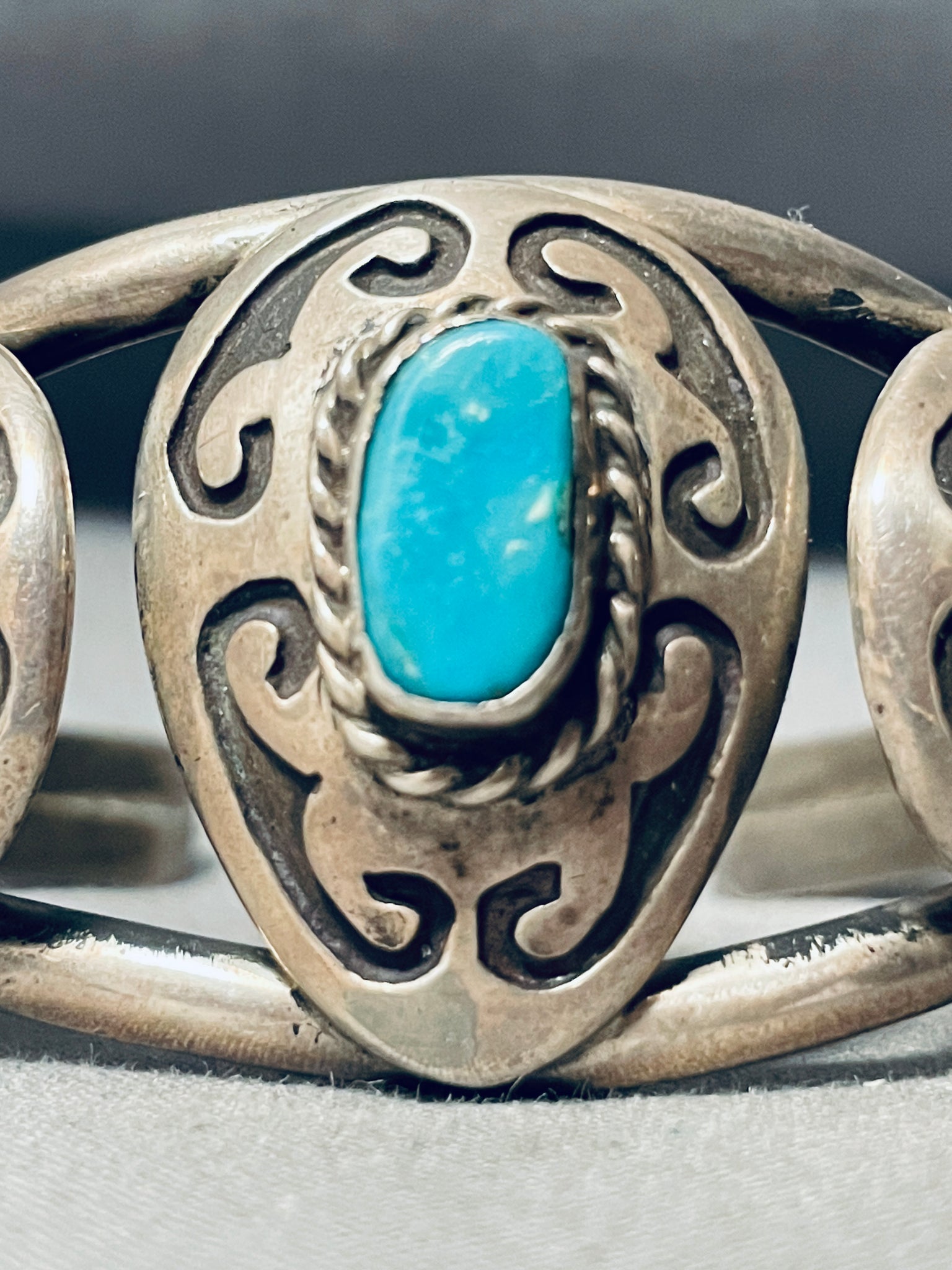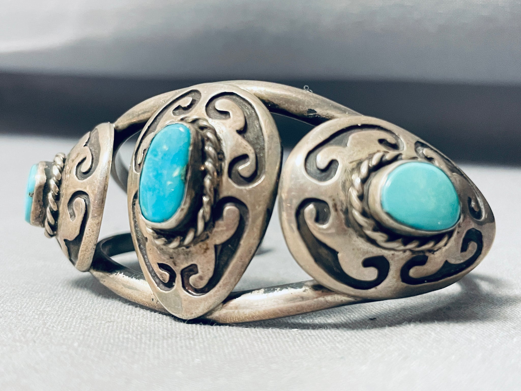 Martha Signed Vintage Native American Navajo Geomtric Sterling Silver Turquoise Bracelet