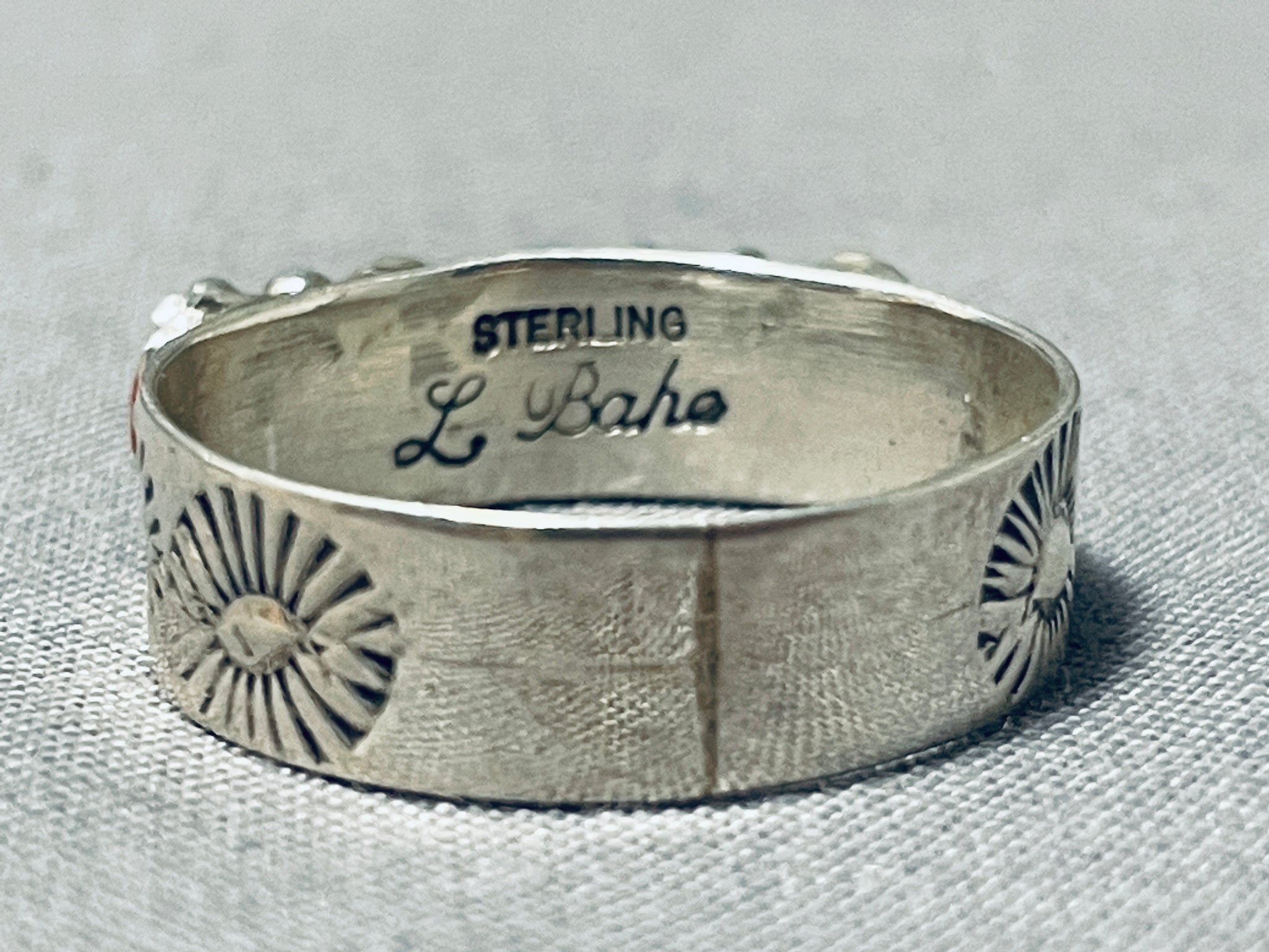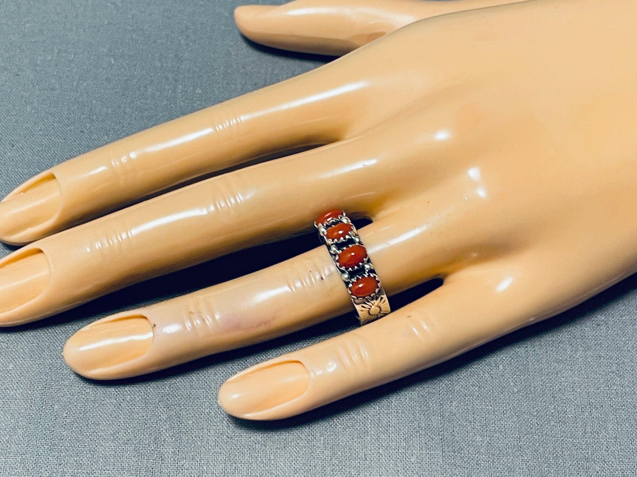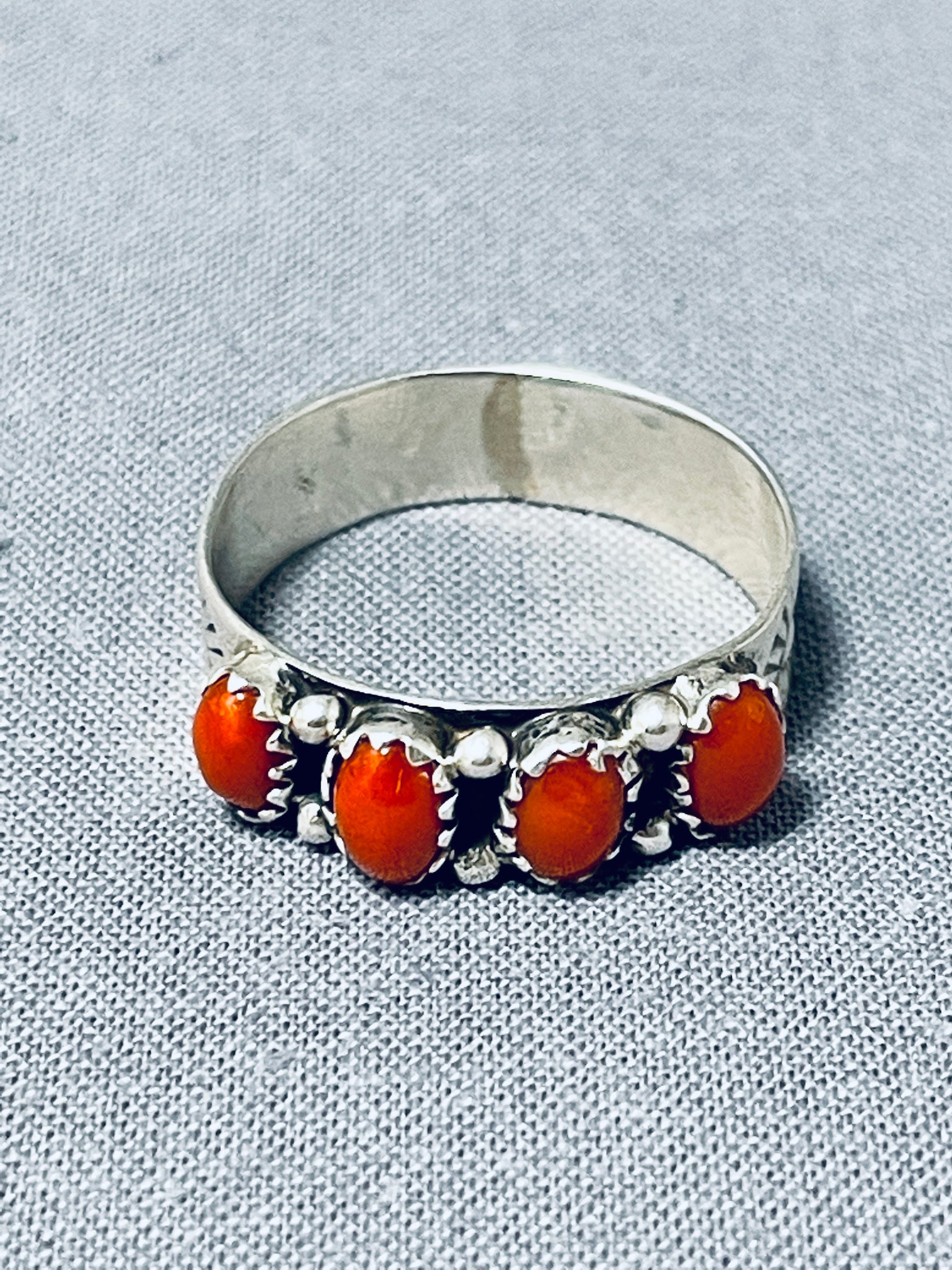 Marvelous Native American Navajo Coral Sterling Silver Ring Signed
