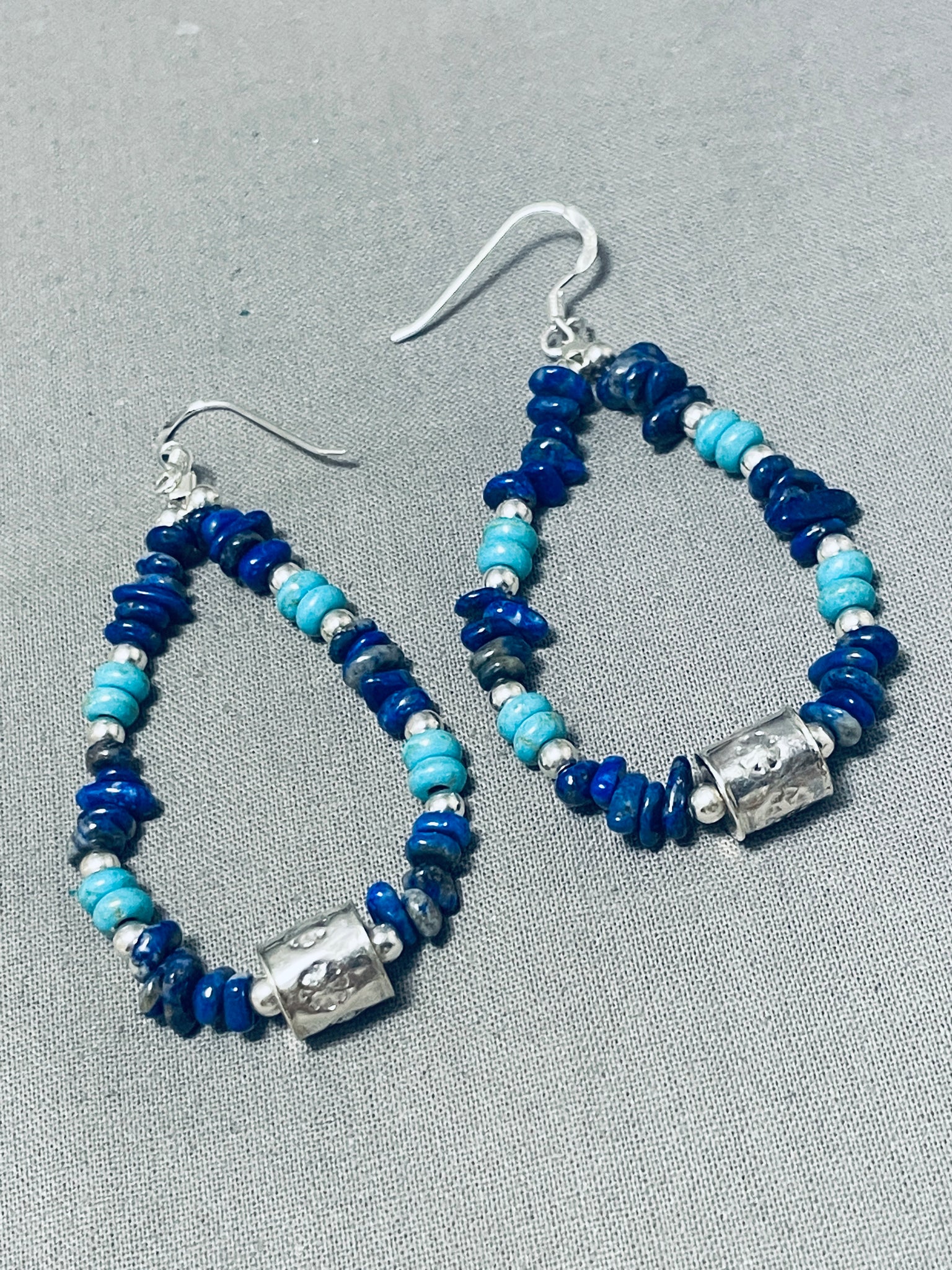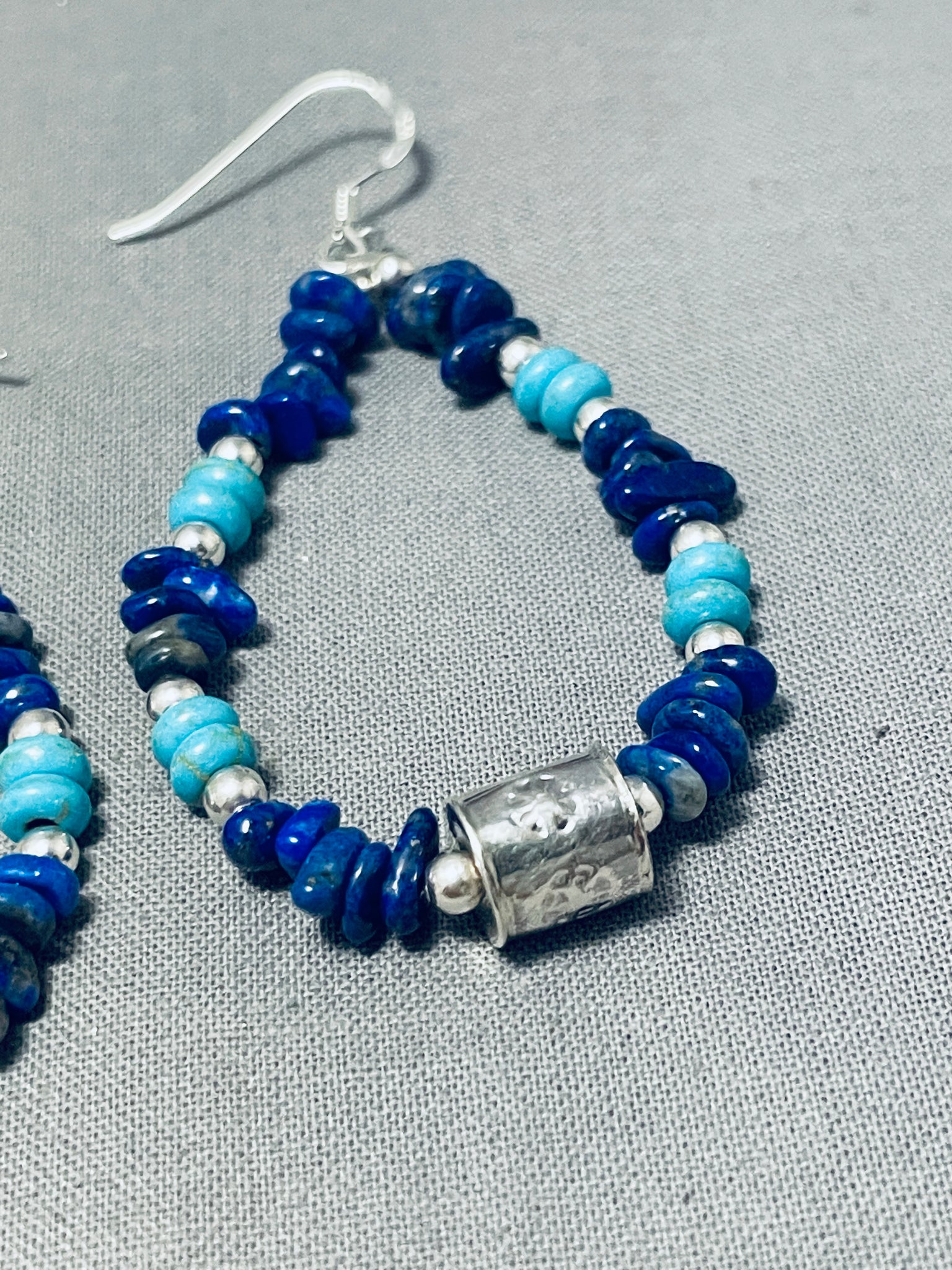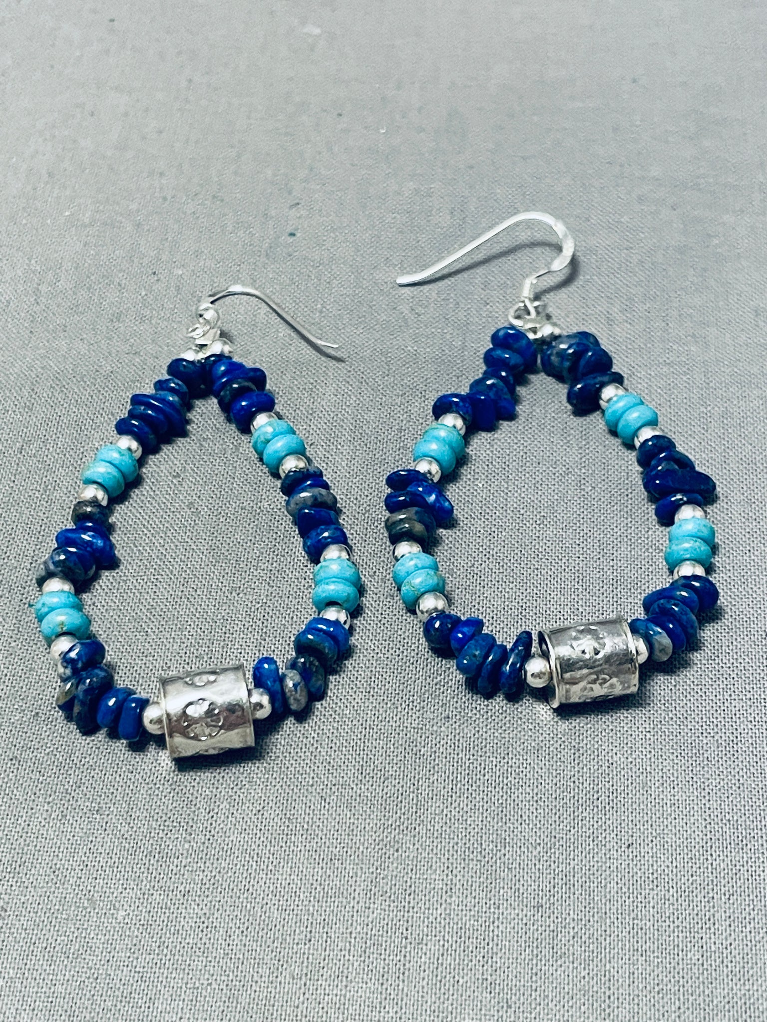 Marvelous Native American Navajo Lapis & Turquoise Sterling Silver Earrings
