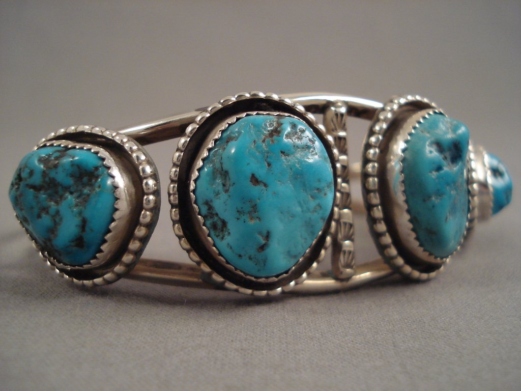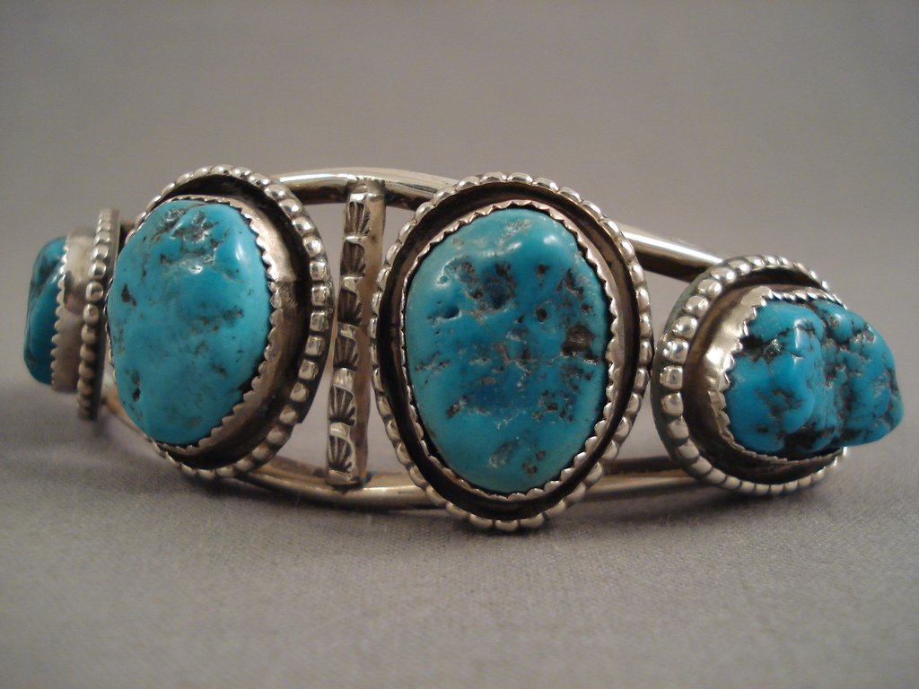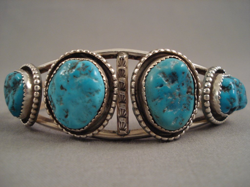 Marvelous Navajo Old Kingman Turquoise Sterling Native American Jewelry Silver Bracelet