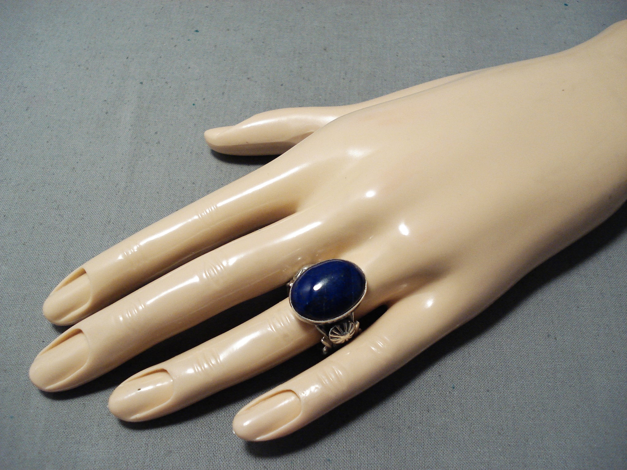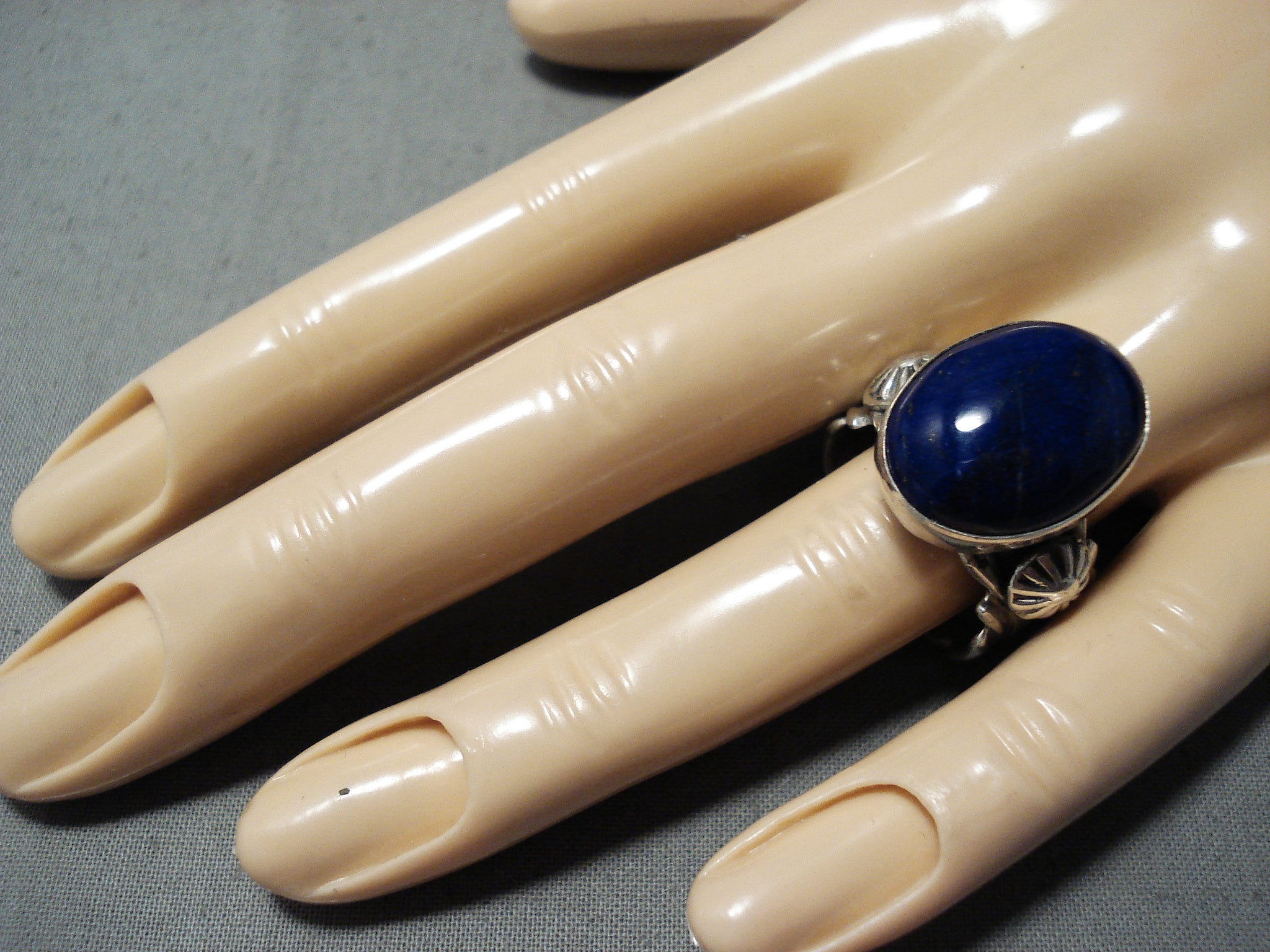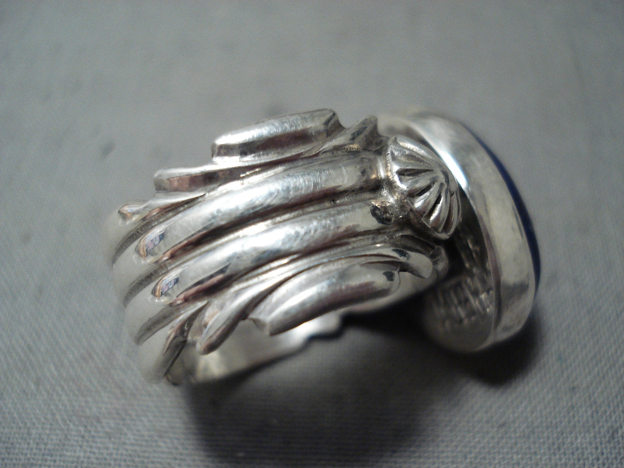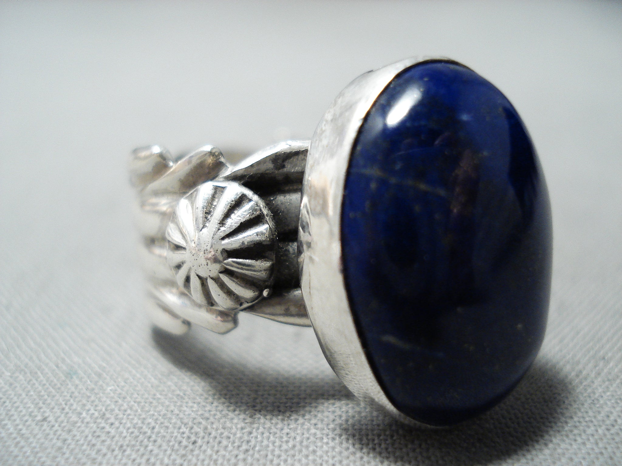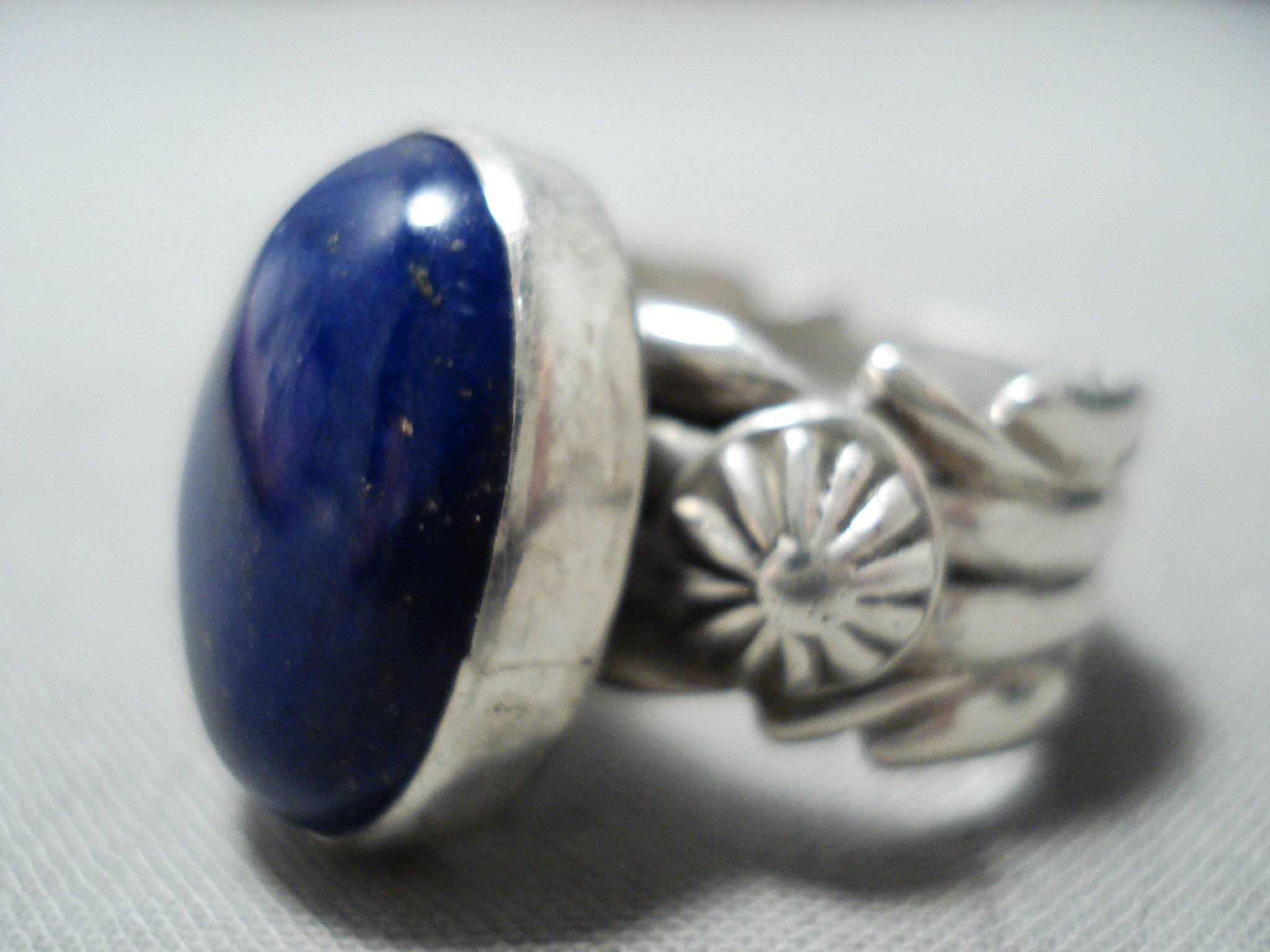 Marvelous Signed Native American Navajo Lapis Sterling Silver Ring