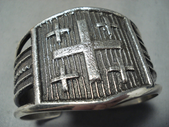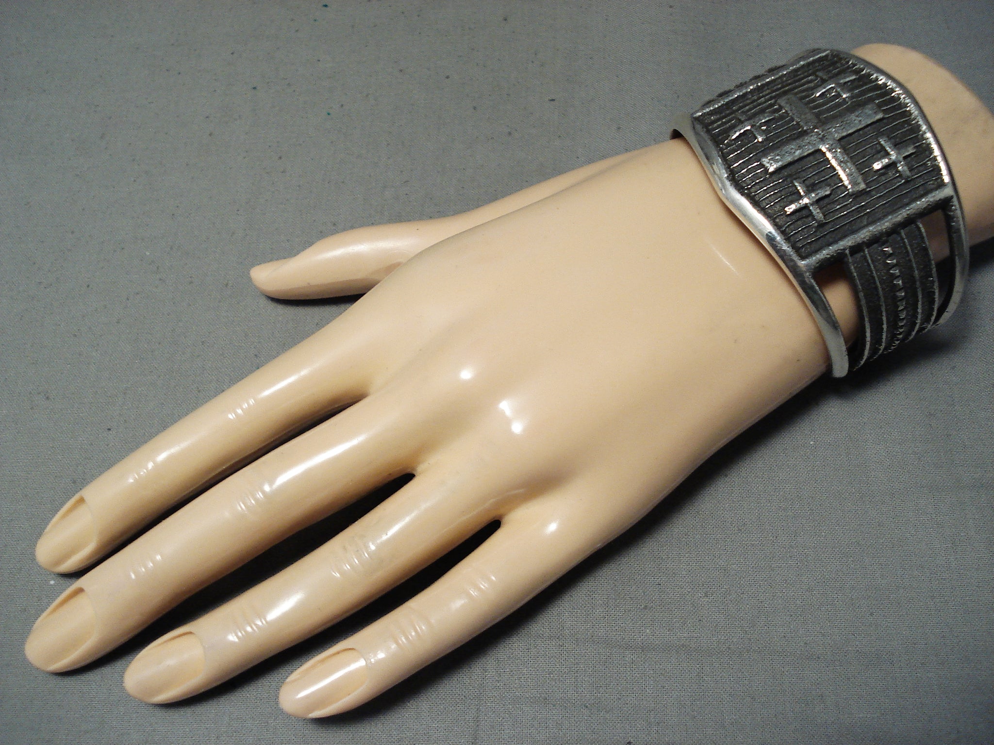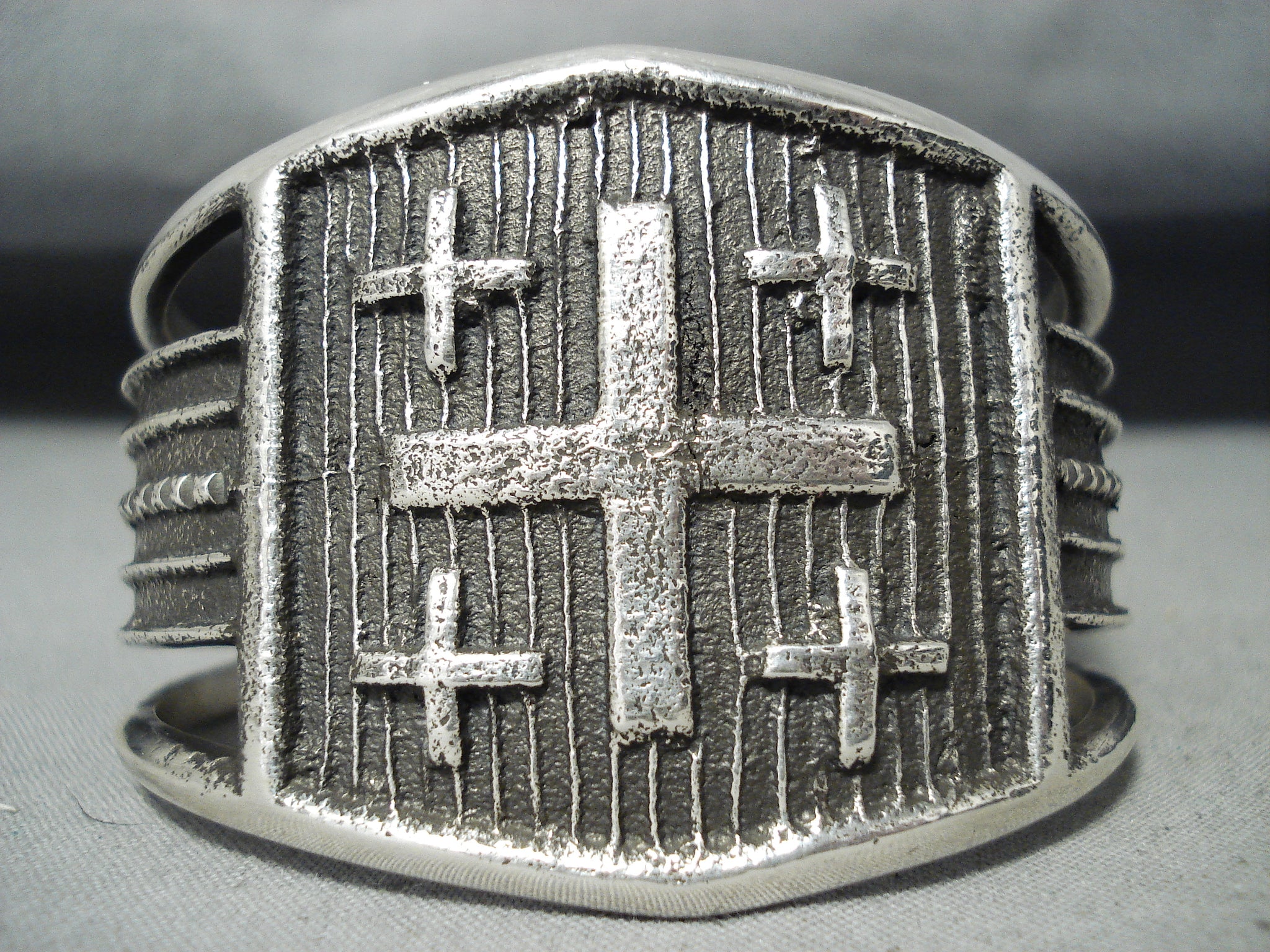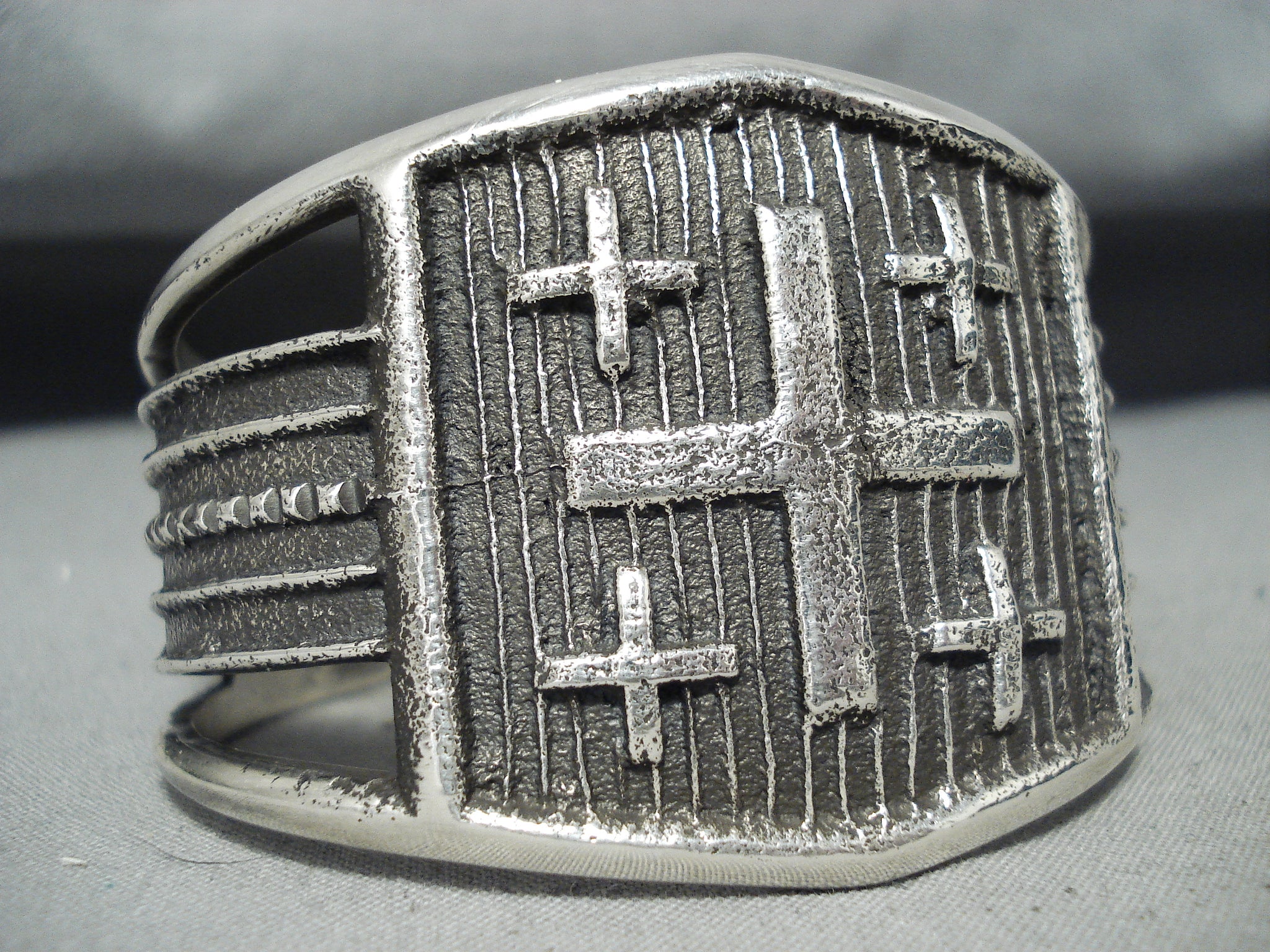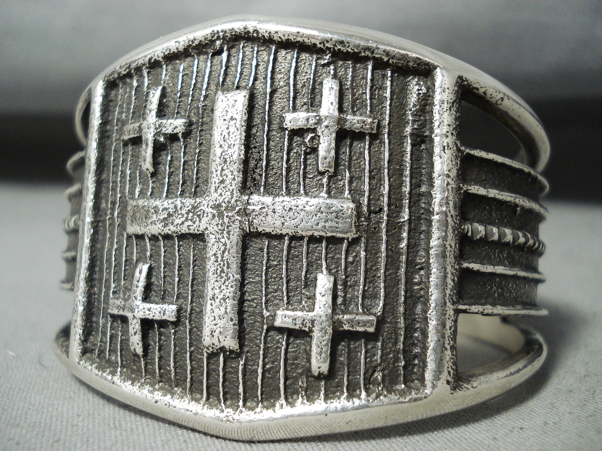 Marvelous Signed Native American Navajo Sterling Silver Crosses Bracelet