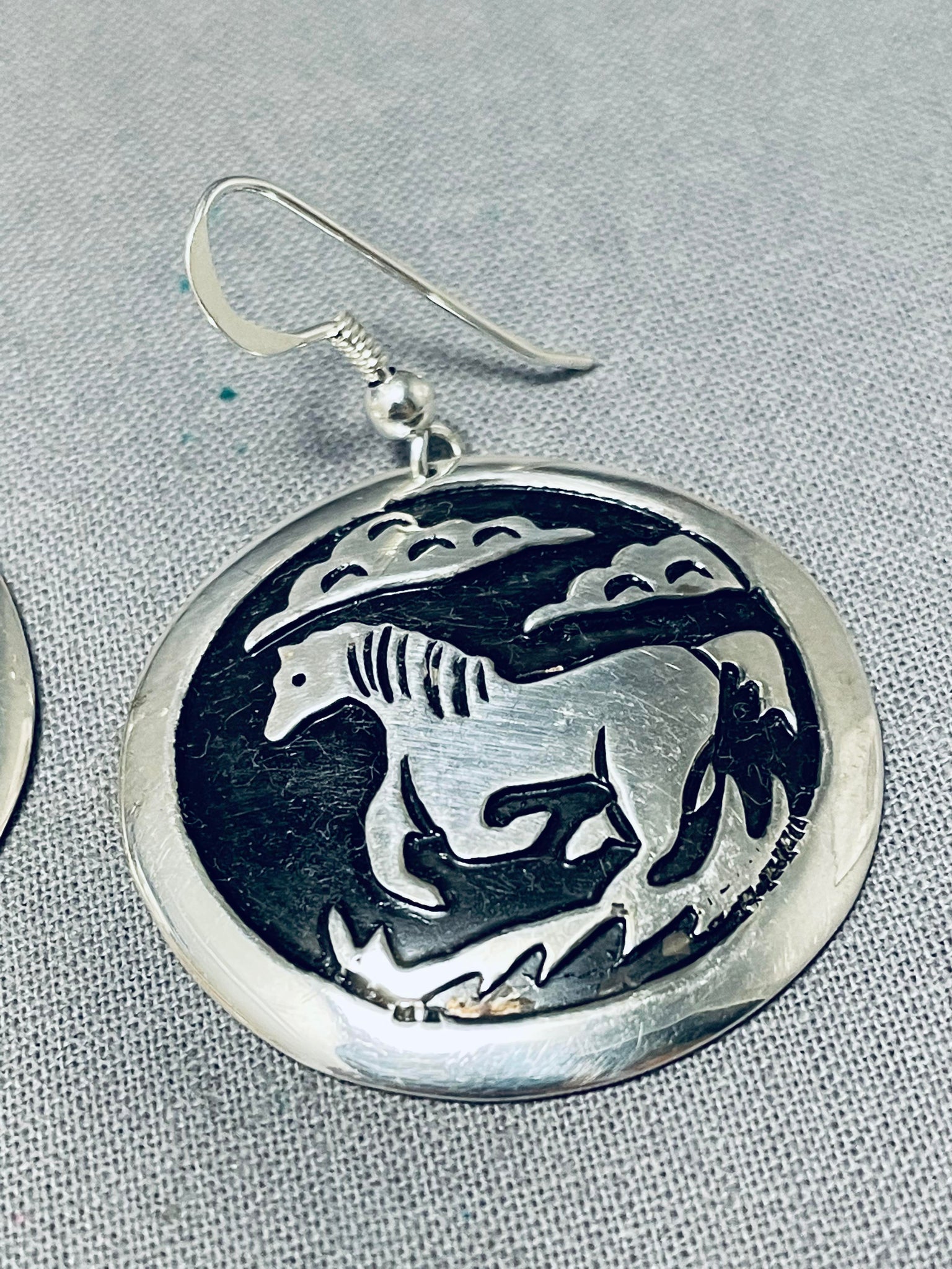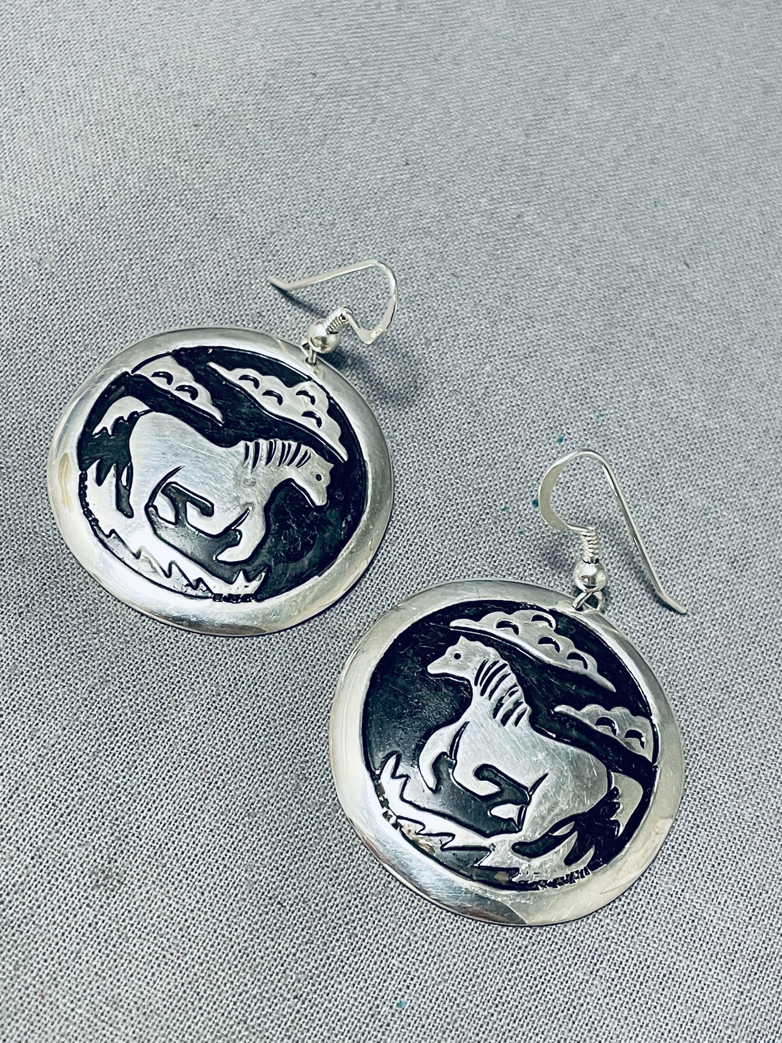 Marvelous Singer Native American Navajo Sterling Silver Horse Earrings