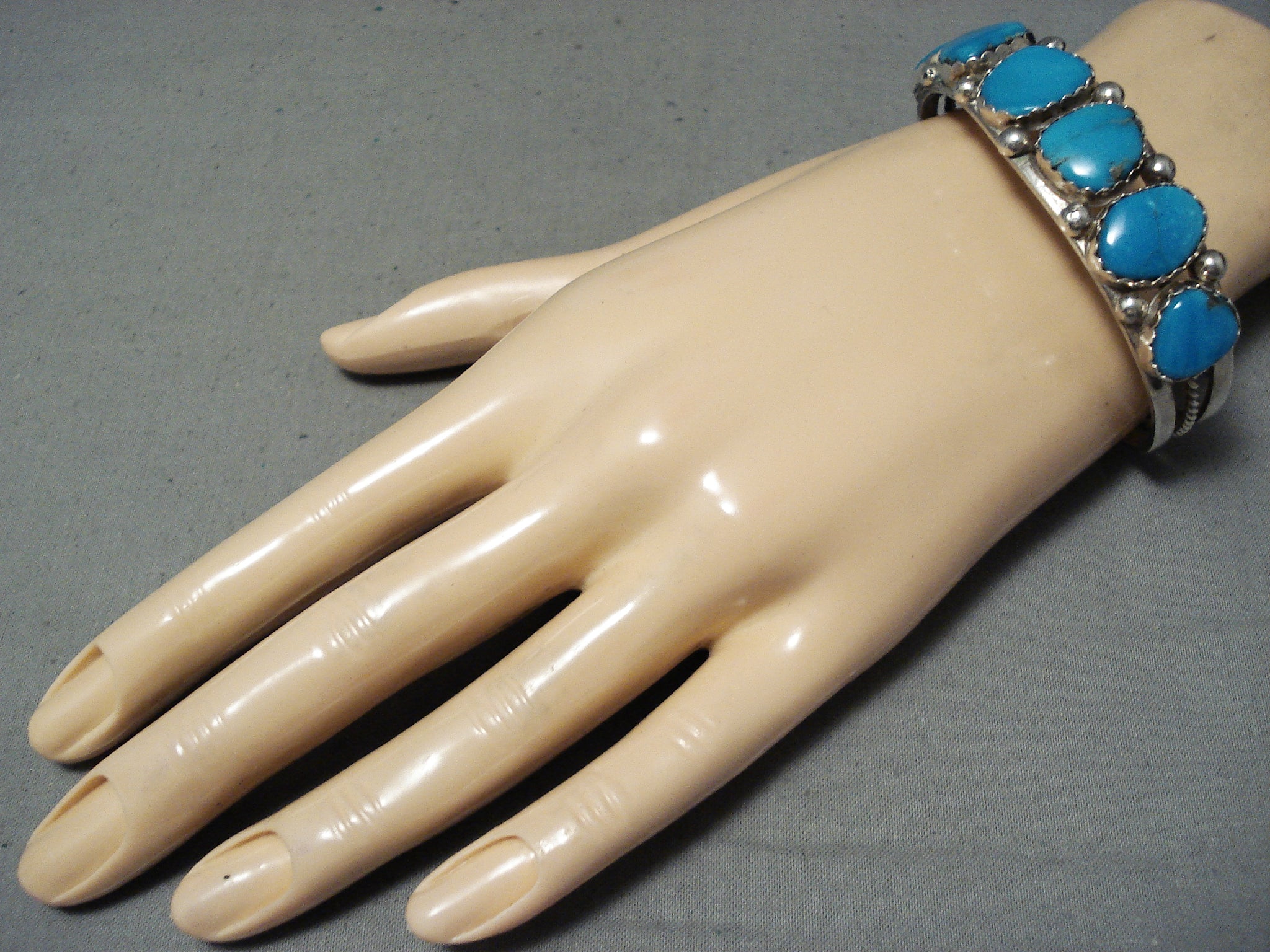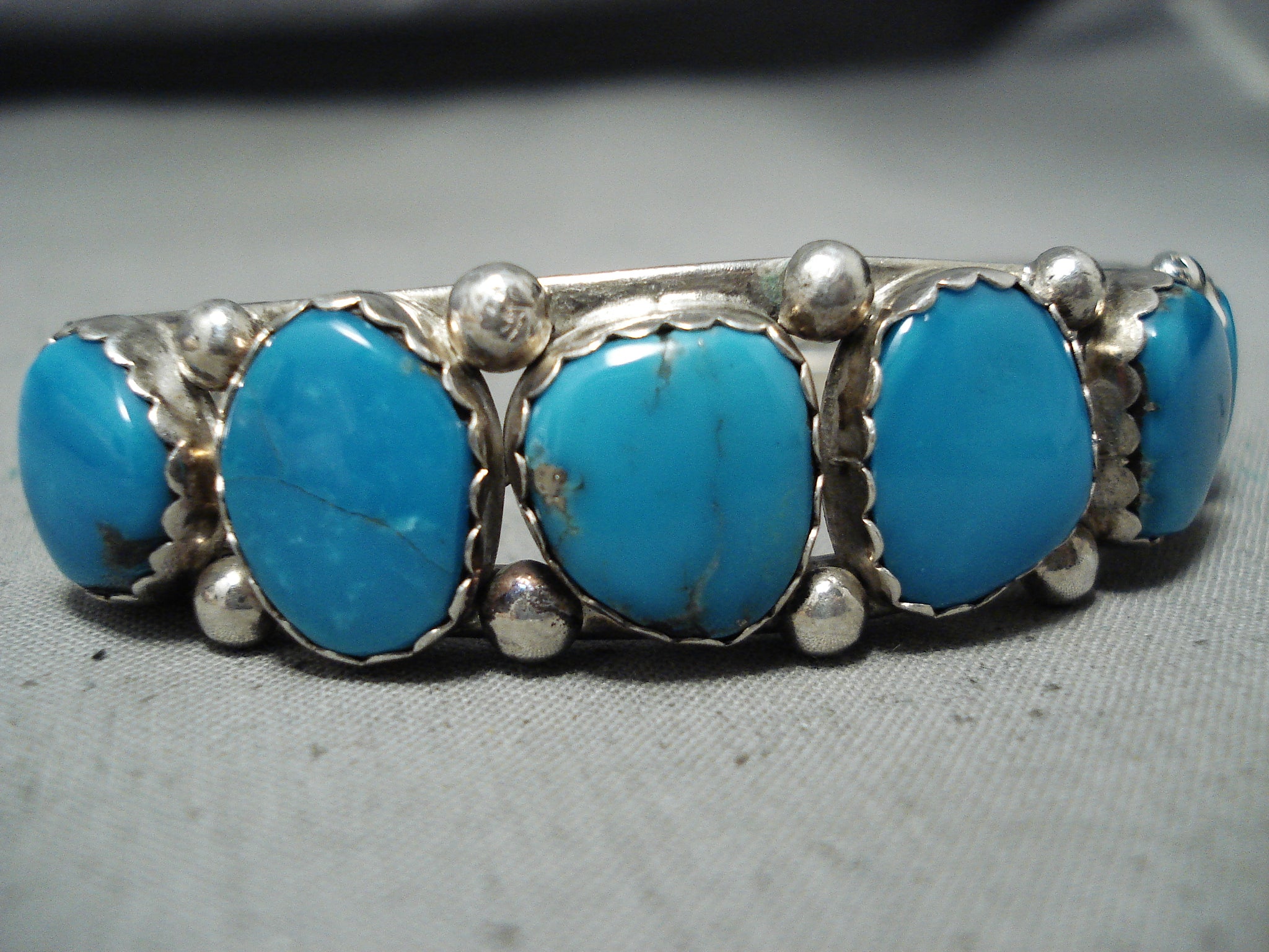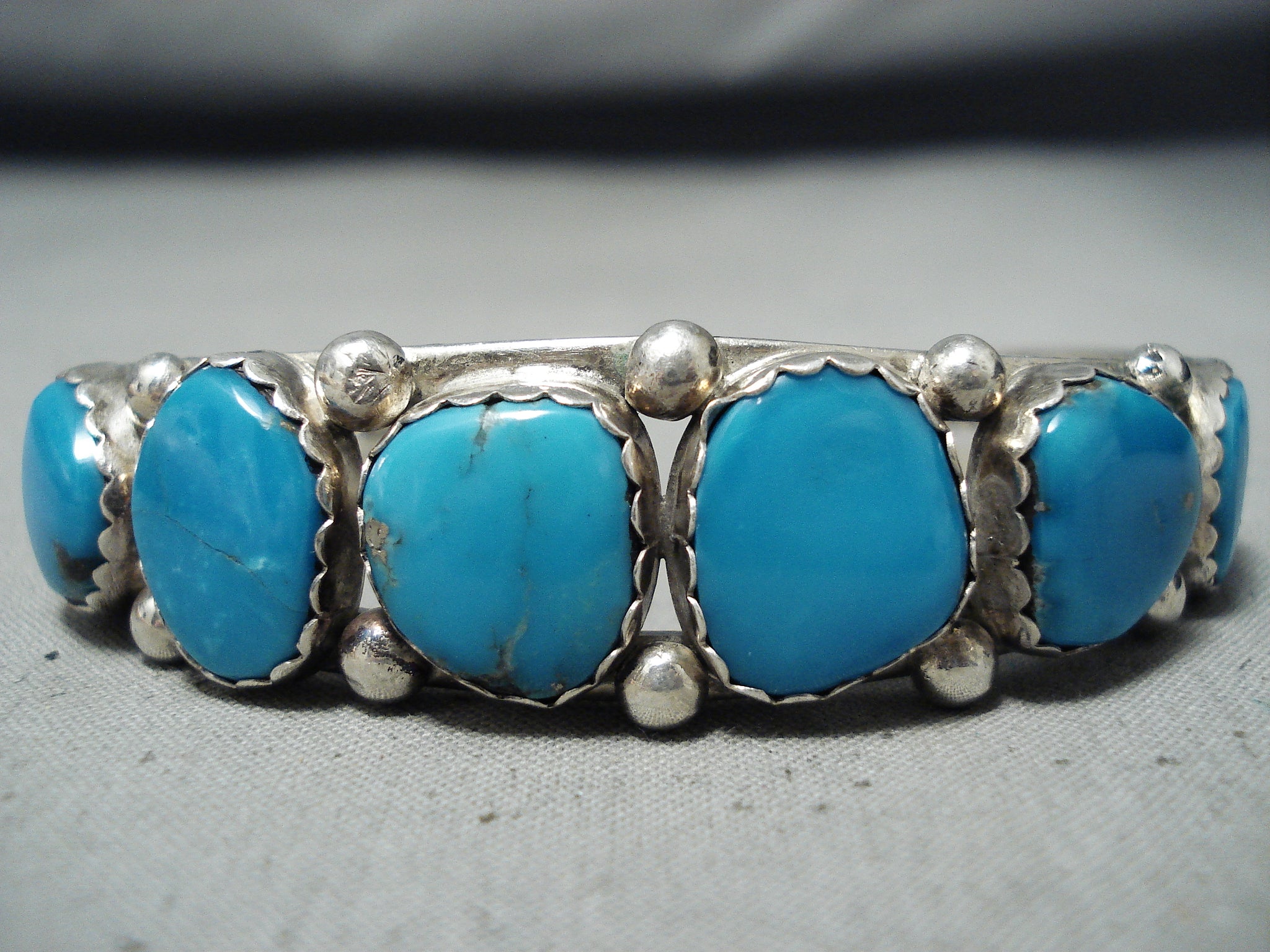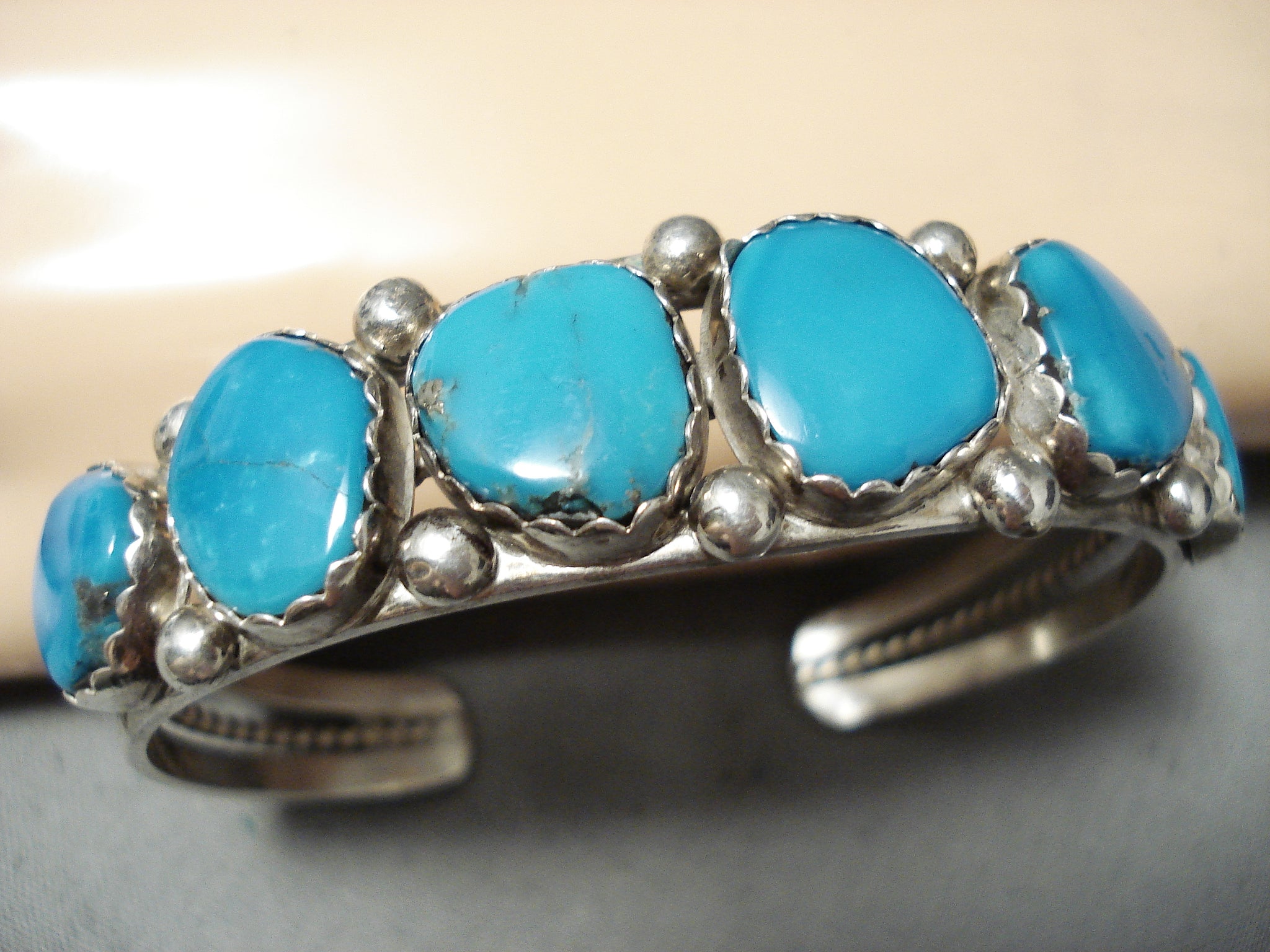 Marvelous Vintage Native American Navajo Kingman Turquoise Sterling Silver Bracelet