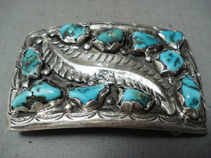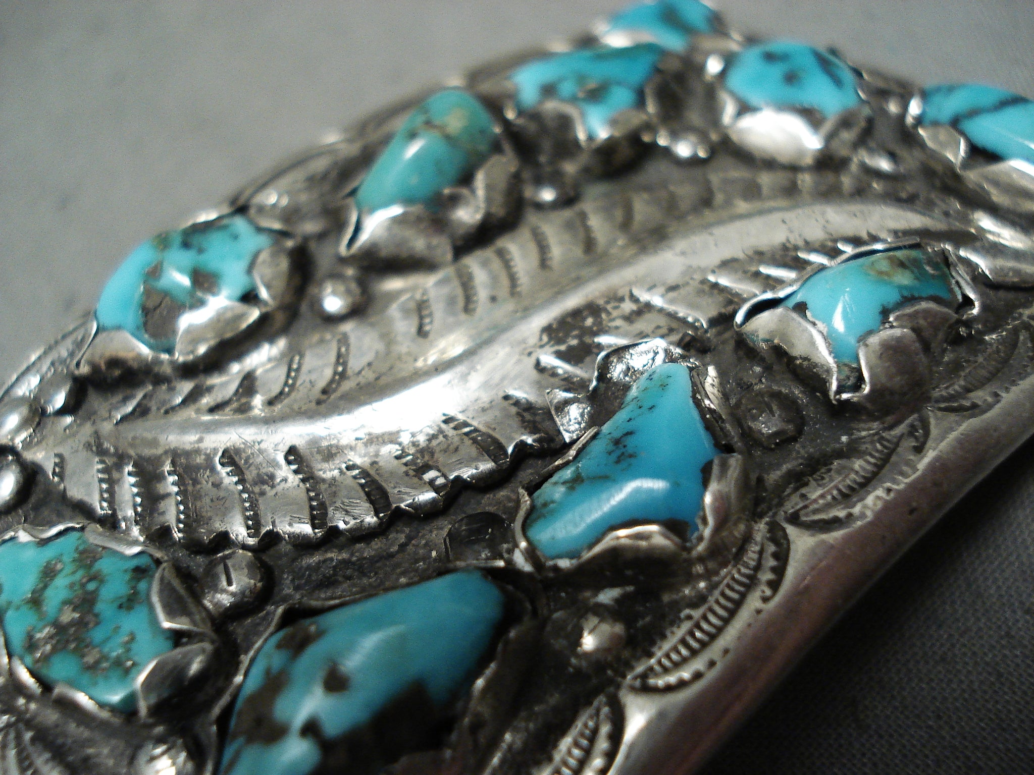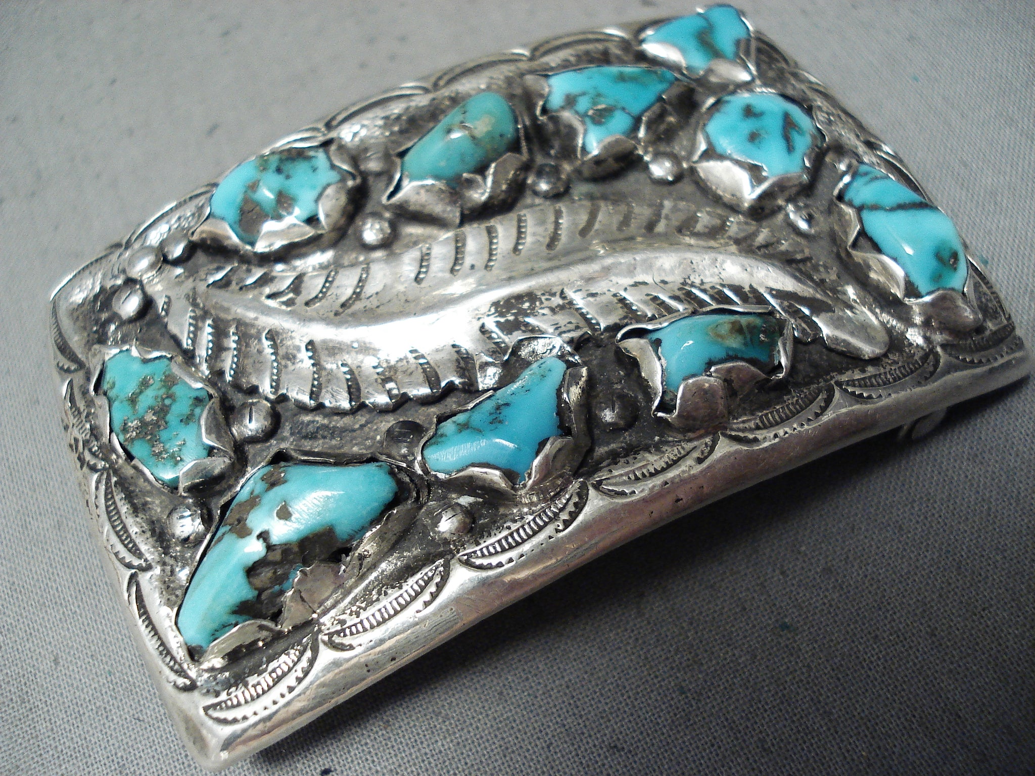 Marvelous Vintage Native American Navajo Morenci Turquoise Sterling Silver Buckle