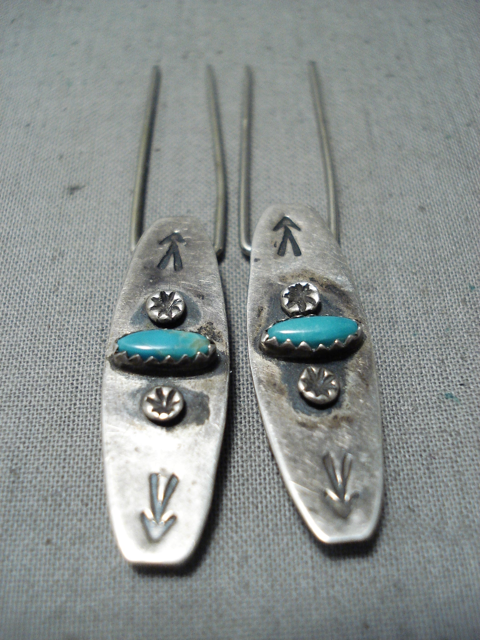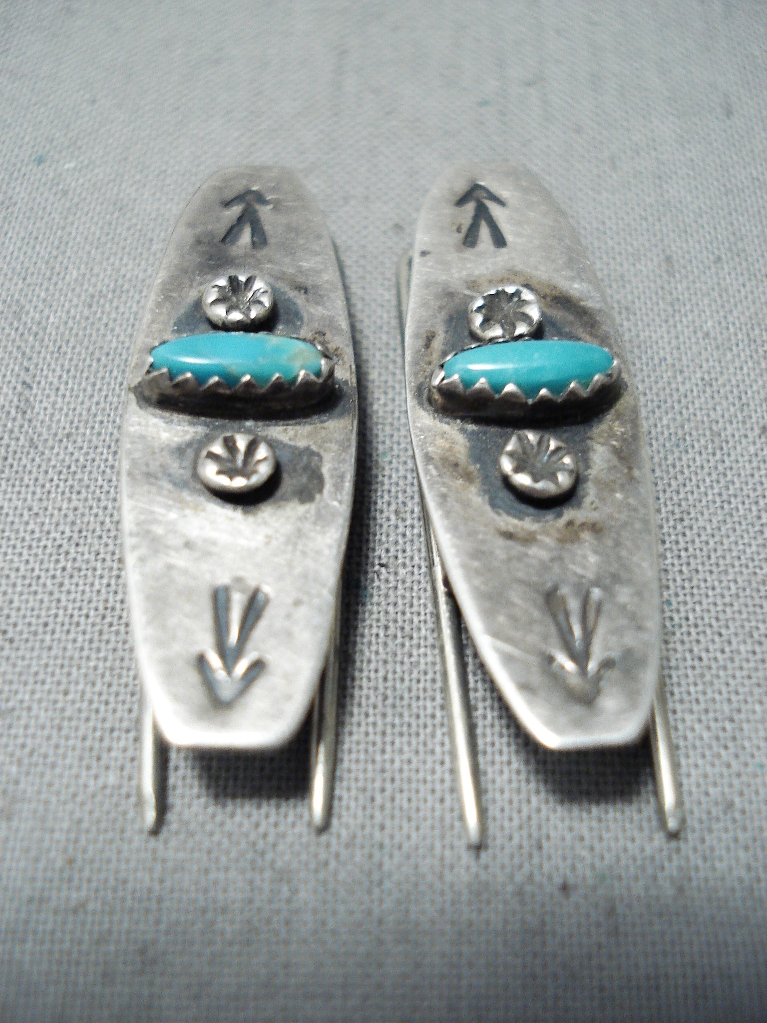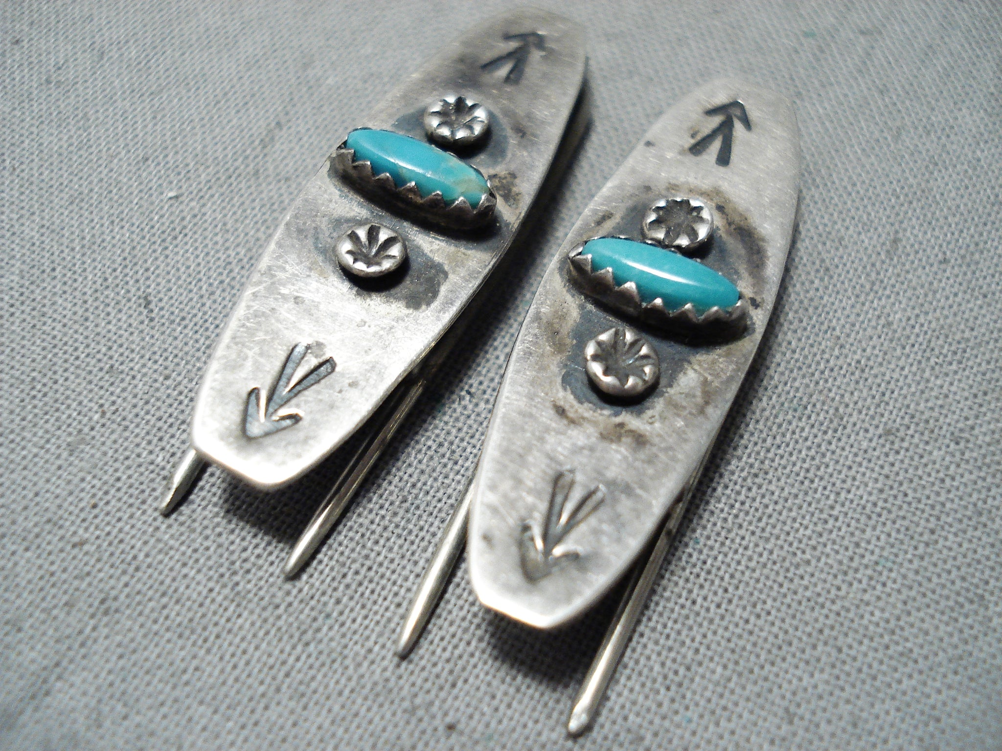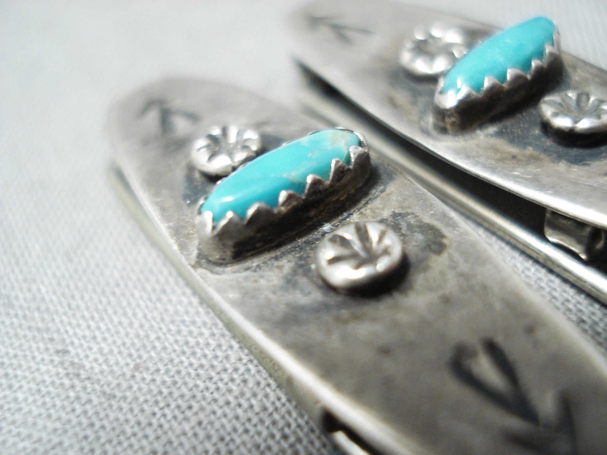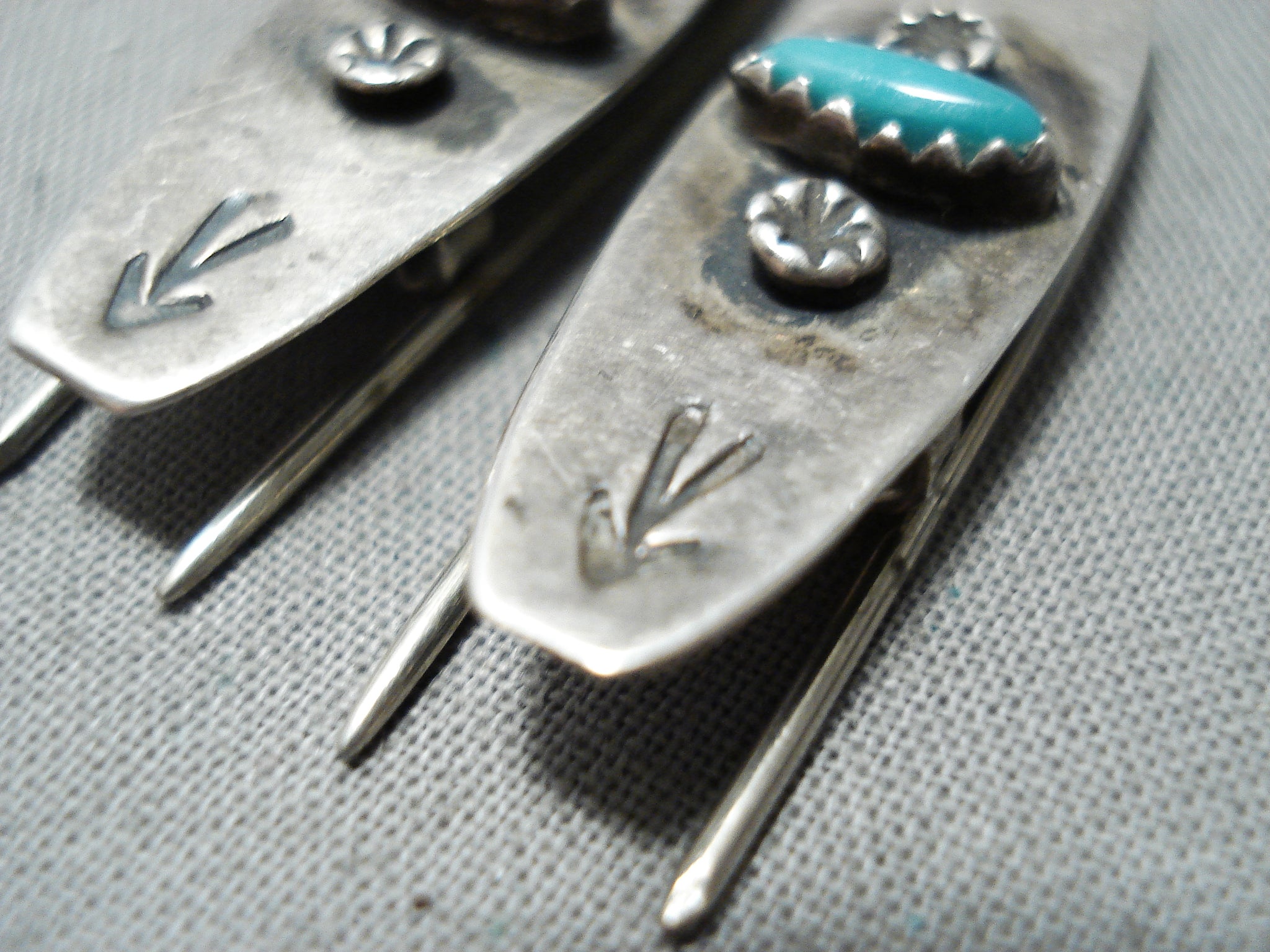 Marvelous Vintage Native American Navajo Turquiose Sterling Silver Collar Pins