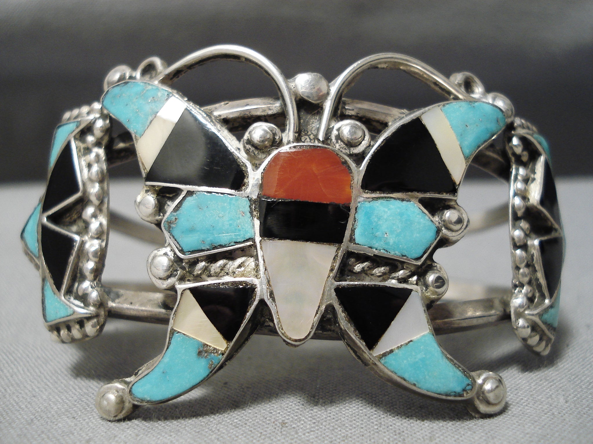 Marvelous Vintage Native American Zuni Native Turquoise Sterling Silver Butterfly Bracelet