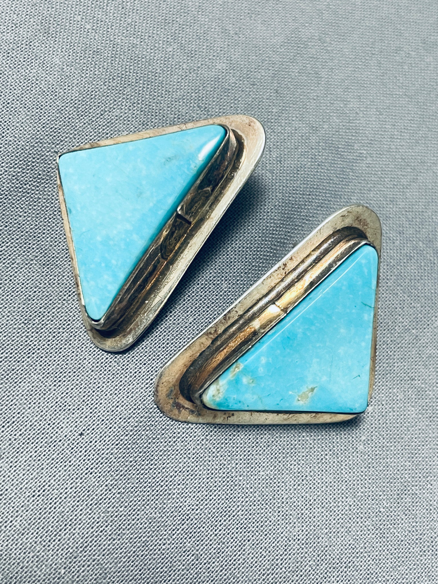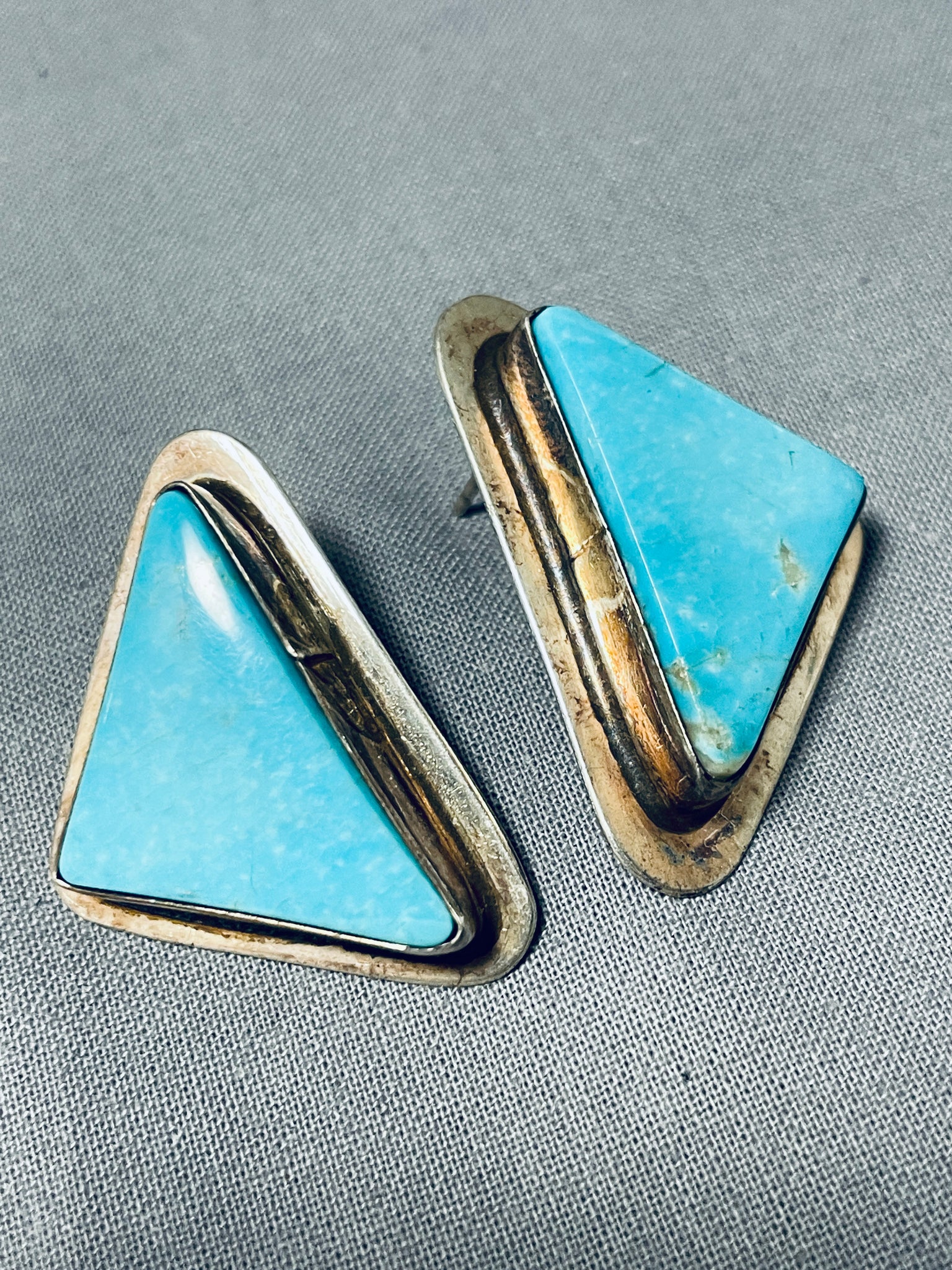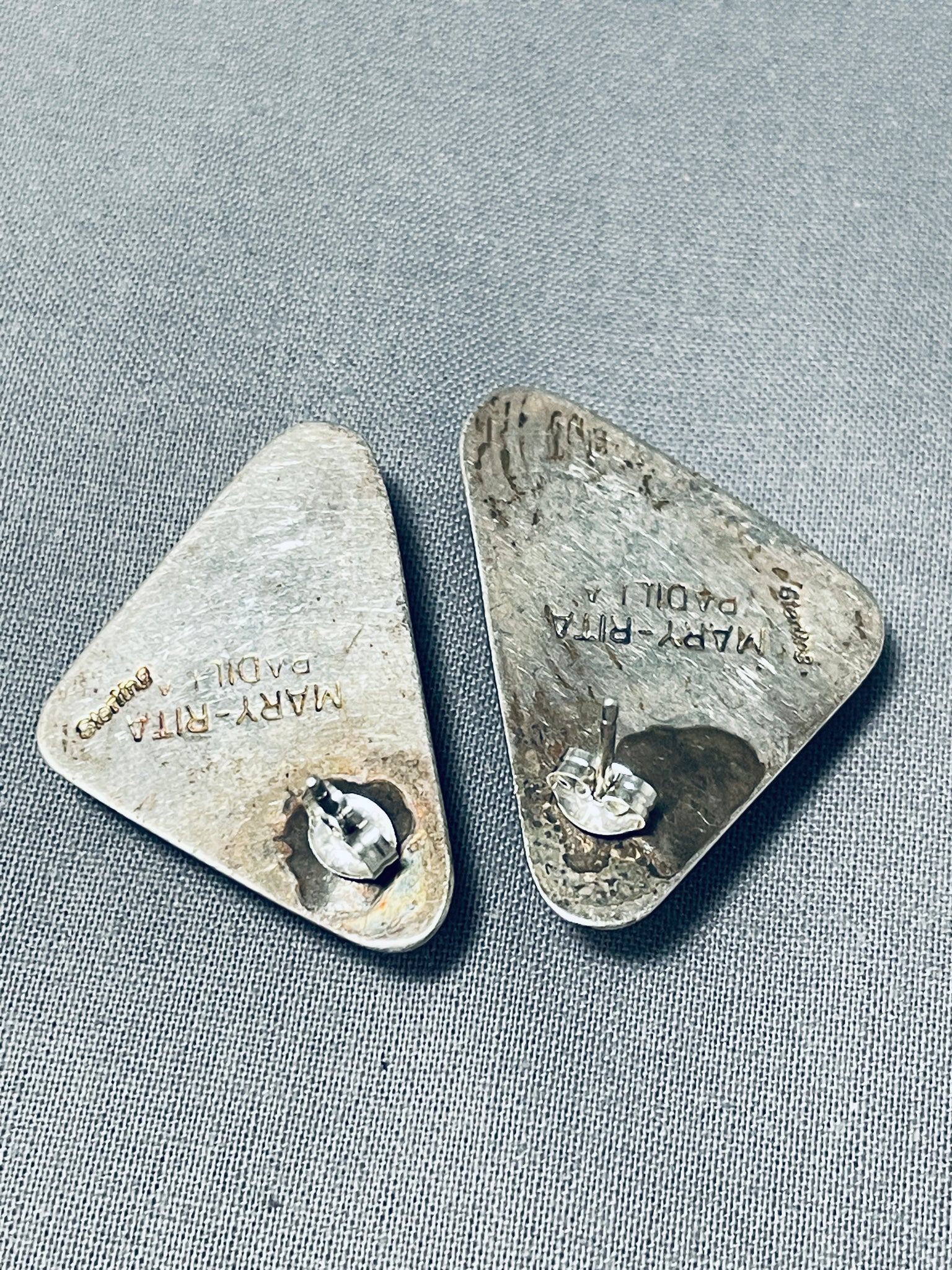 Maryanne Padilla Vintage Native American Navajo Blue Turquoise Sterling Silver Earrings Signed