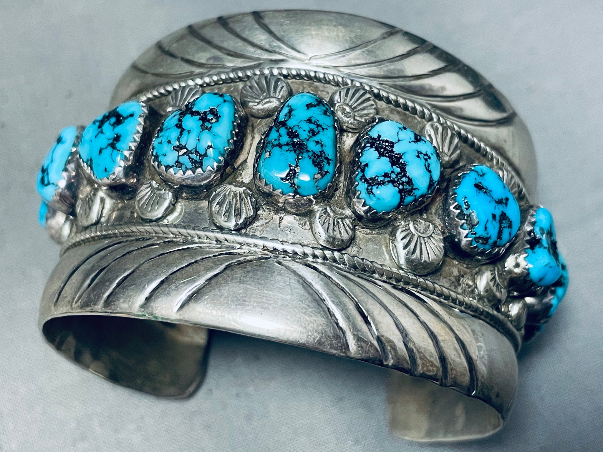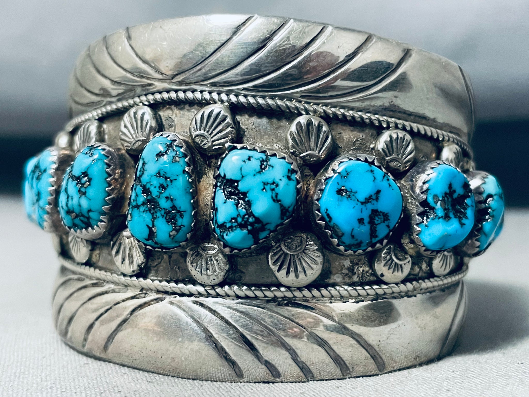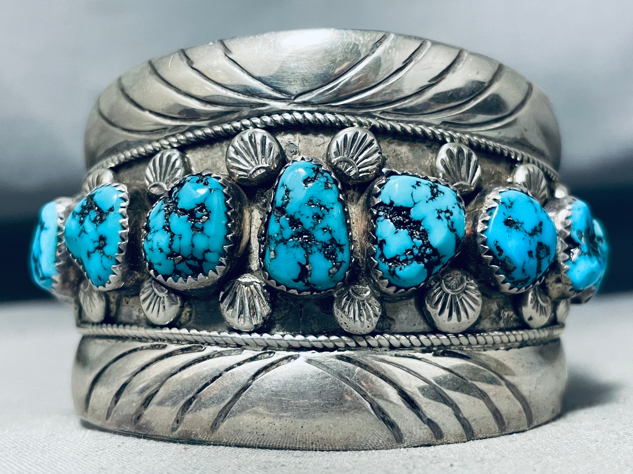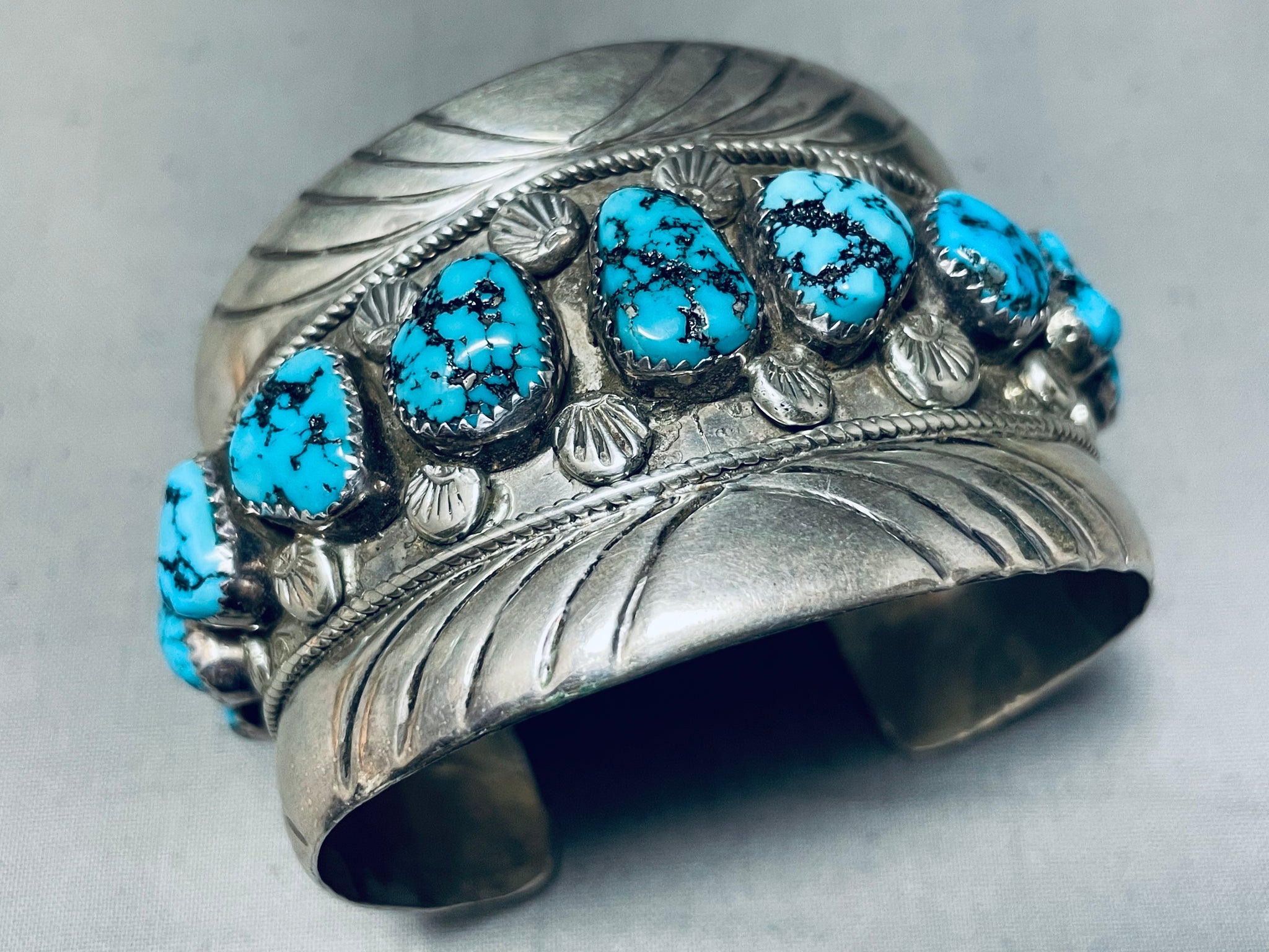 Massive Museum Vintage Native American Navajo Turquoise Sterling Silver Wave Bracelet