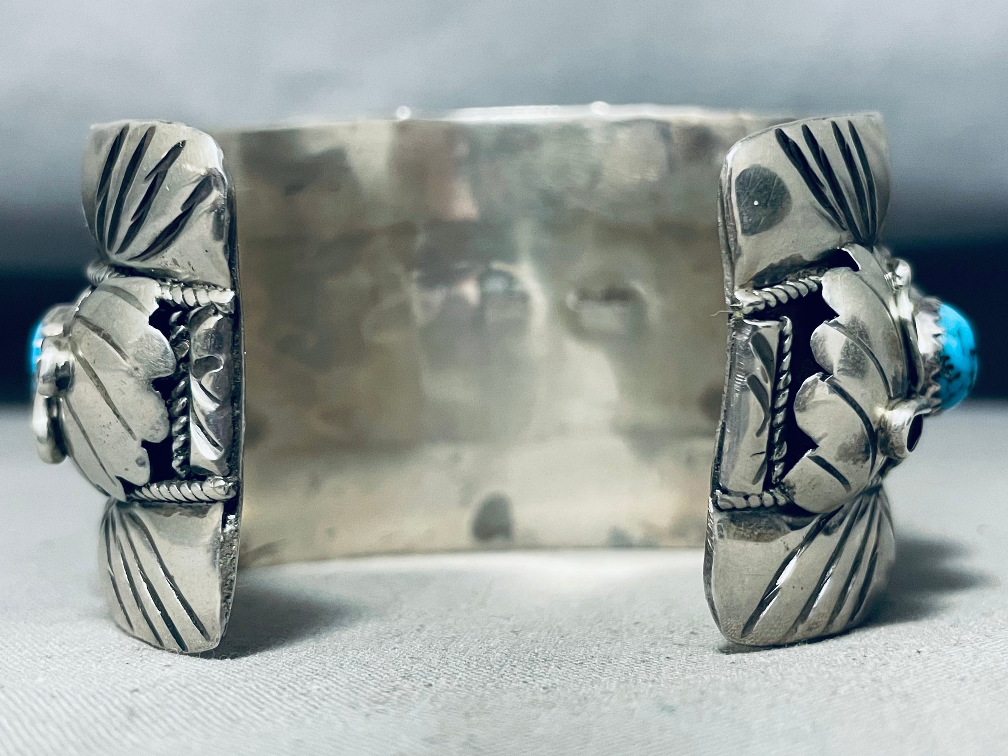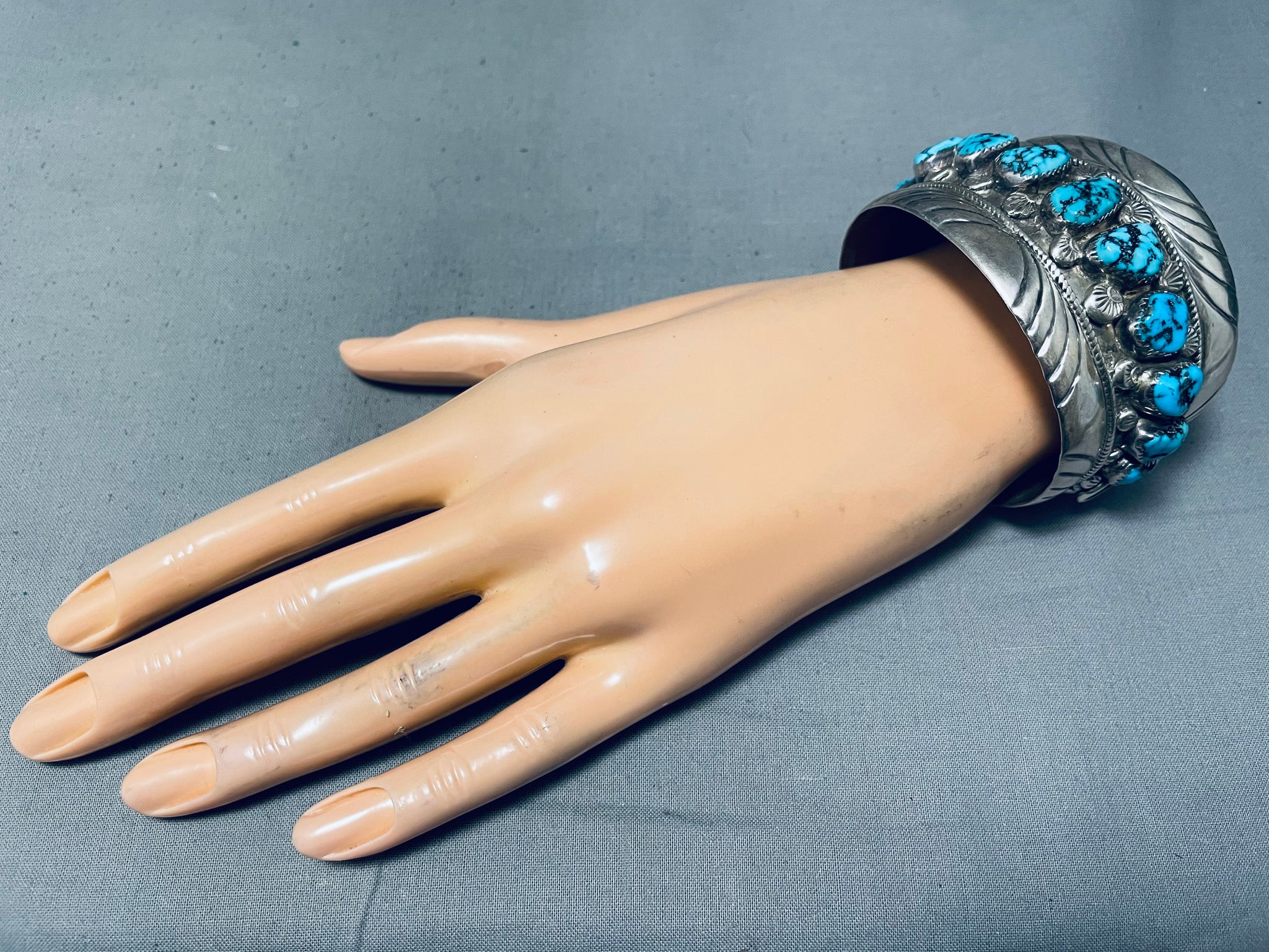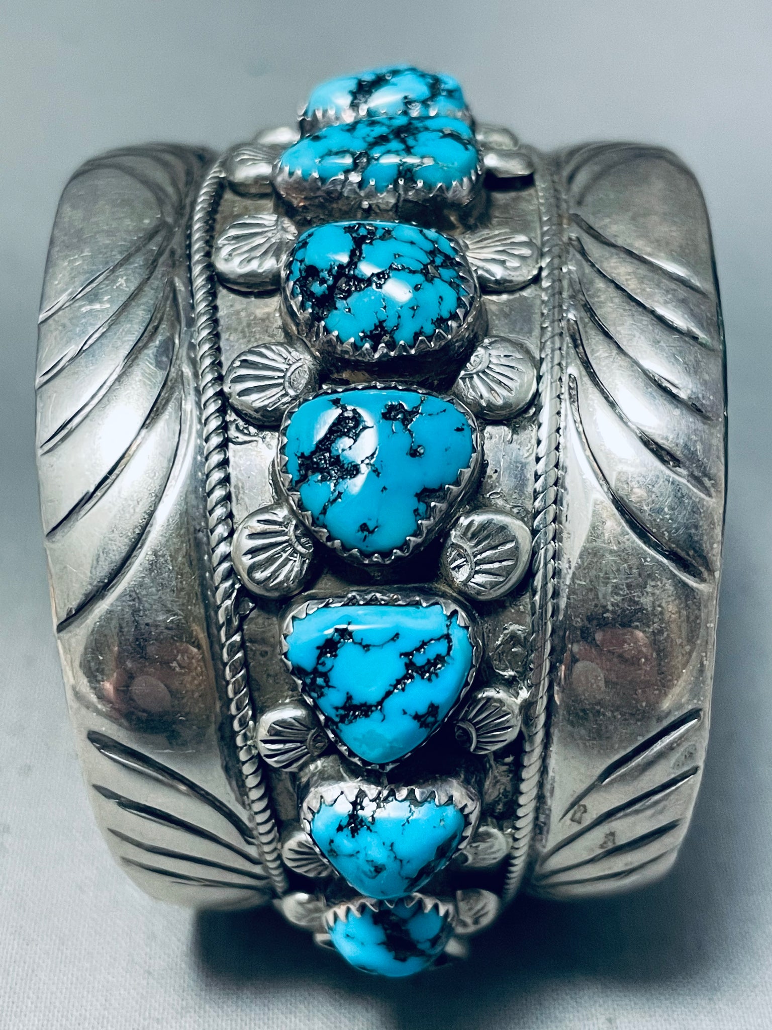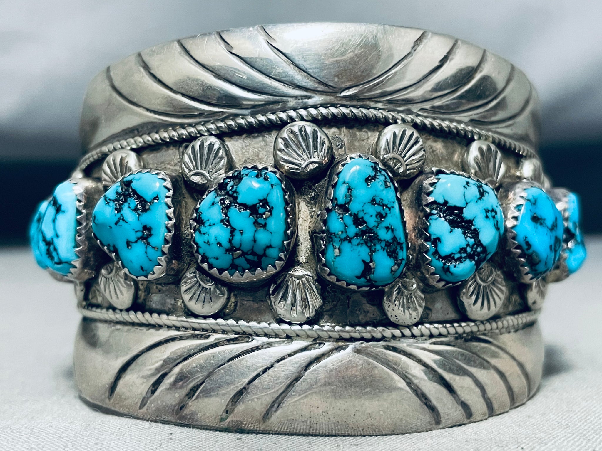 Massive Museum Vintage Native American Navajo Turquoise Sterling Silver Wave Bracelet