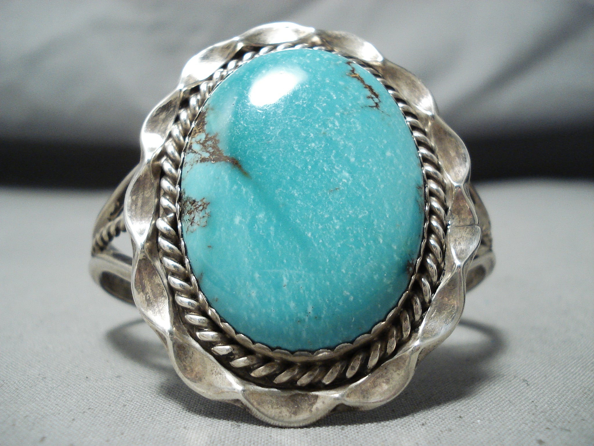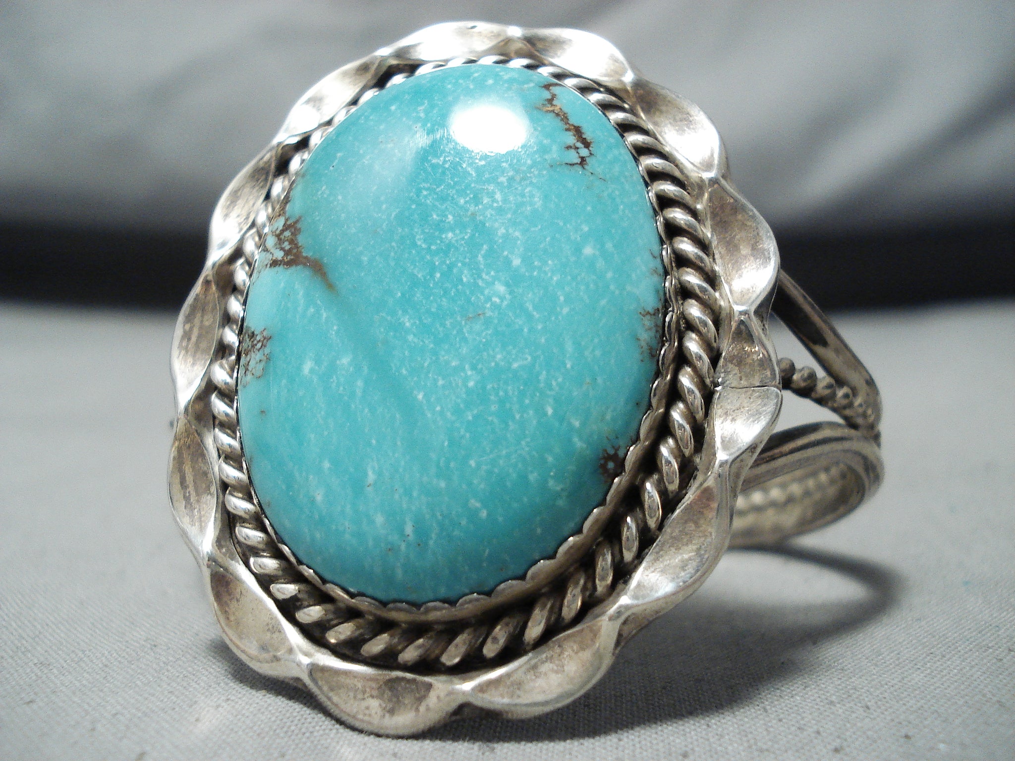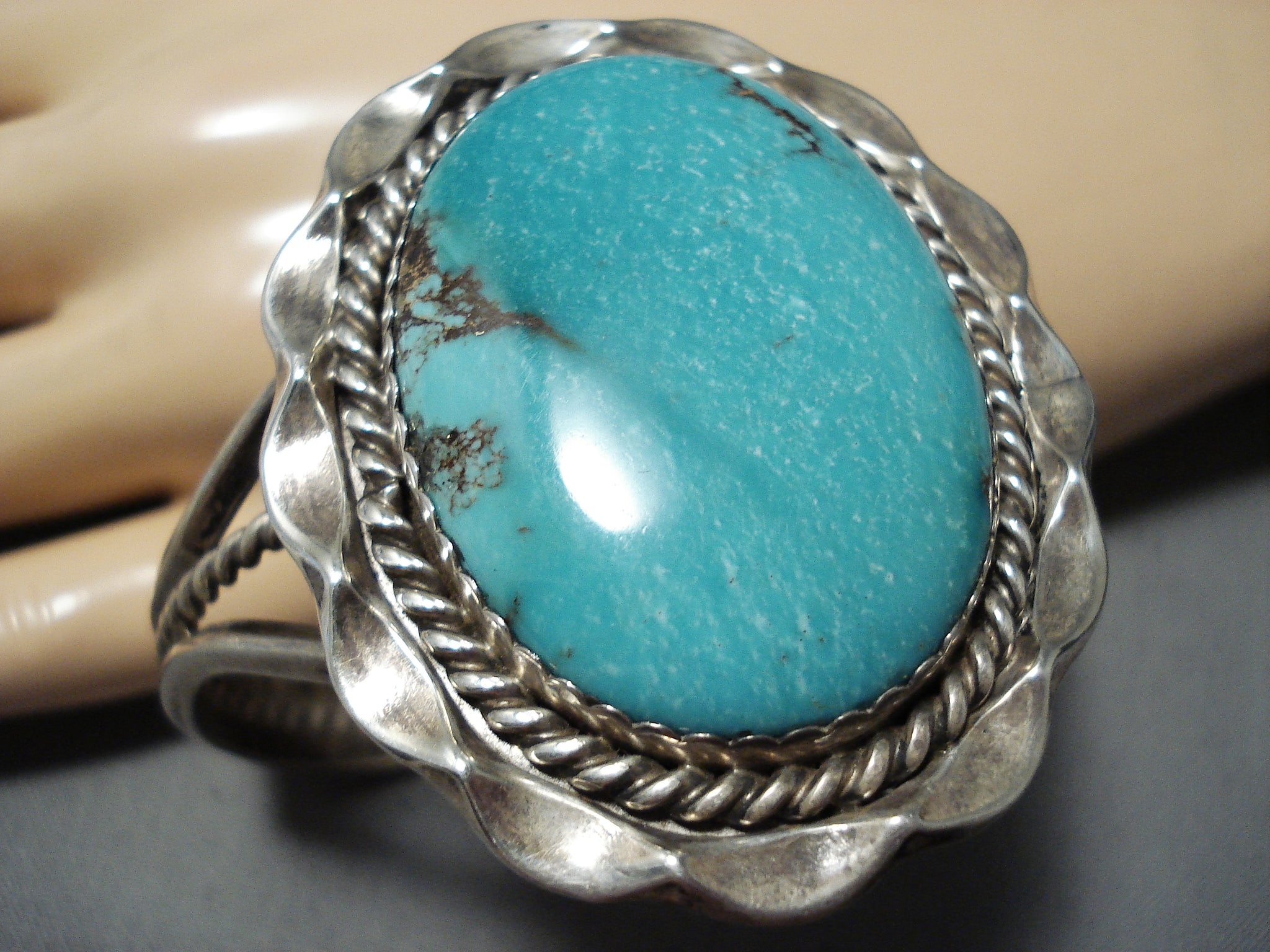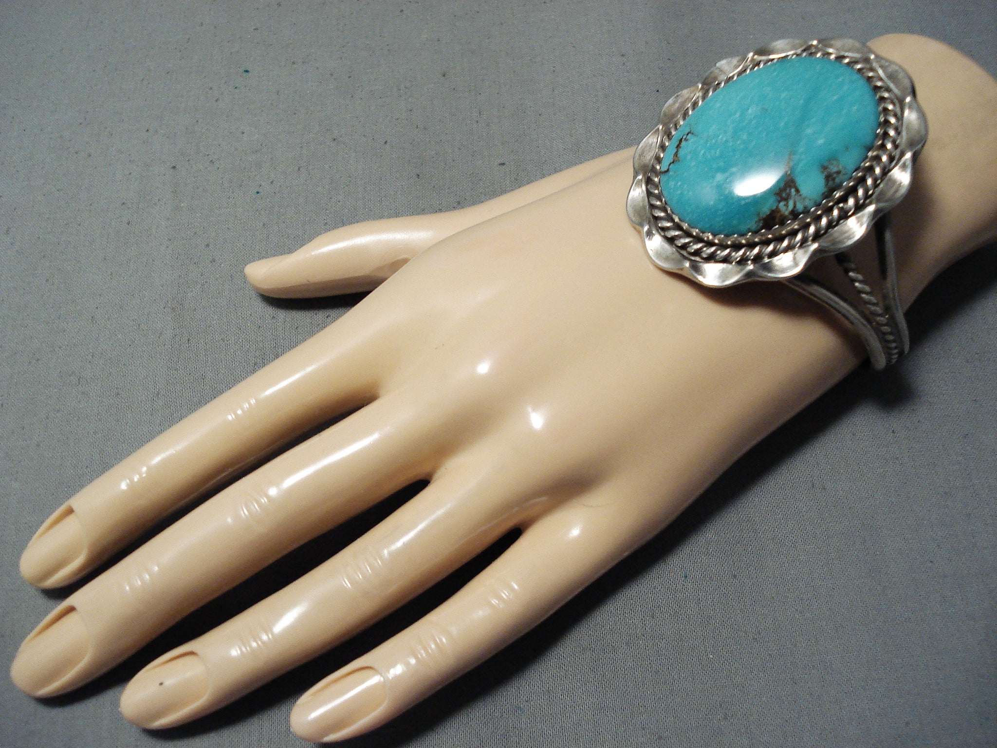 Massive Signed Vintage Native American Navajo Old Kingman Turquoise Sterling Silver Bracelet