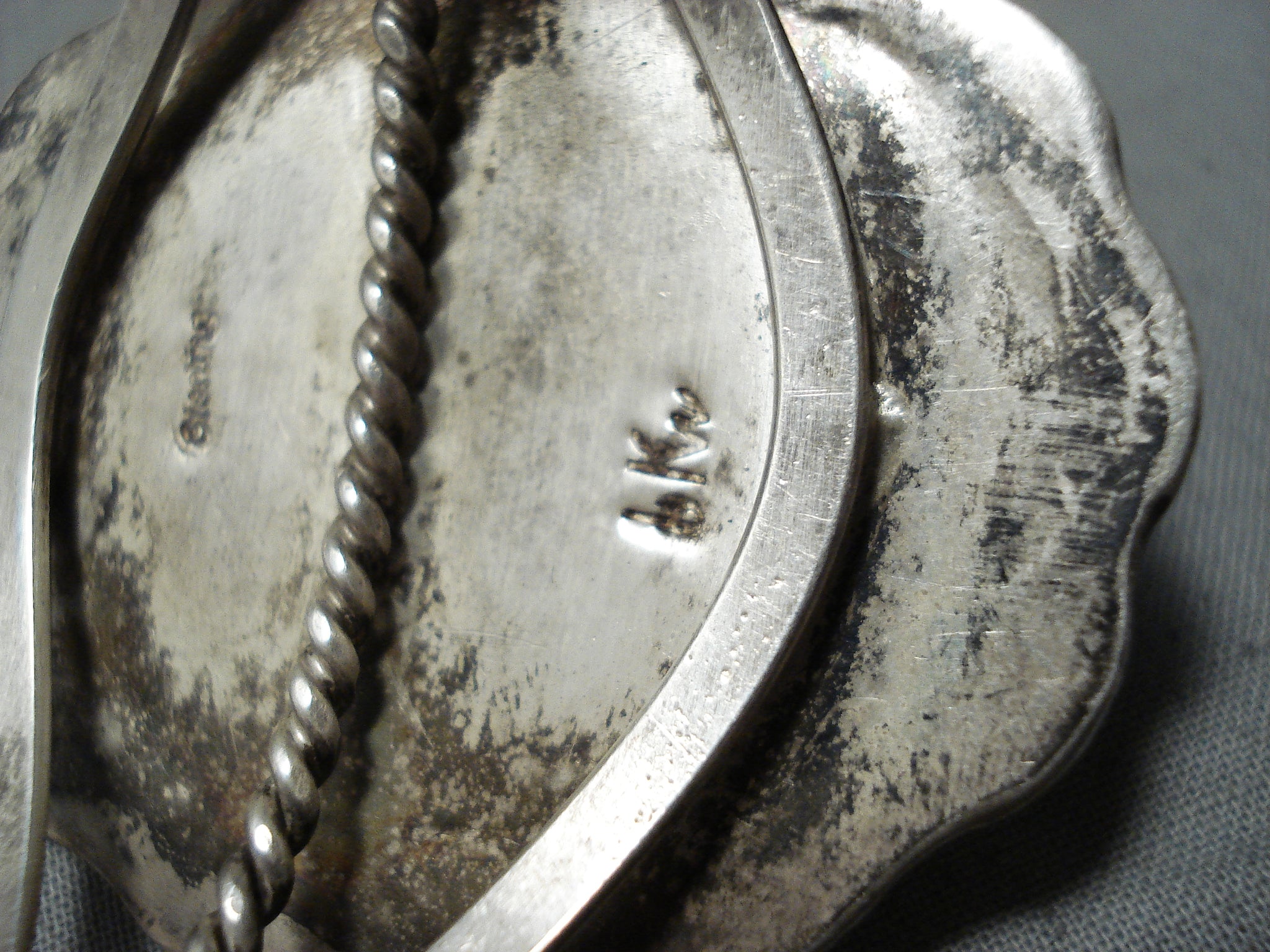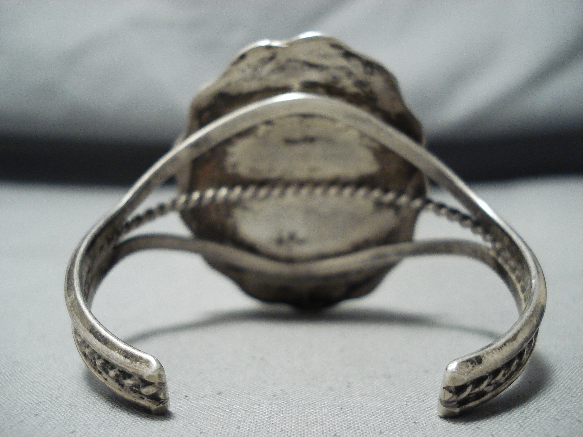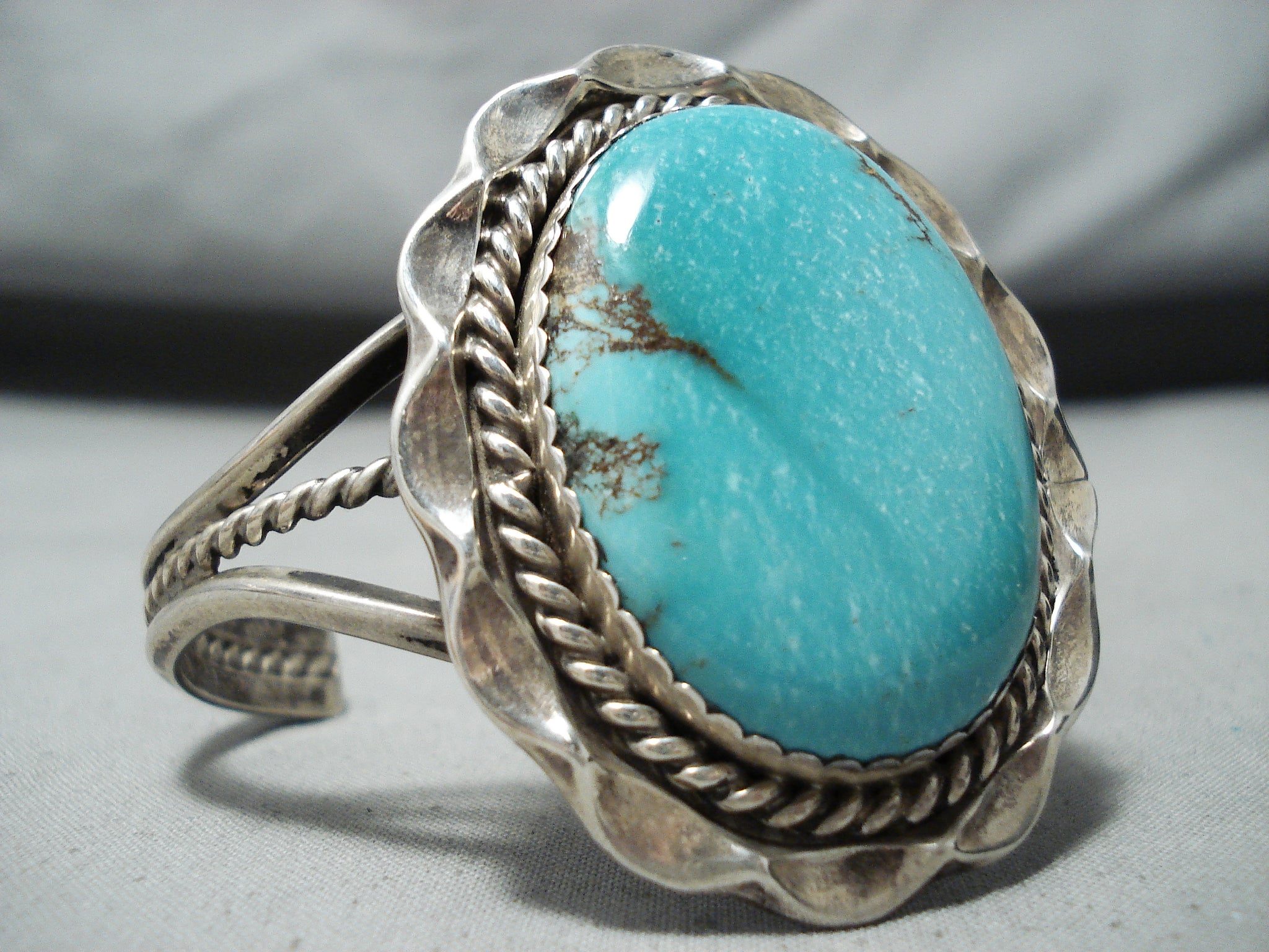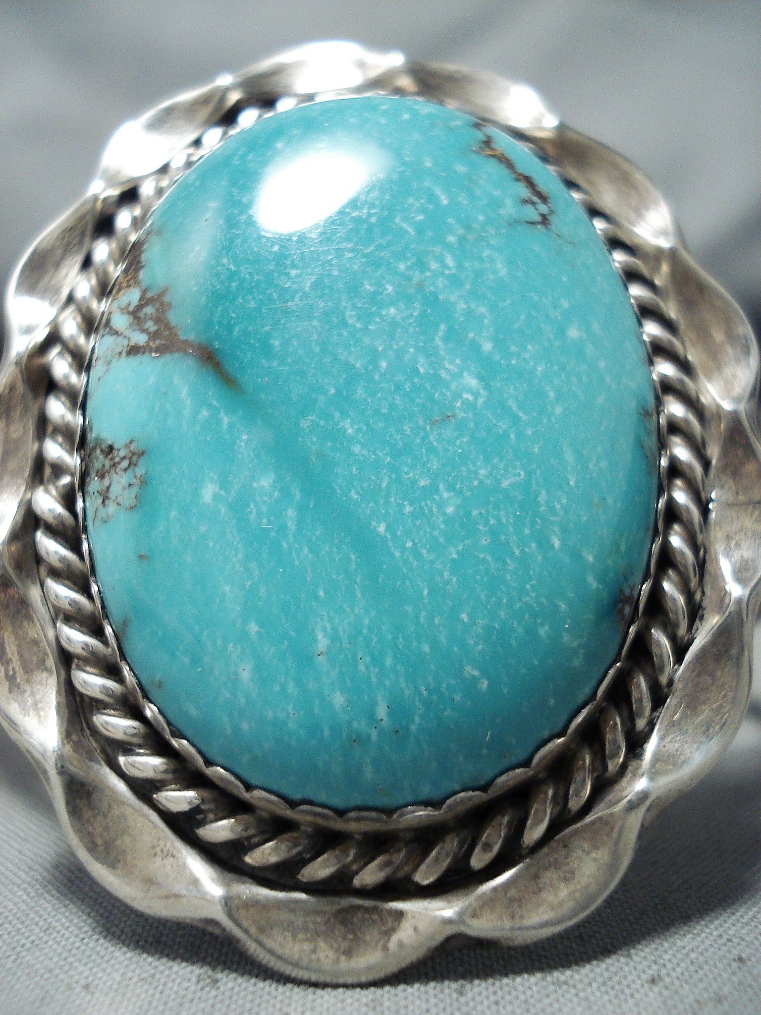 Massive Signed Vintage Native American Navajo Old Kingman Turquoise Sterling Silver Bracelet
