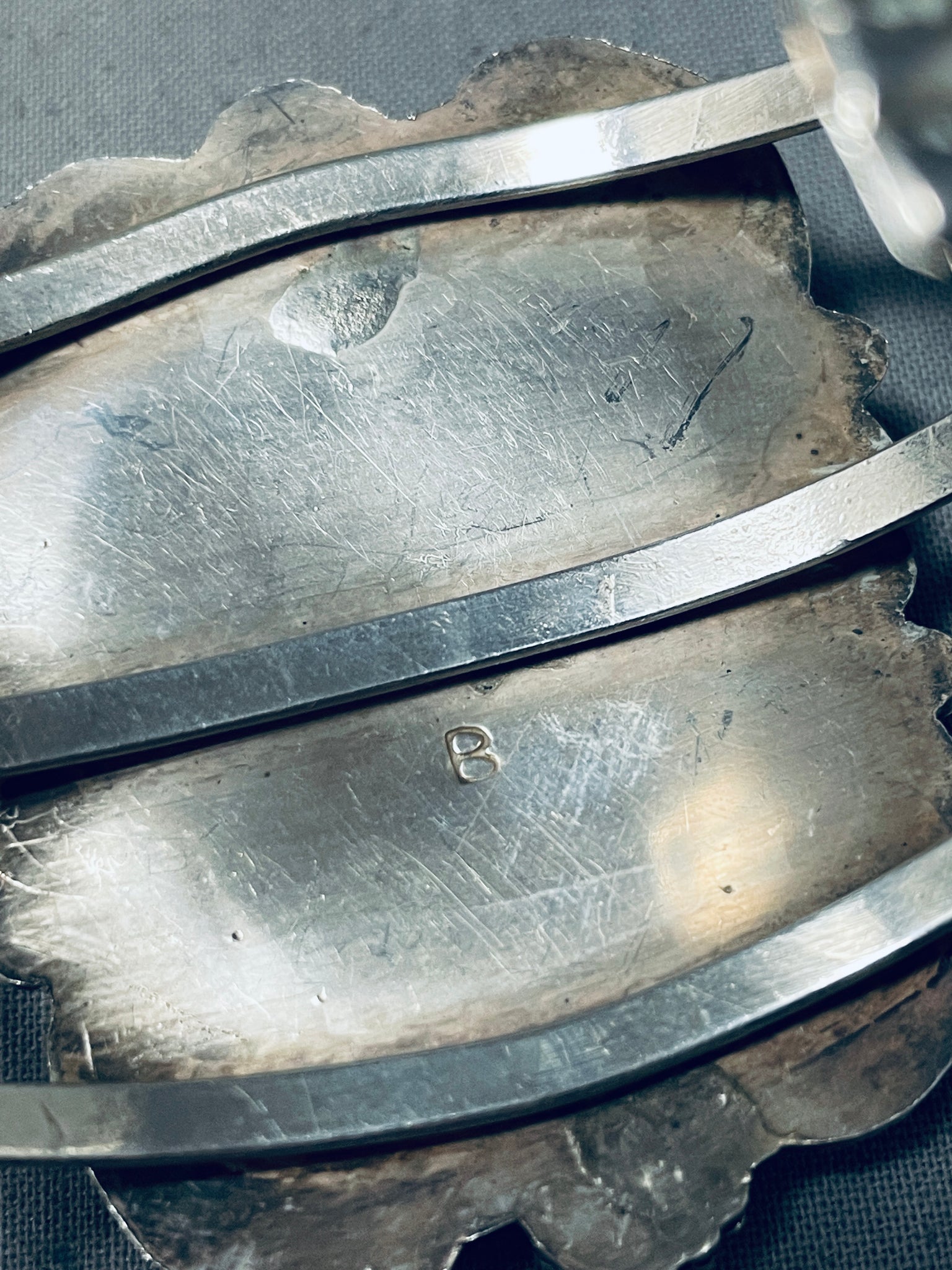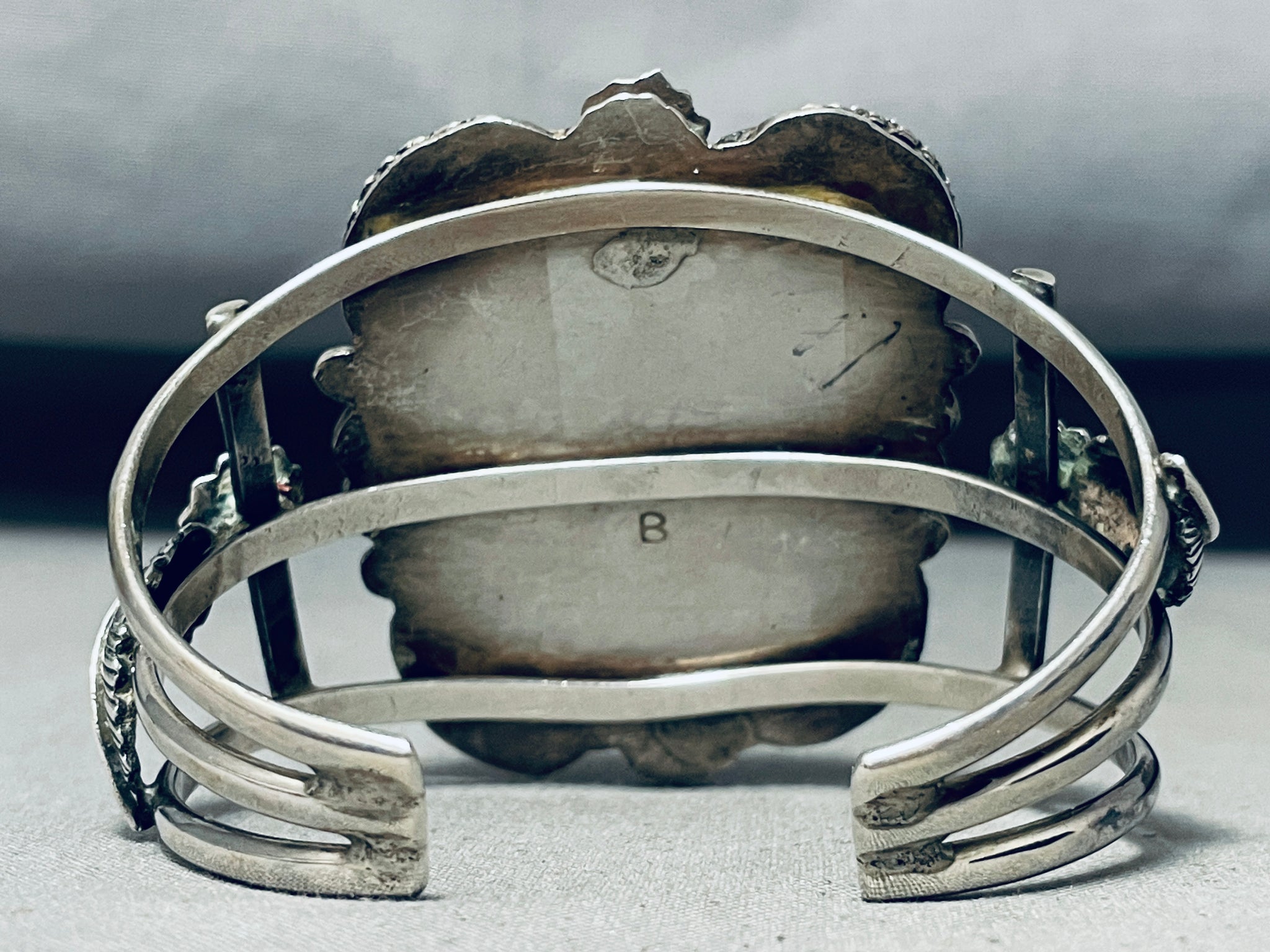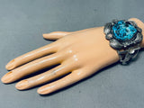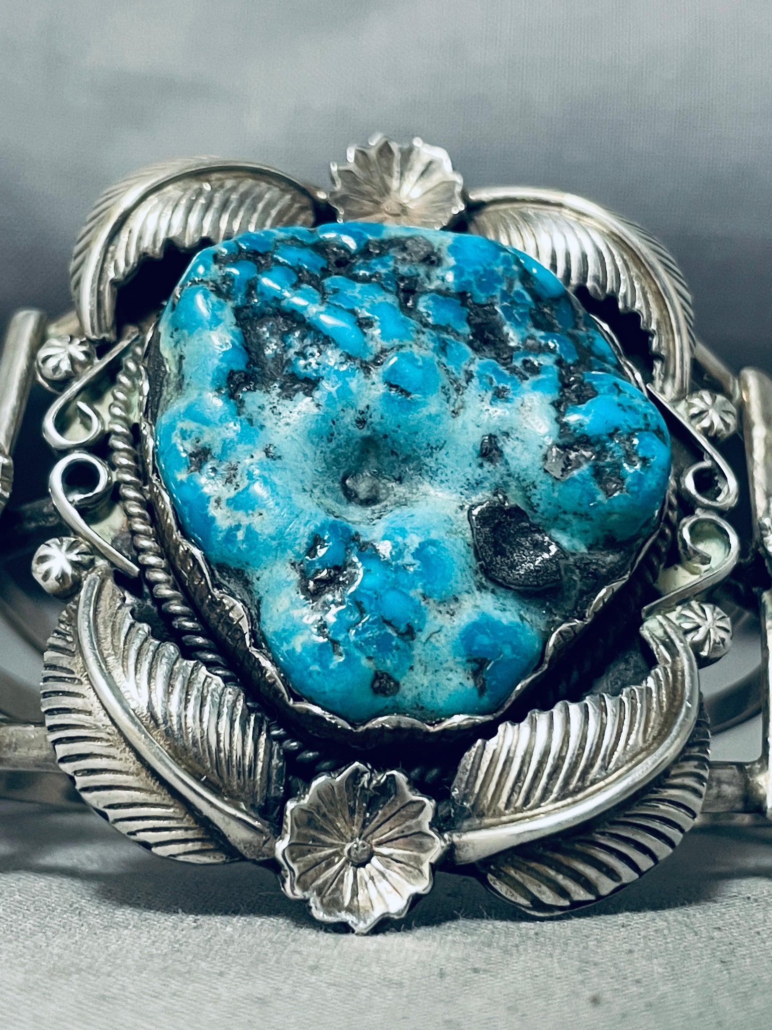 Massive Vintage Native American Navajo Turquoise Sterling Silver Leaf Bracelet