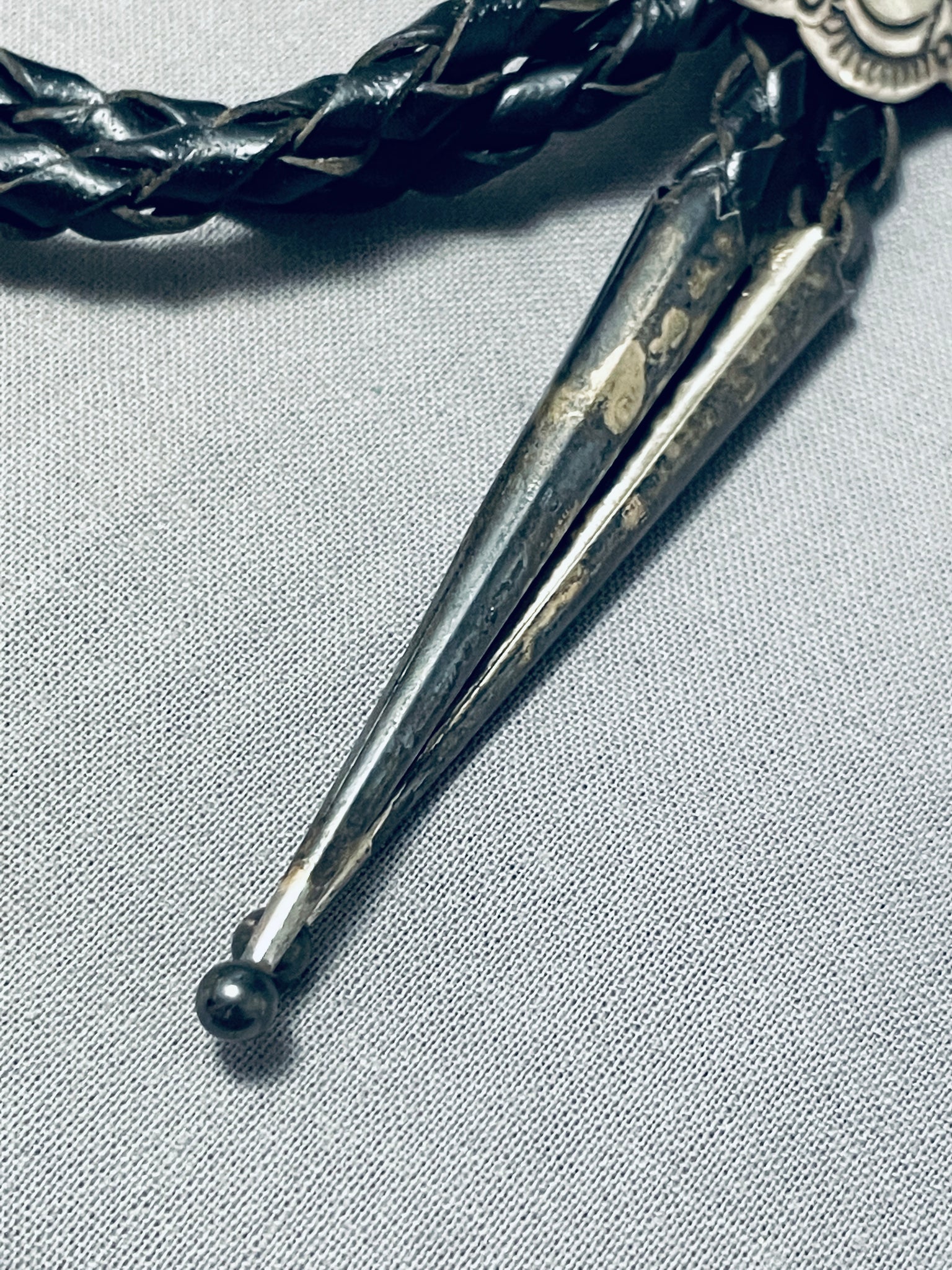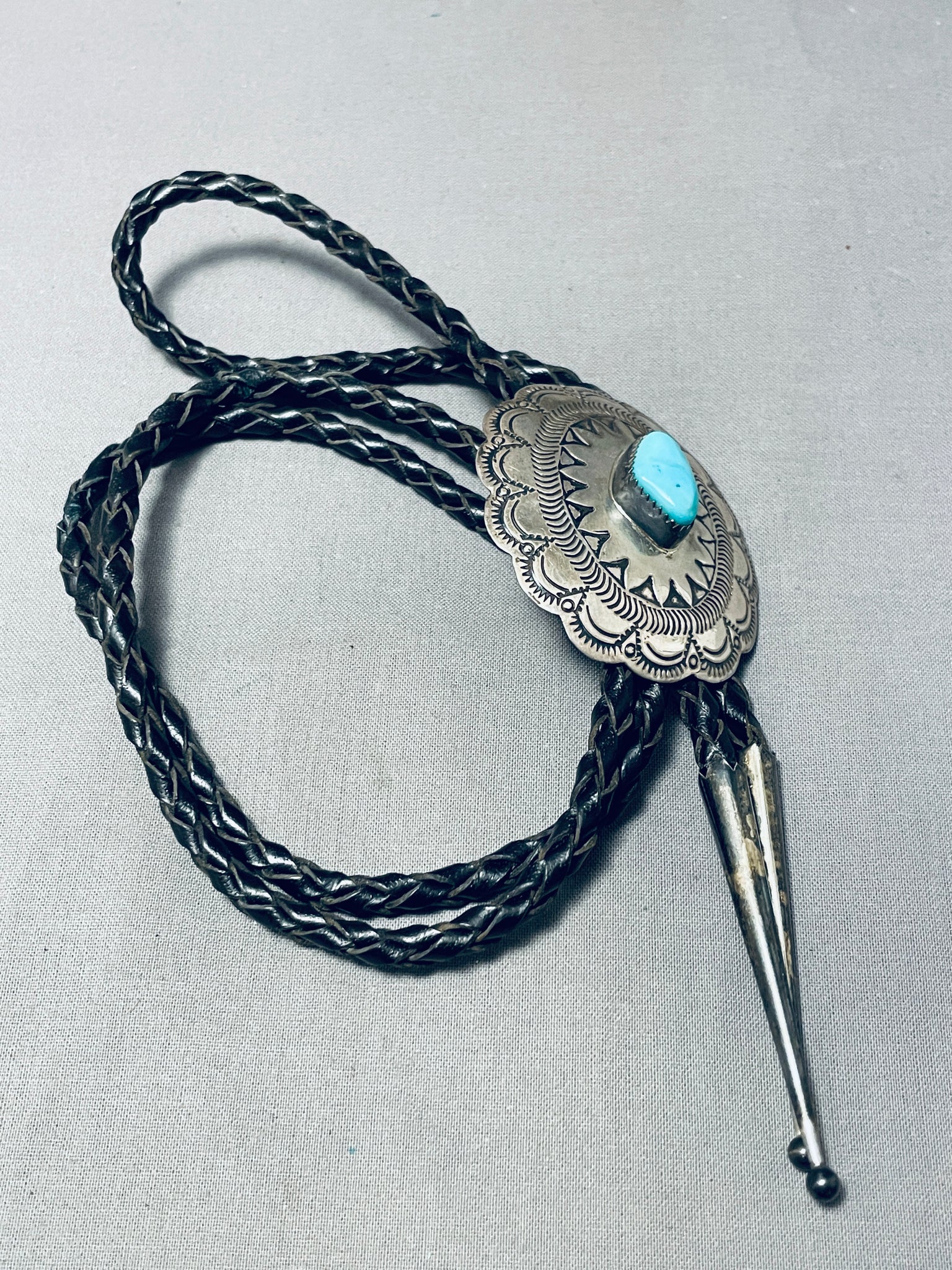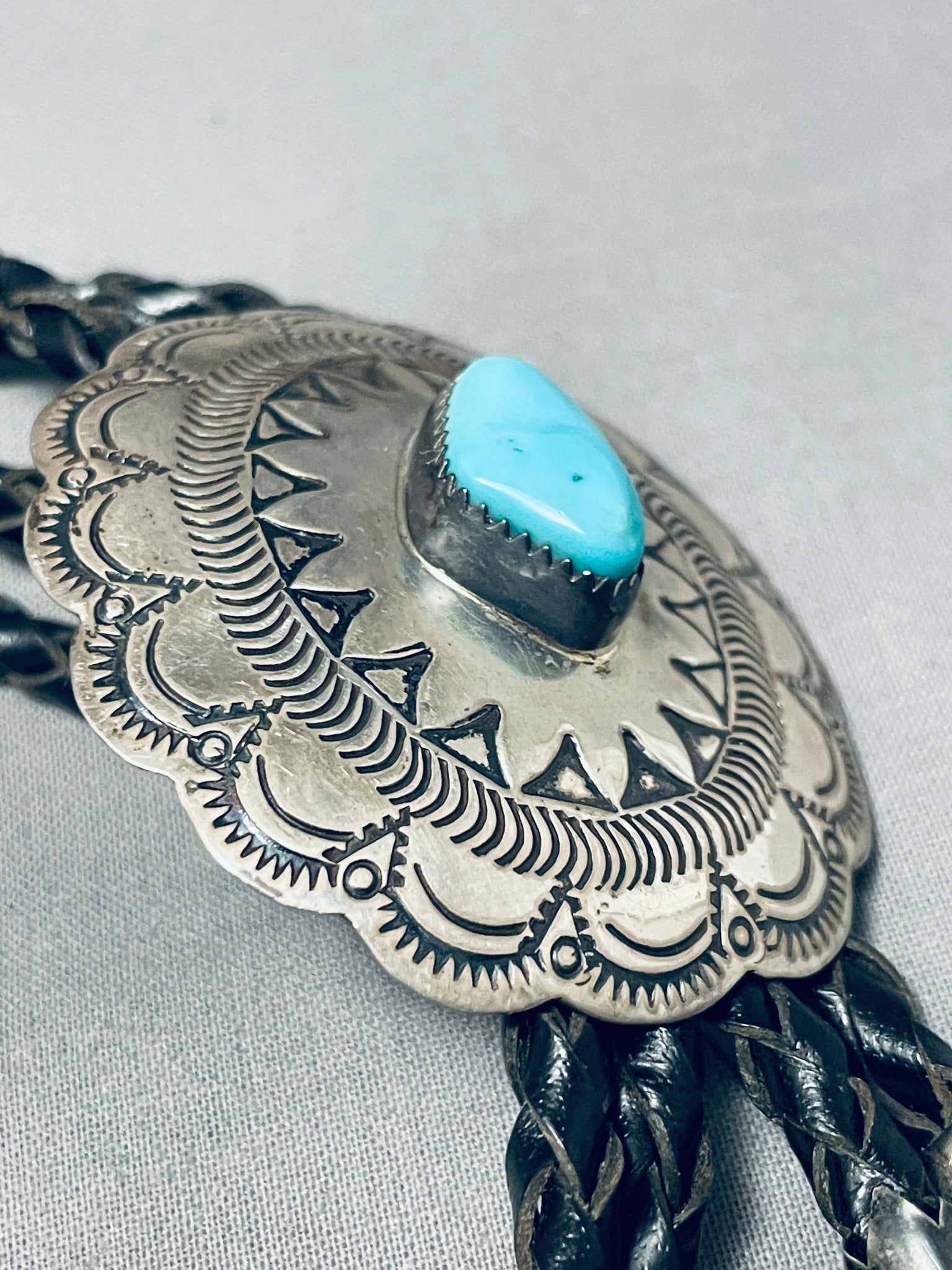 Mesmerizing Vintage Native American Navajo Pilot Mountain Turquoise Sterling Silver Huge Bolo