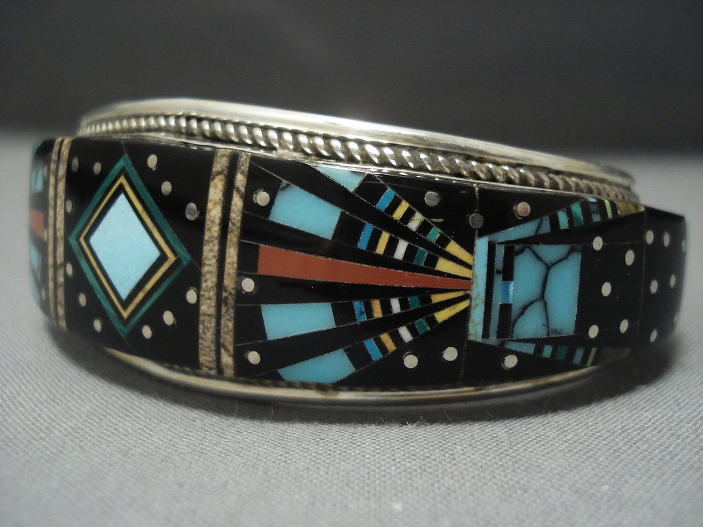 Midnight Space Kachina Turquoise Gaspeite Navajo Sterling Native American Jewelry Silver Bracelet