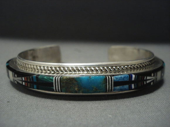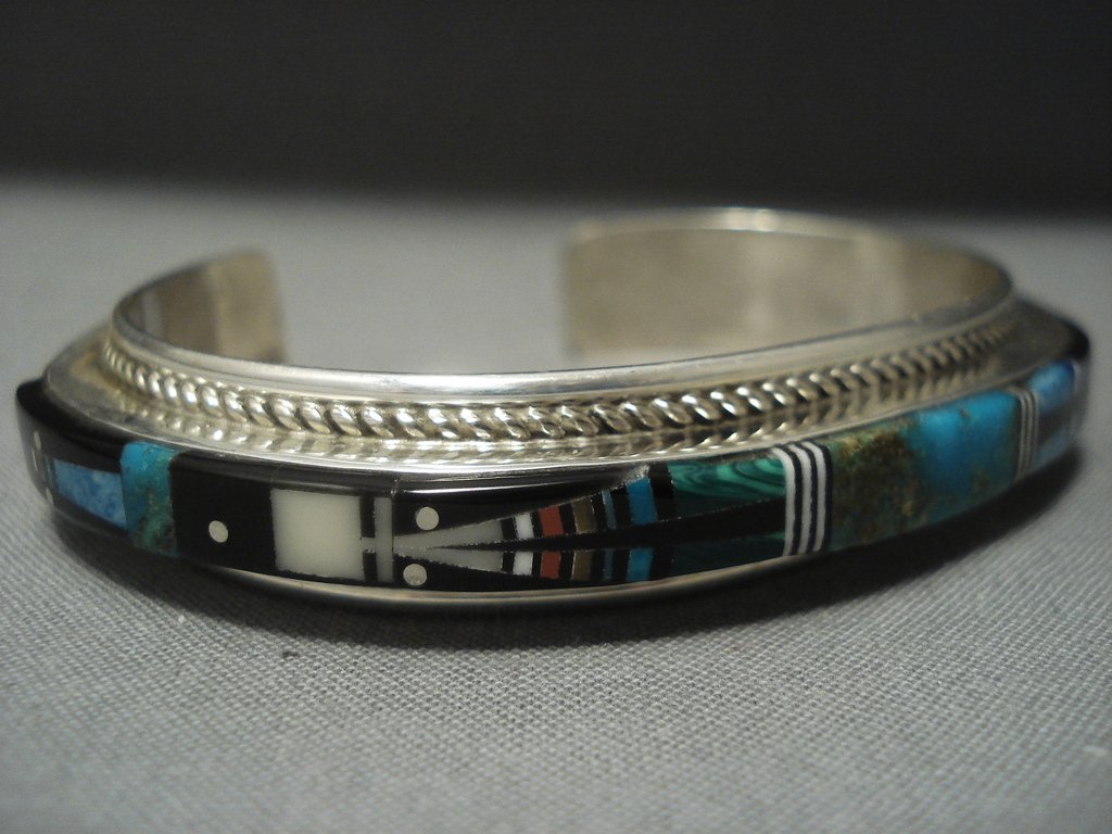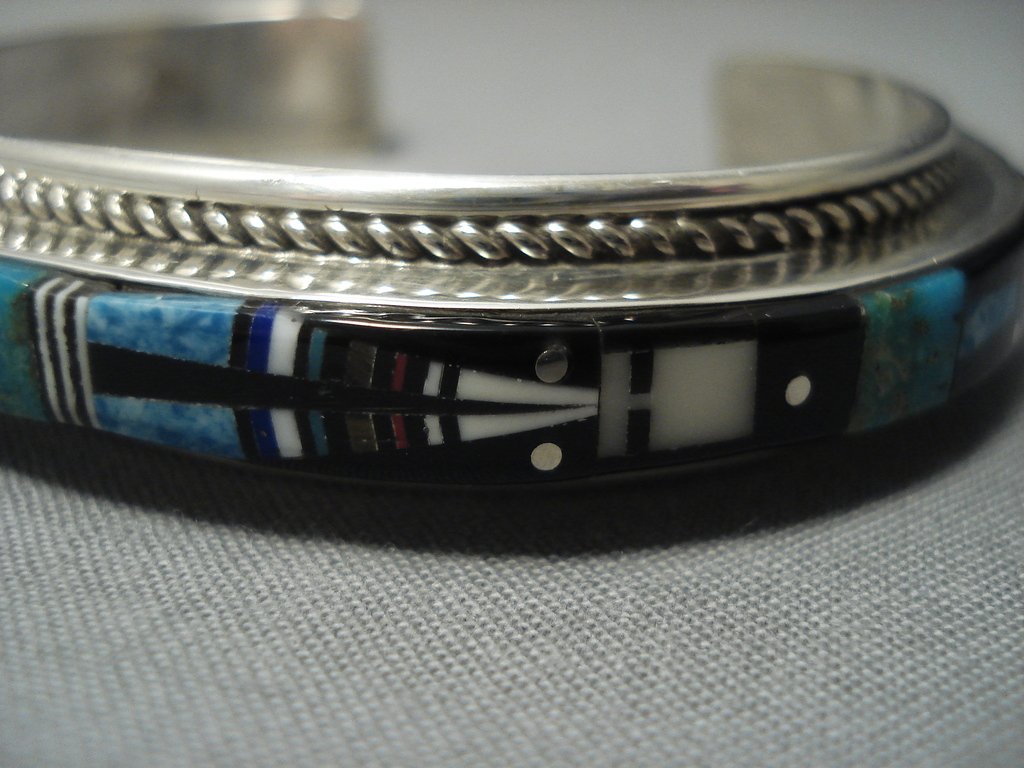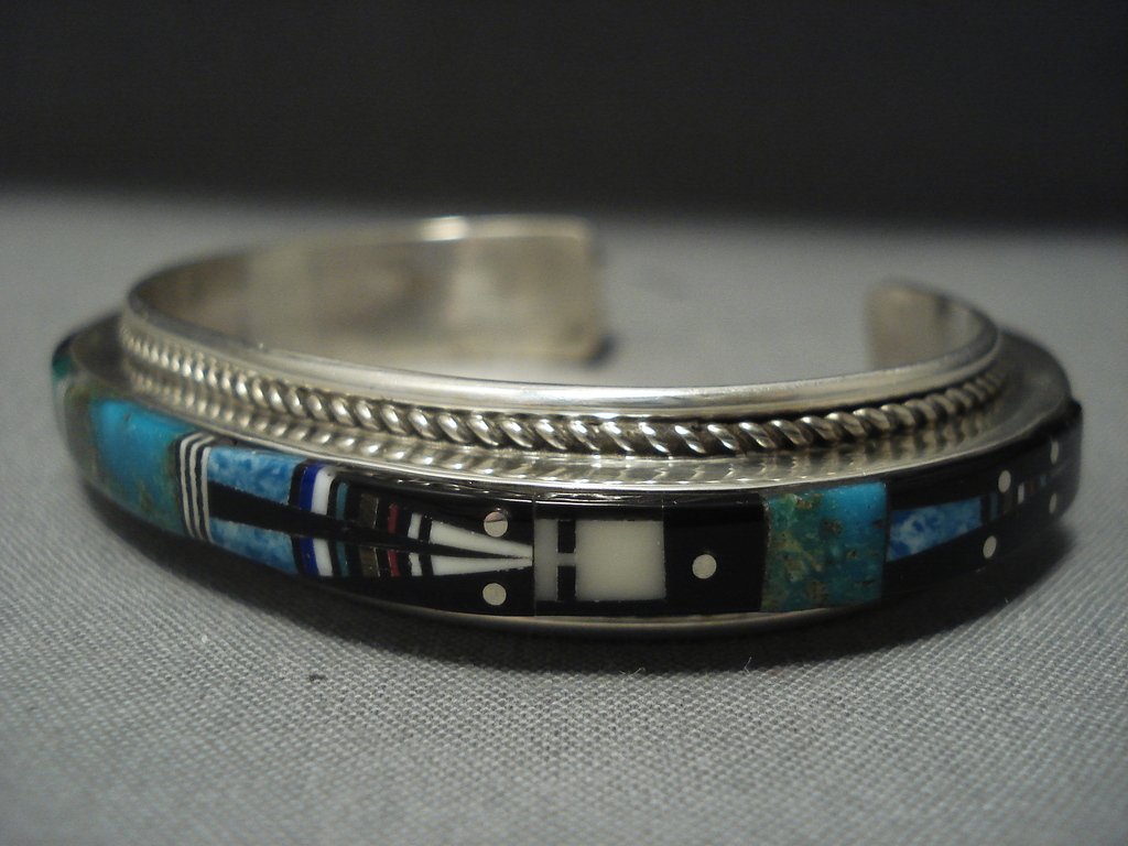 Midnight Space Kachina Turquoise Navajo Sterling Native American Jewelry Silver Bracelet- Important