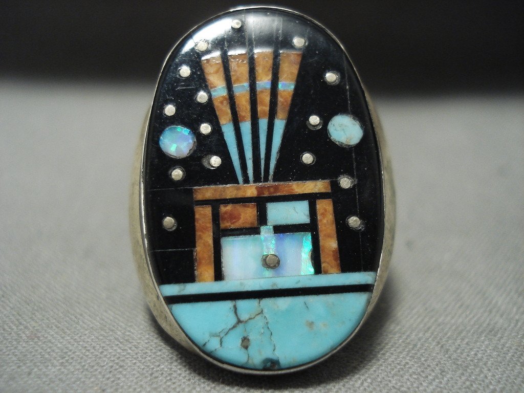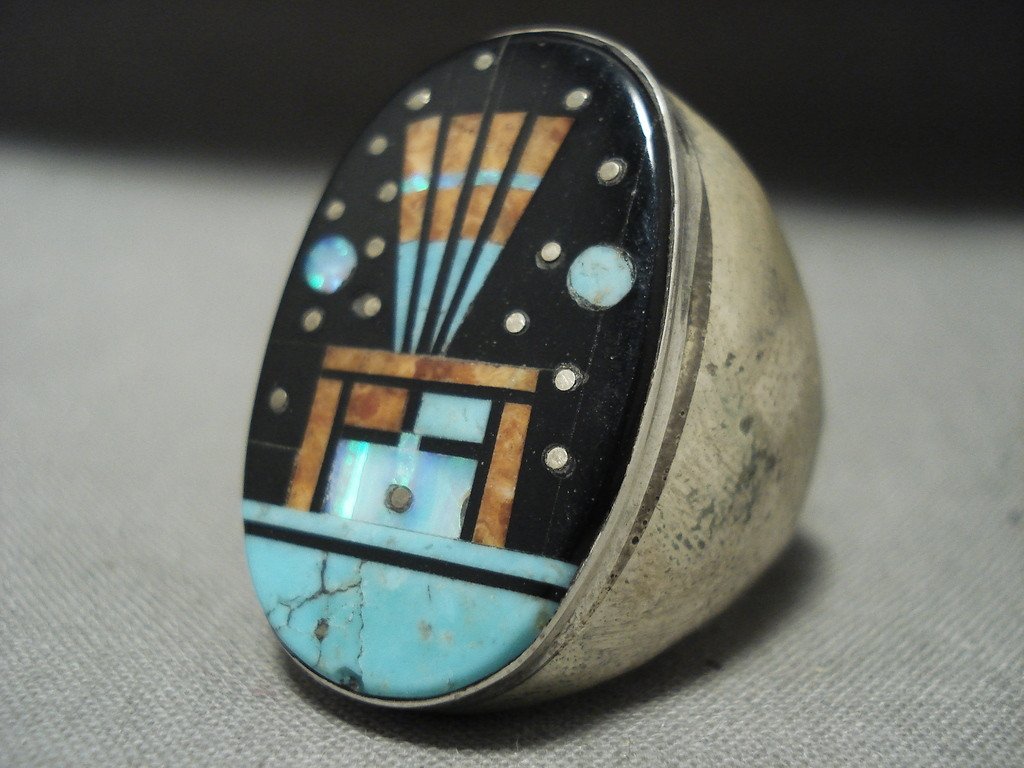 Midnight Space Turquoise Kachina Navajo Native American Jewelry Silver Turquoise Ring