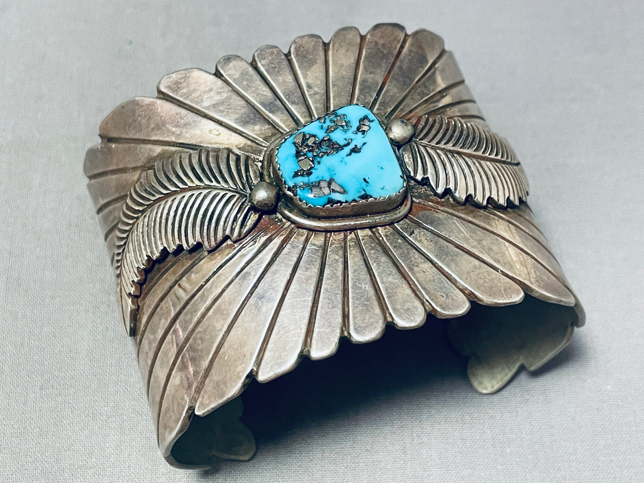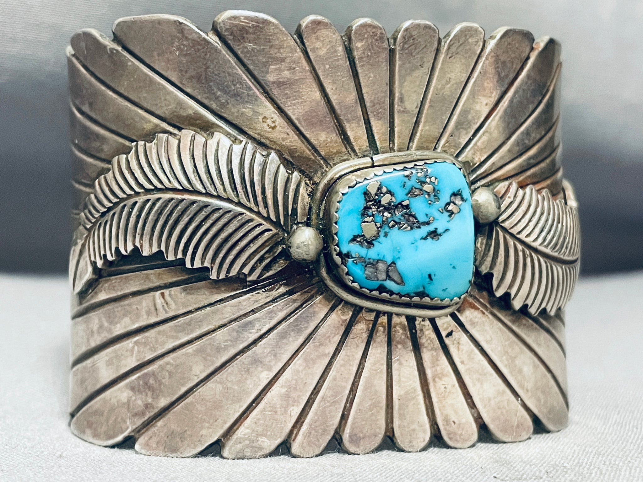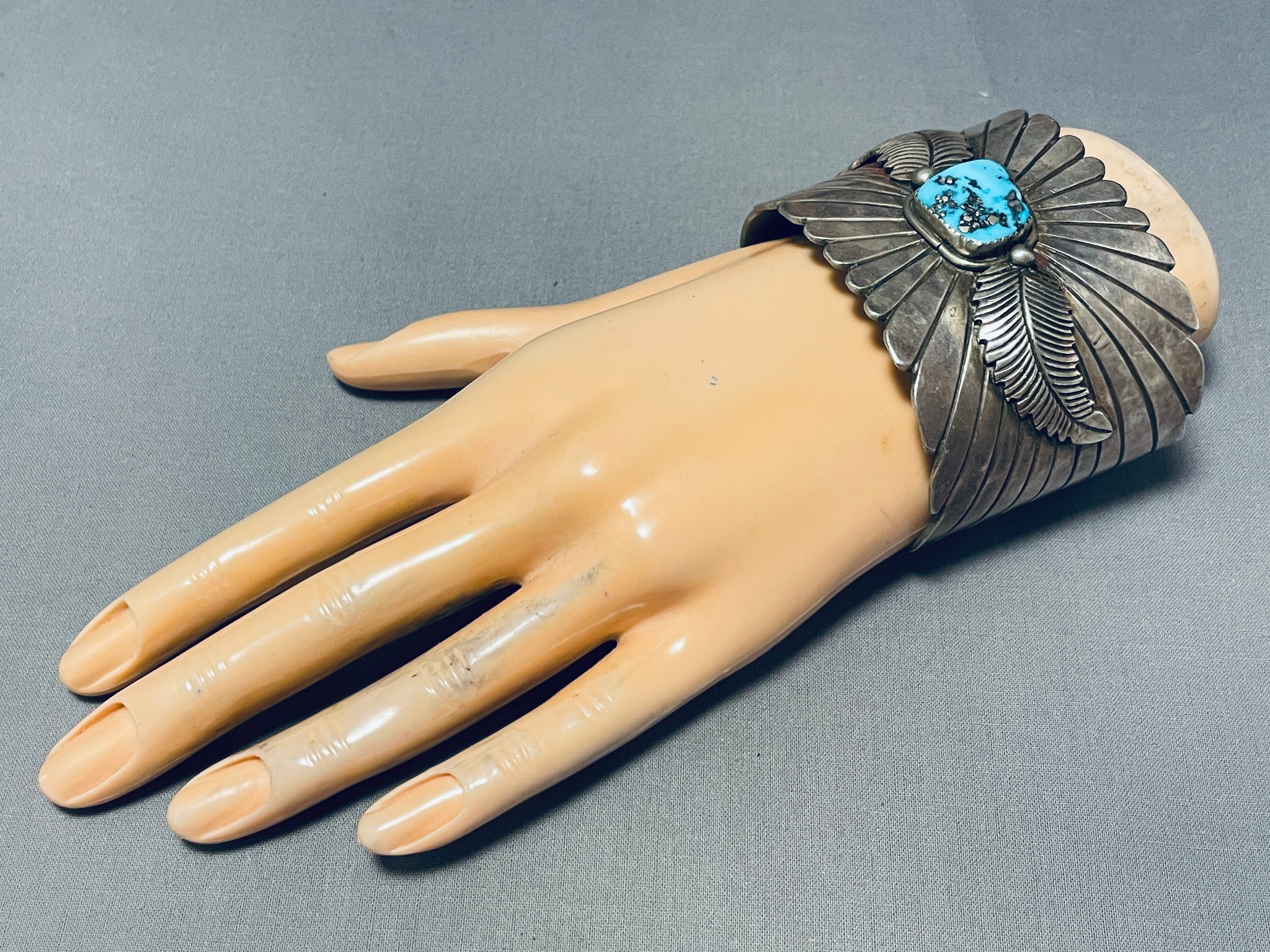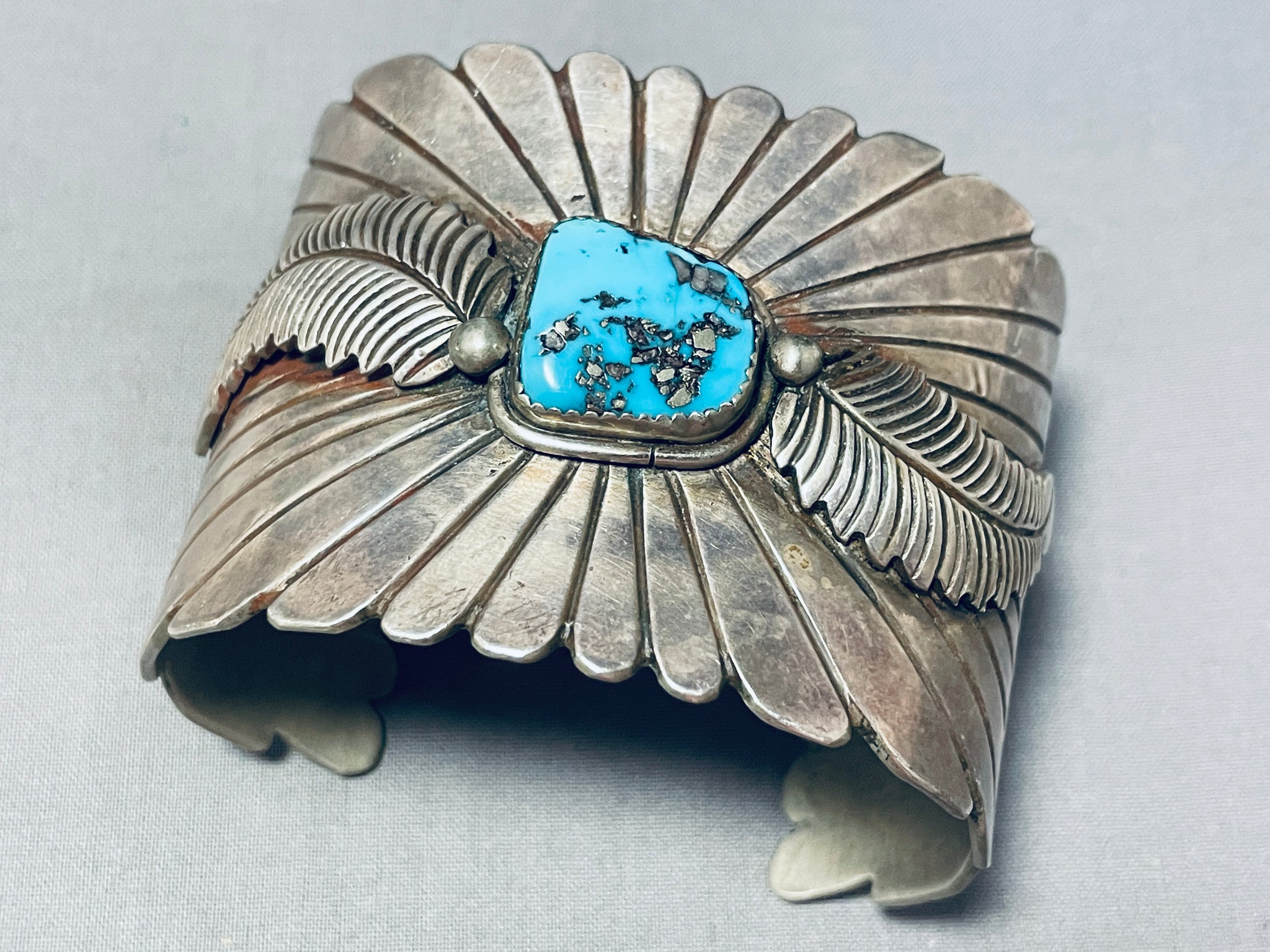 Mind Boggling Vintage Mens Native American Navajo Turquoise Sterling Silver Bracelet