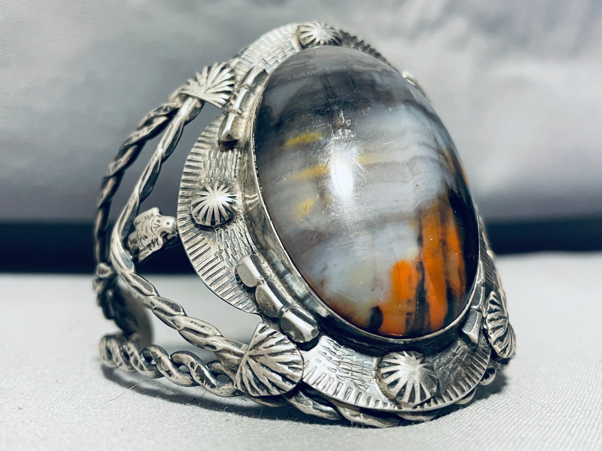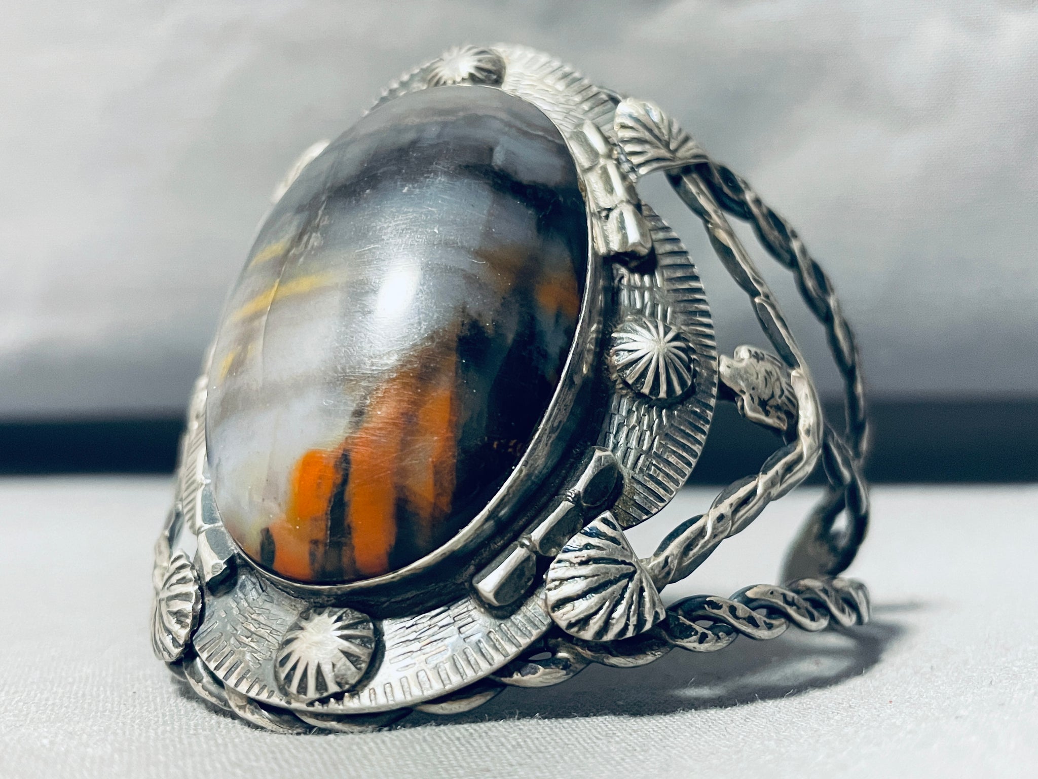 Misty Mountain Vintage Native American Navajo Petrified Wood Sterling Silver Bracleet
